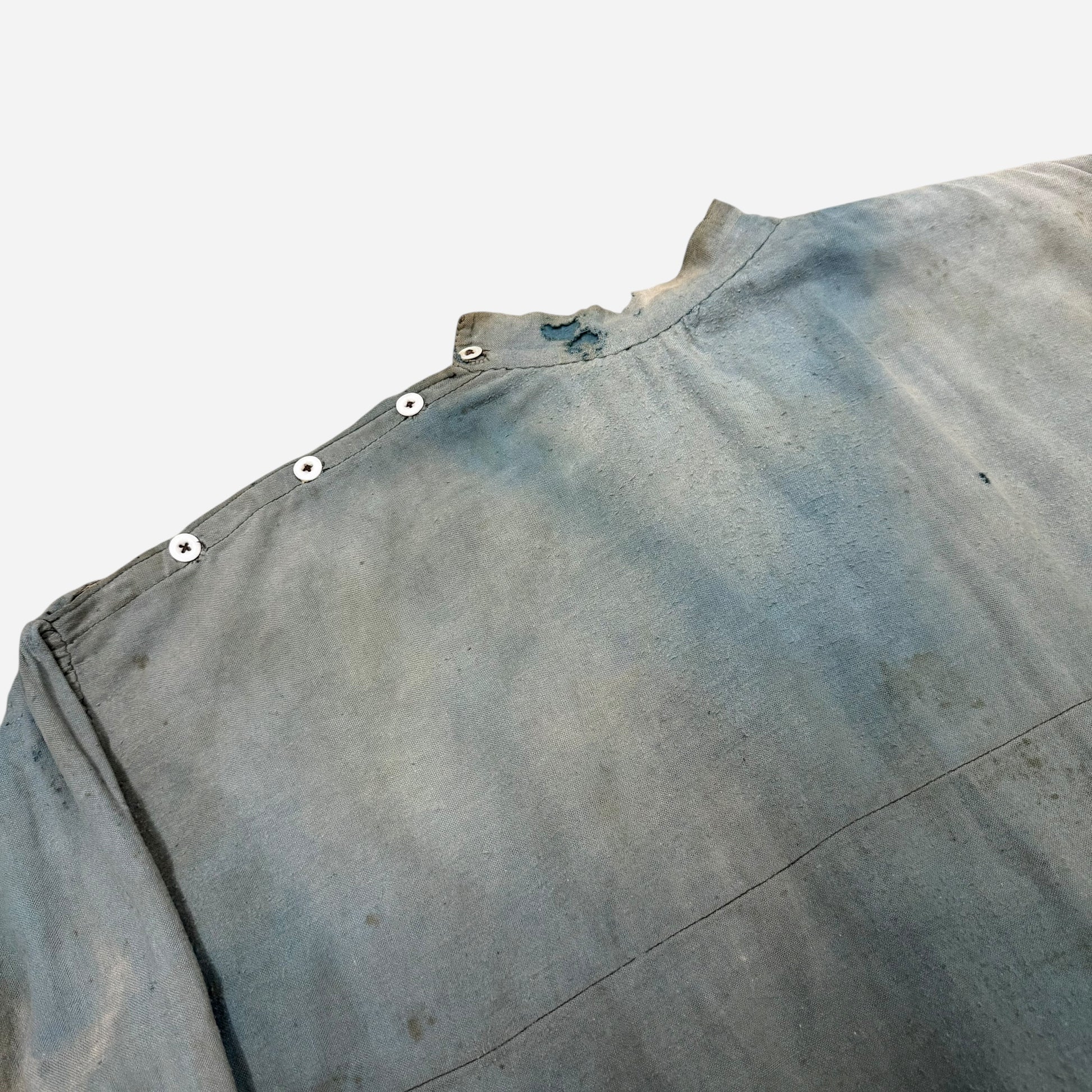 1880s Shoulder button blue cotton flannel work shirt (M)