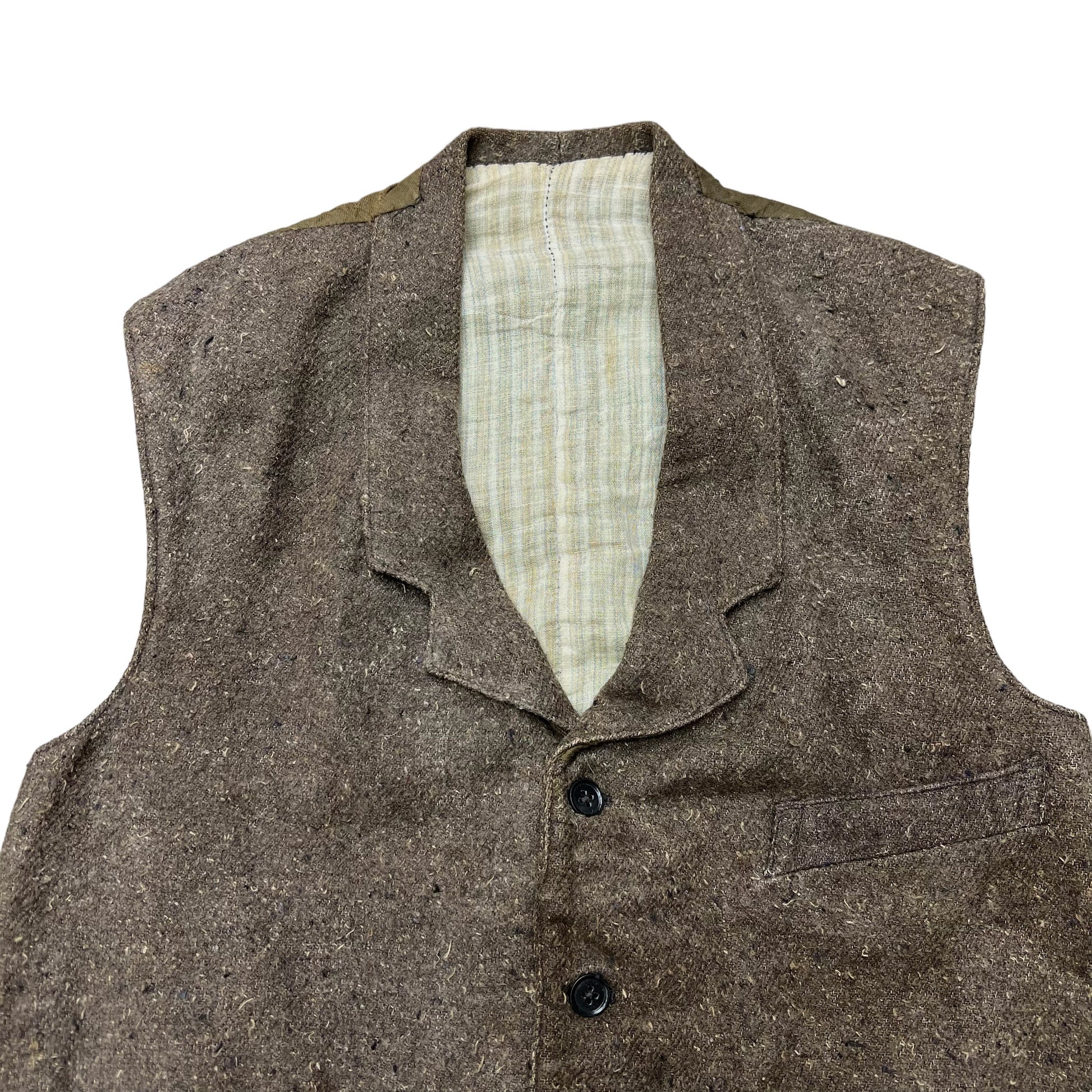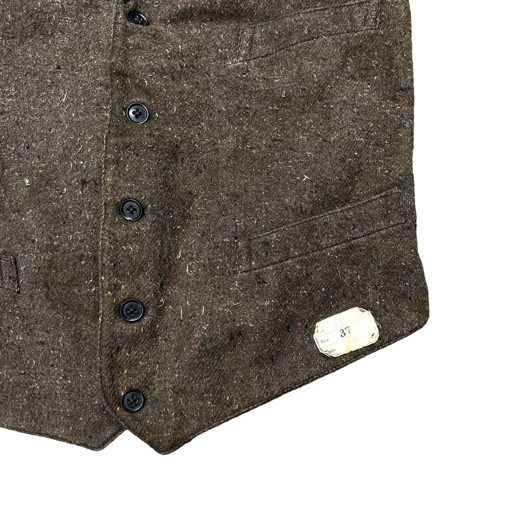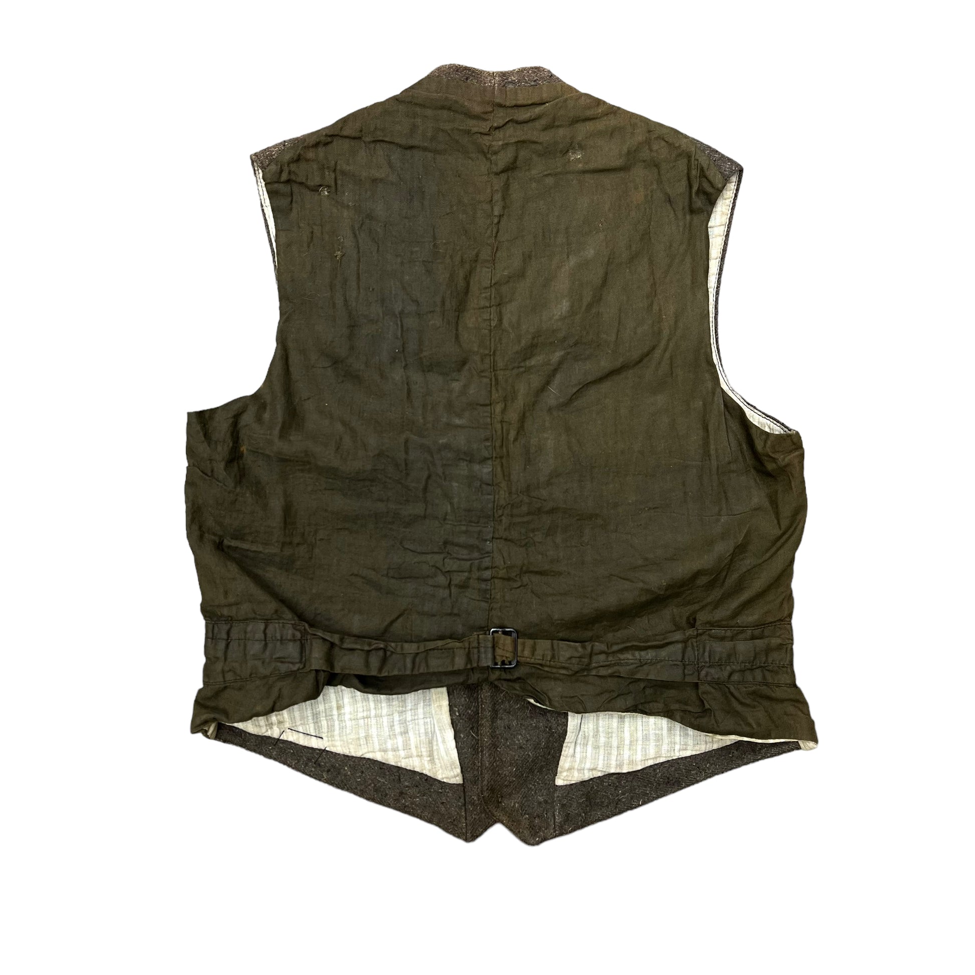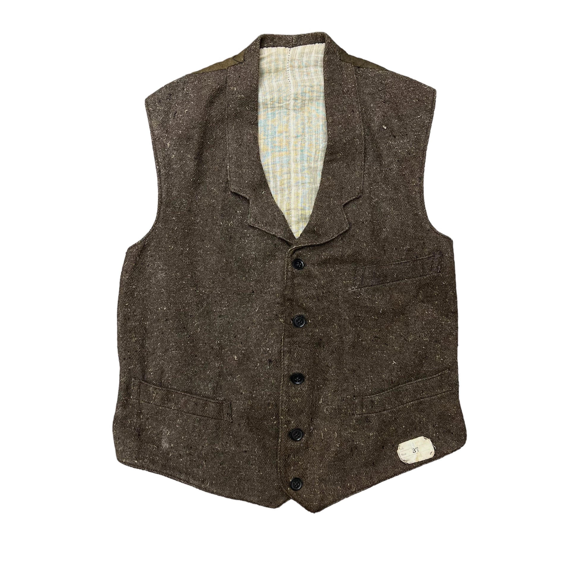 1900s-1910s NOS brown fleck wool striped linen work vest (S)