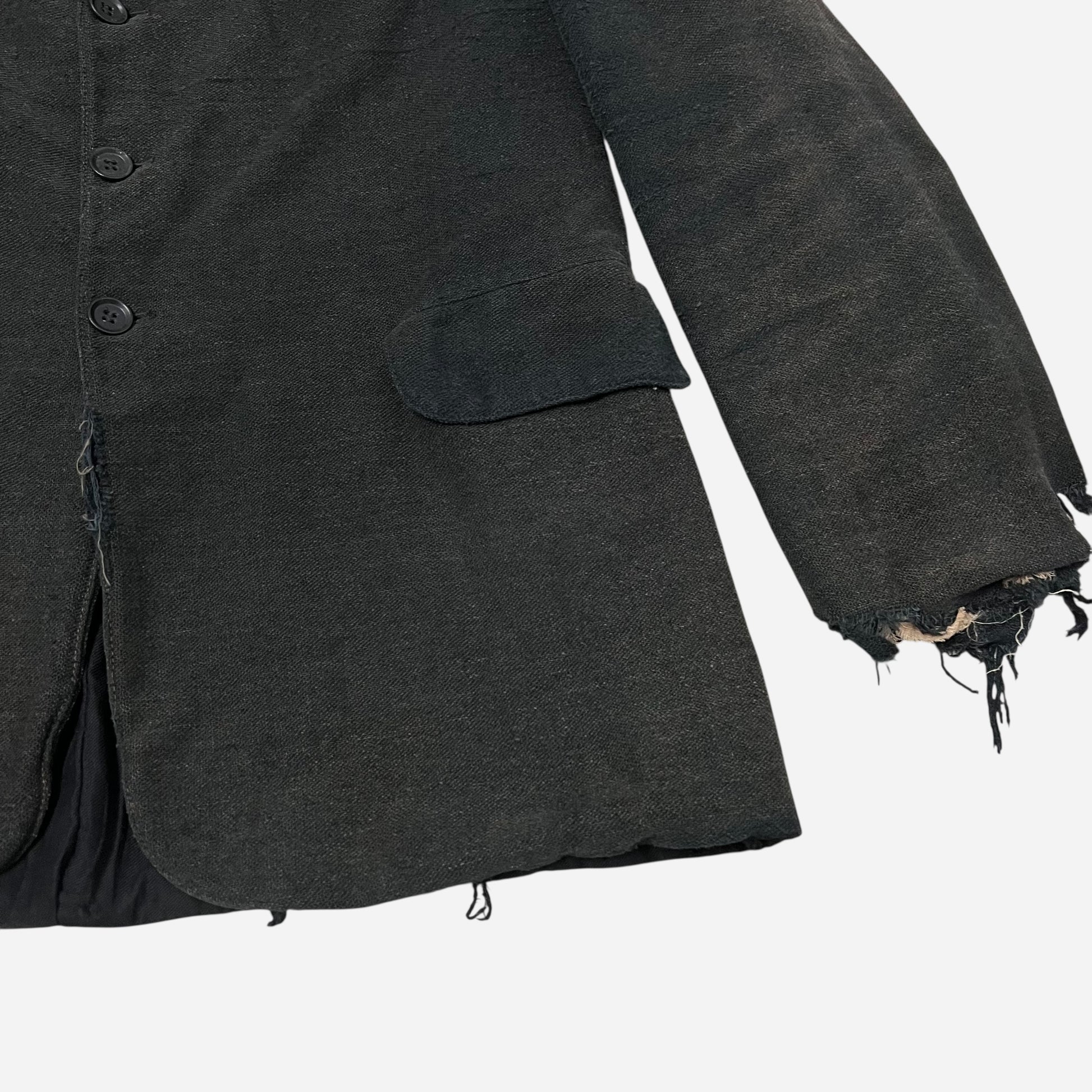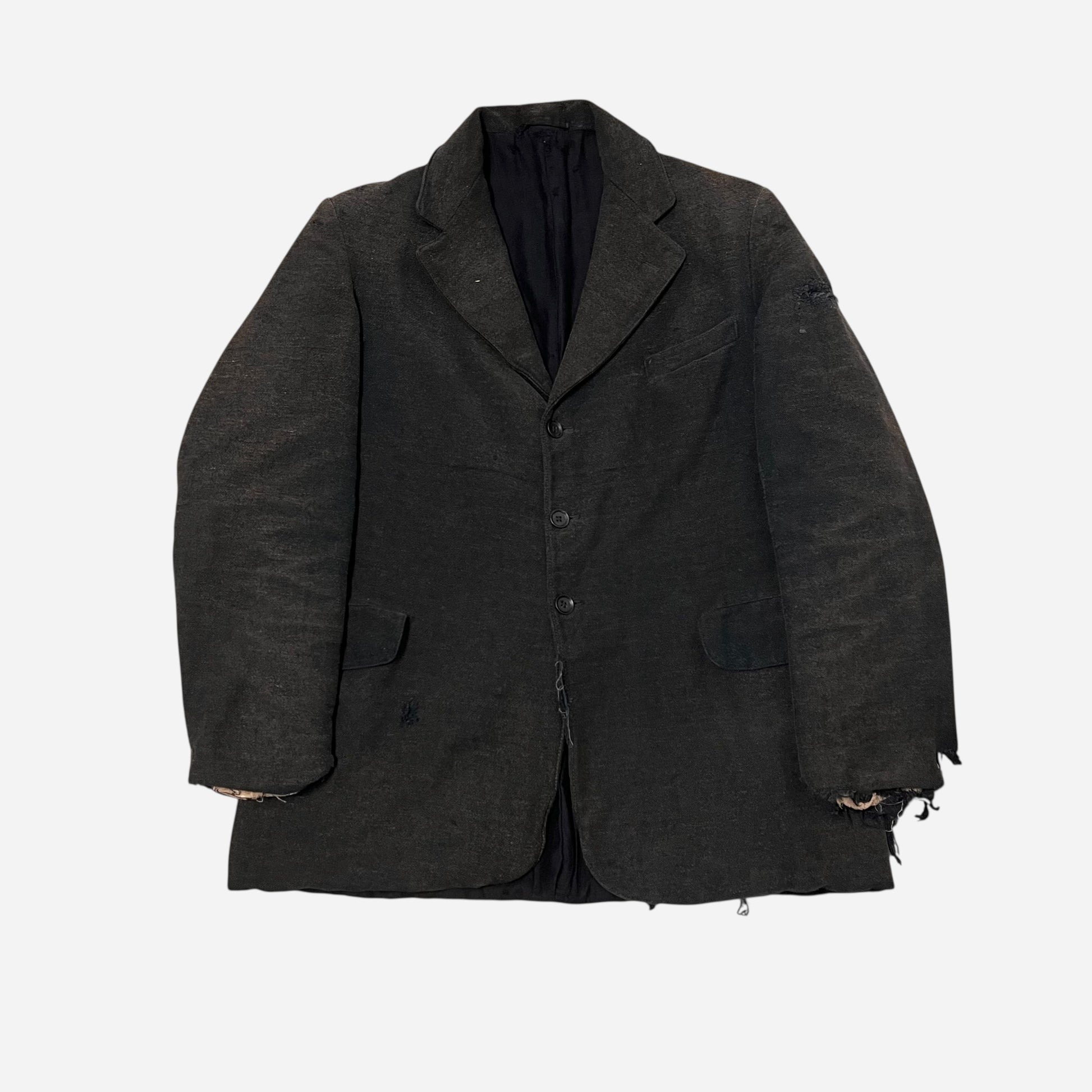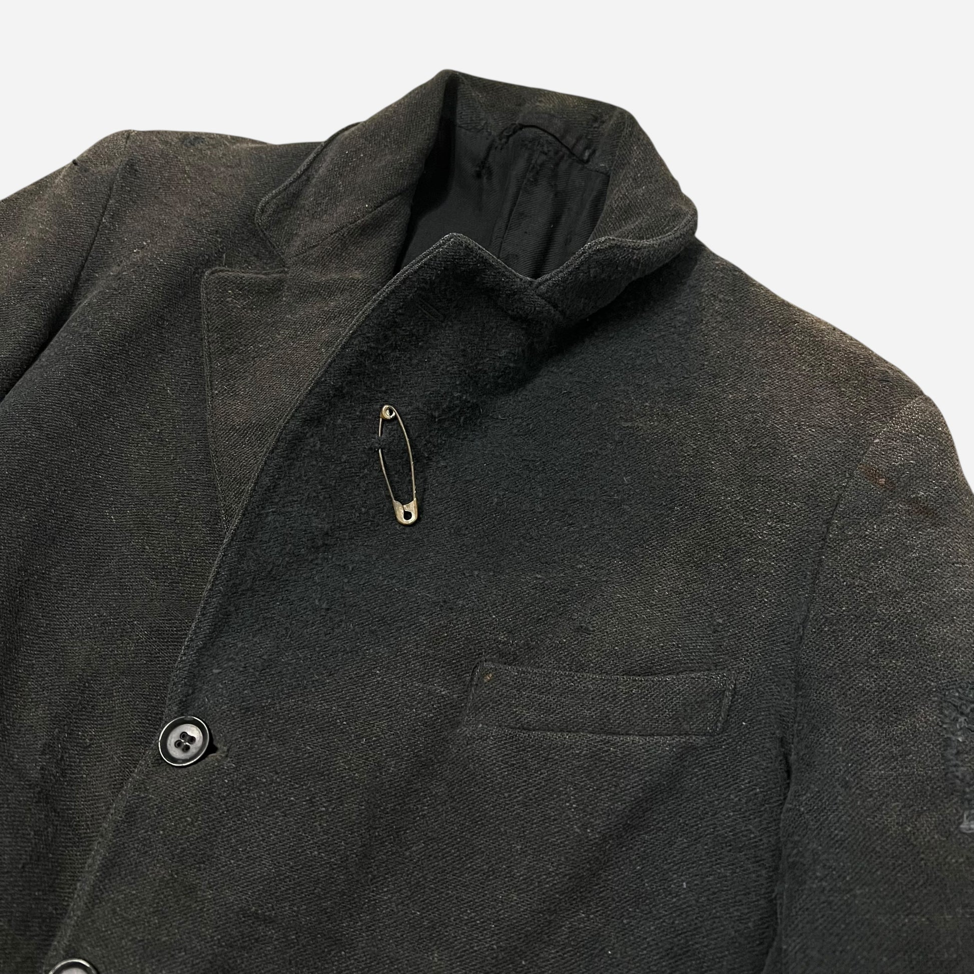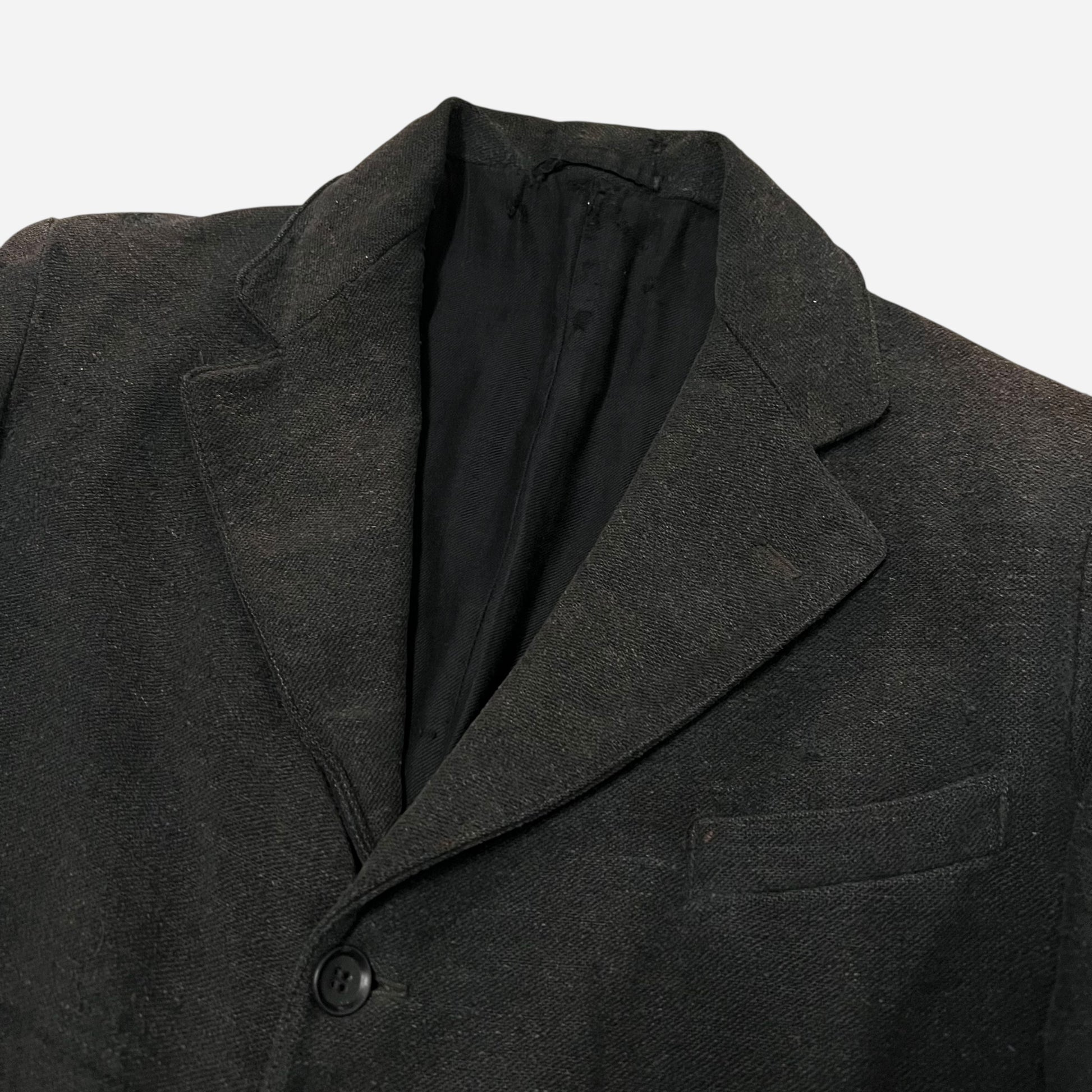 1900s 1910s Sun faded black woven wool/cotton work suit jacket (M)