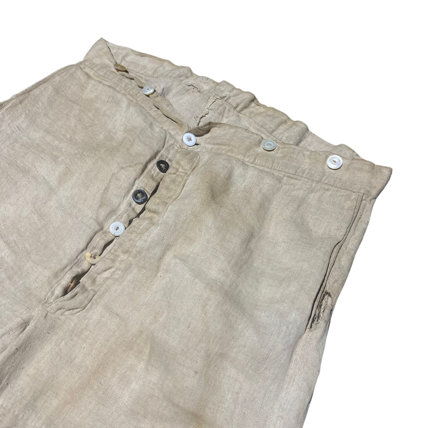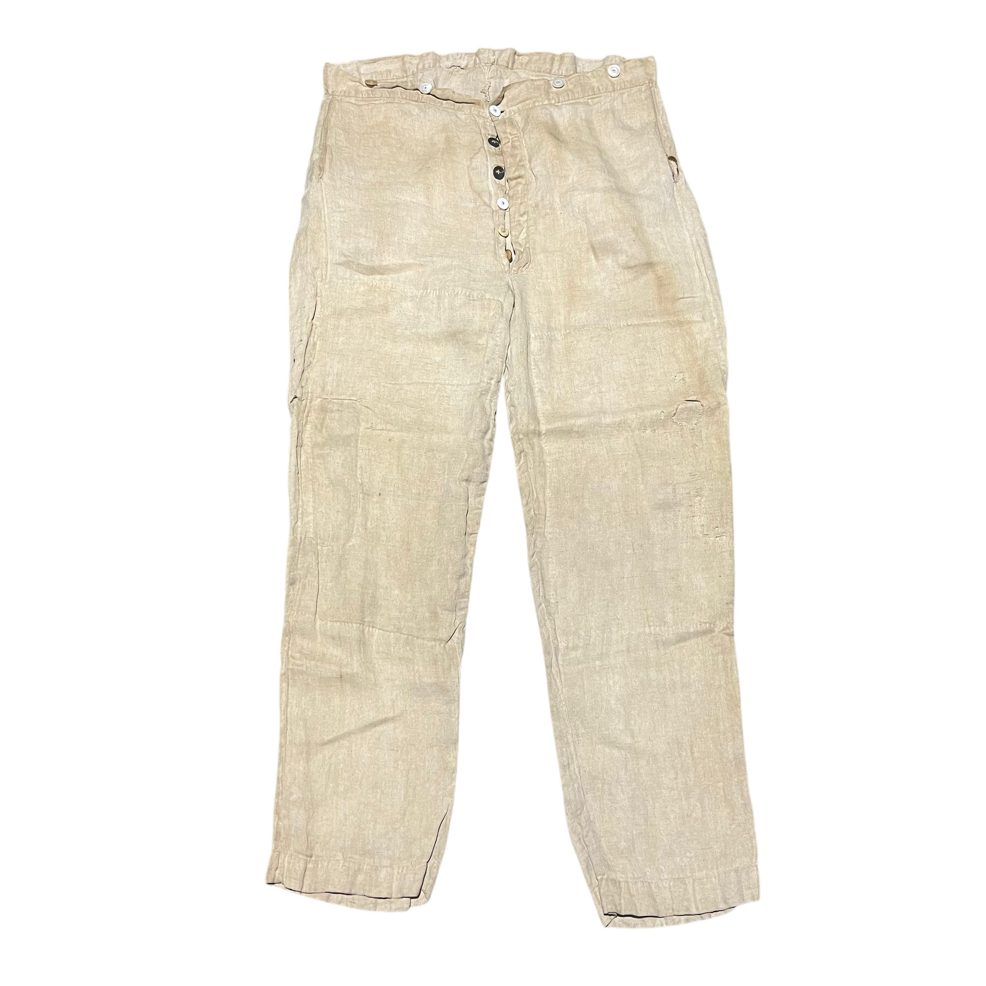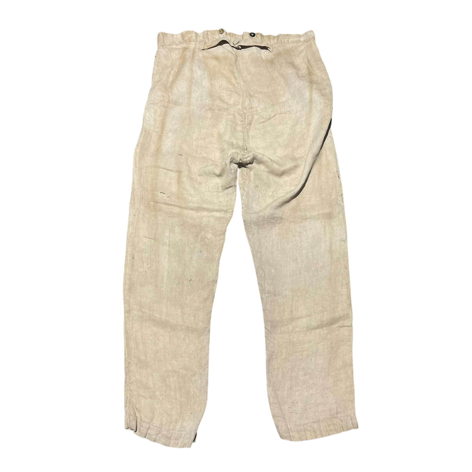 1870s-1880s Linen cinch back button fly work pants (38w)