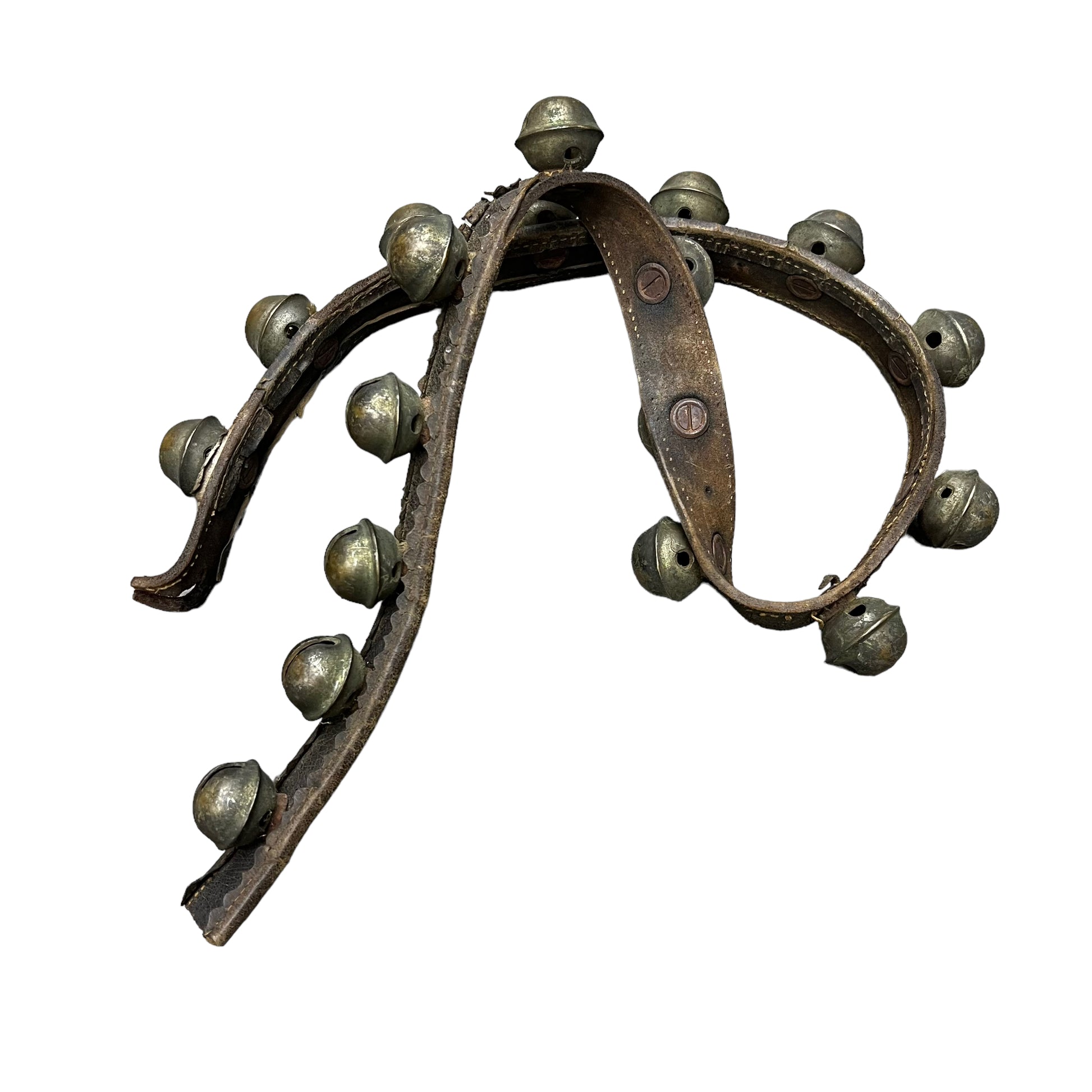 1900s Sleigh bells bronze on leather