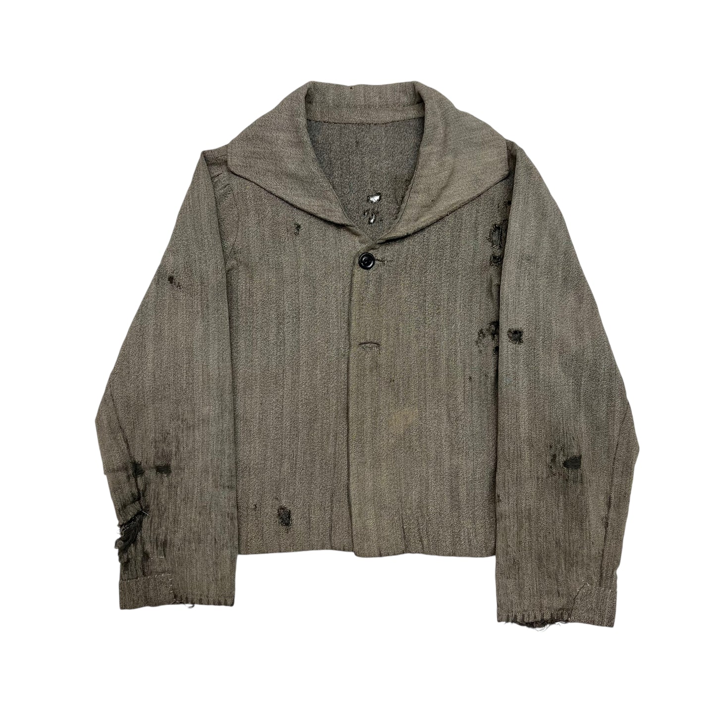 1920s Homemade salt and pepper shawl collar cotton work shirt (S)
