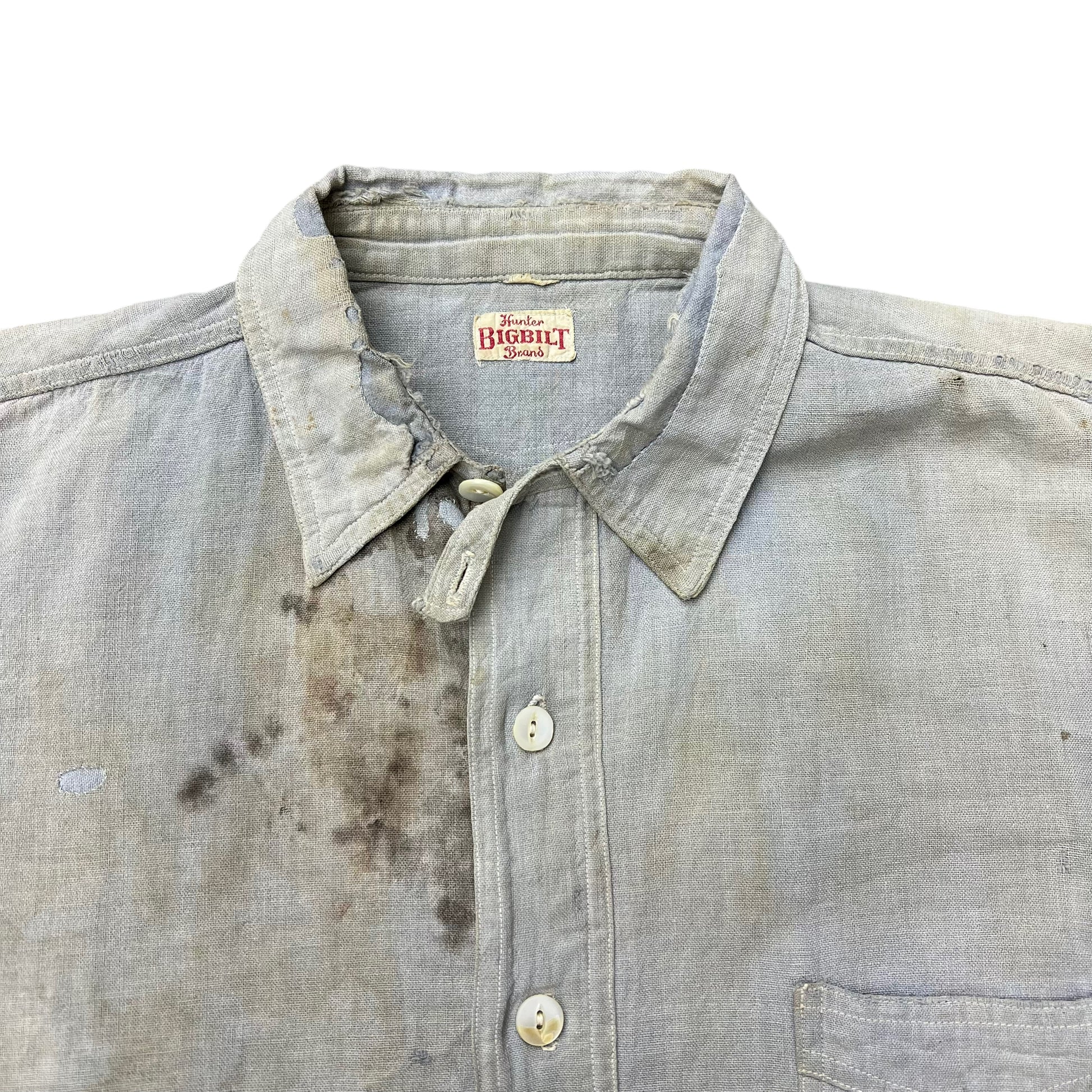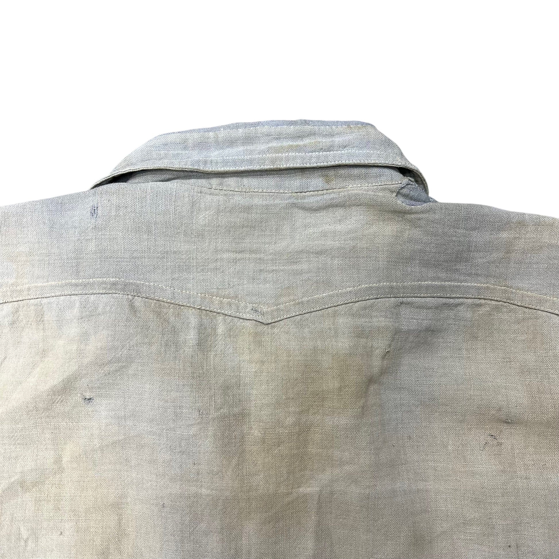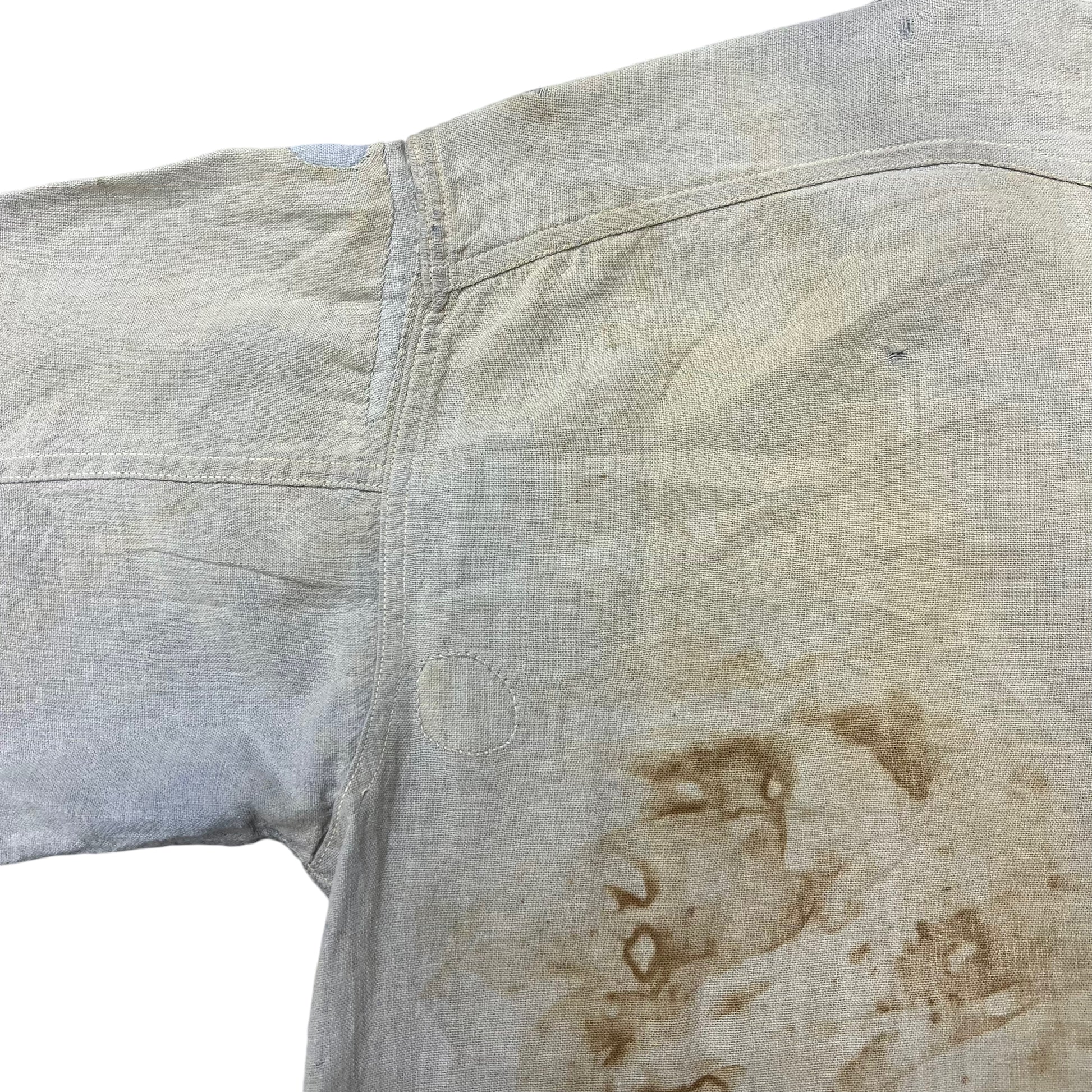 1920s 1930s Blue chambray chinstrap work shirt (M)