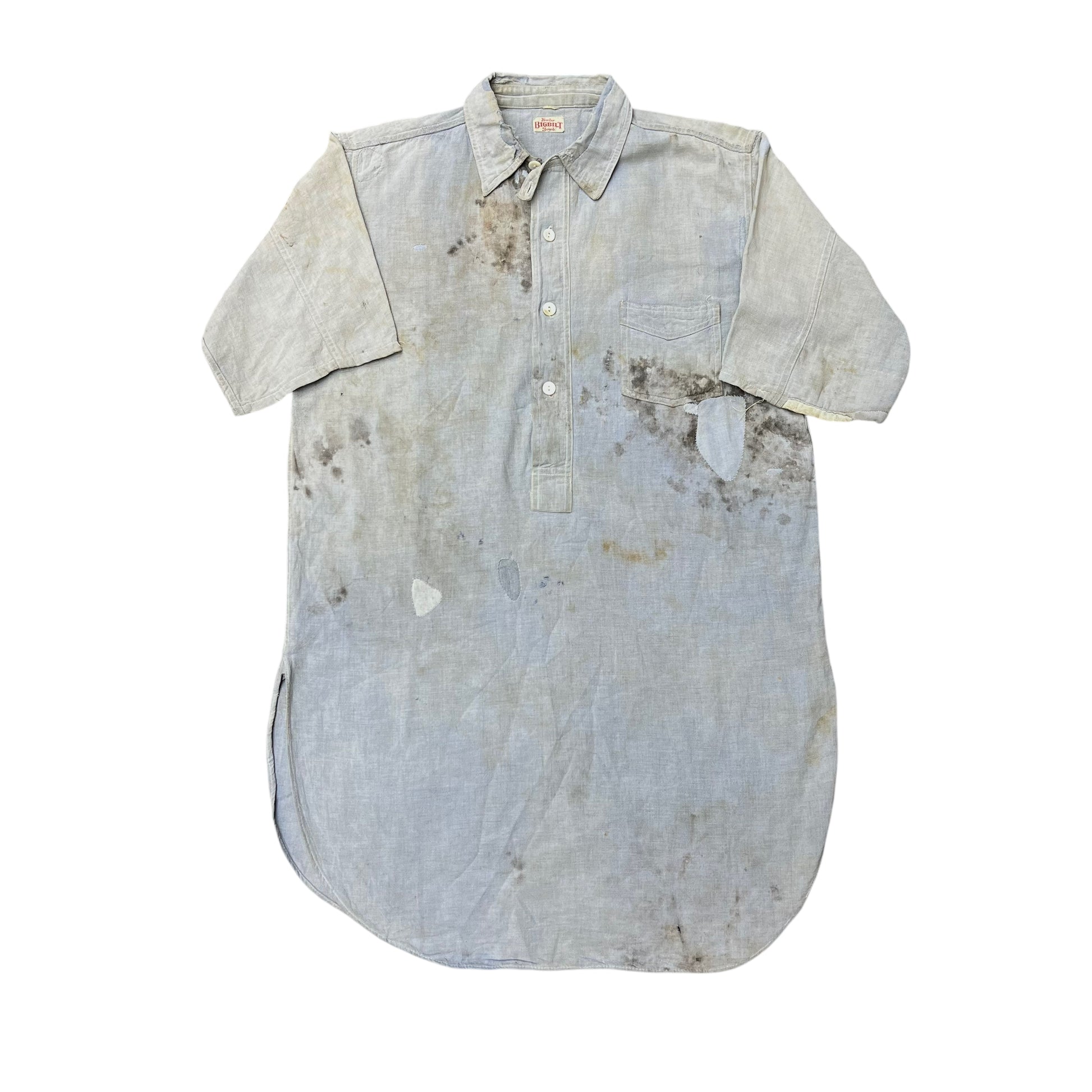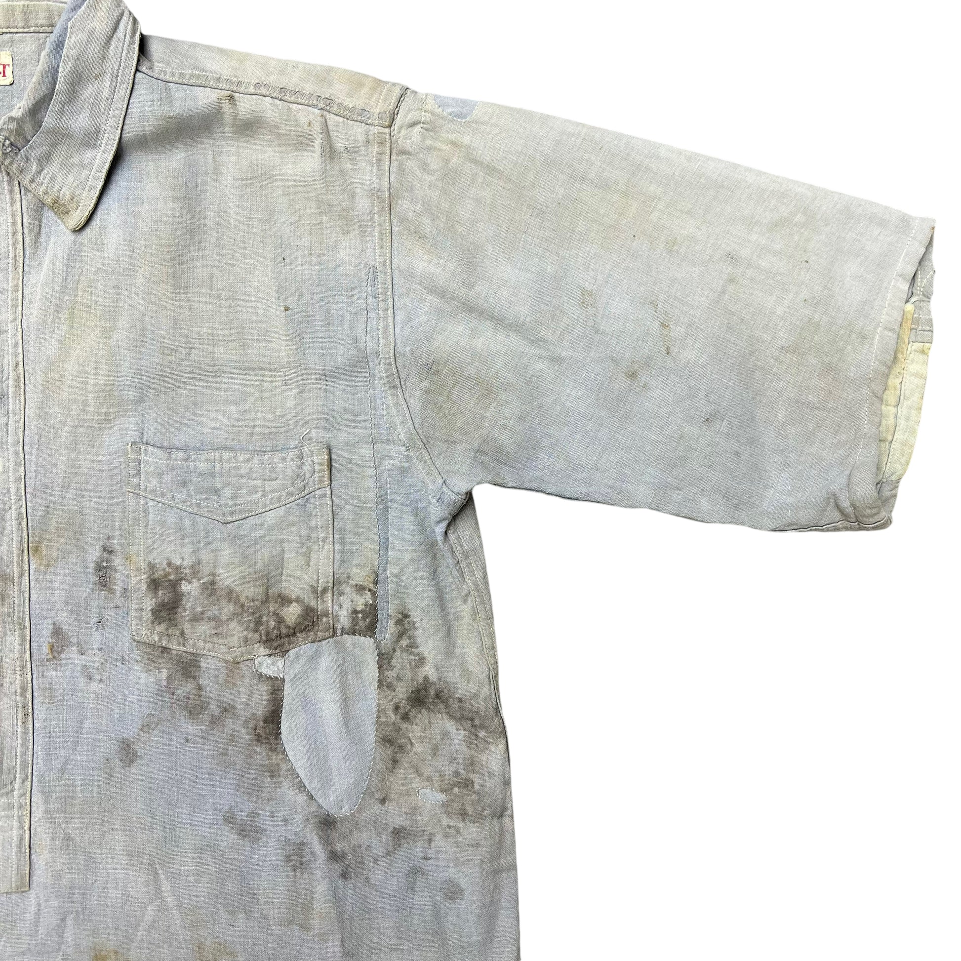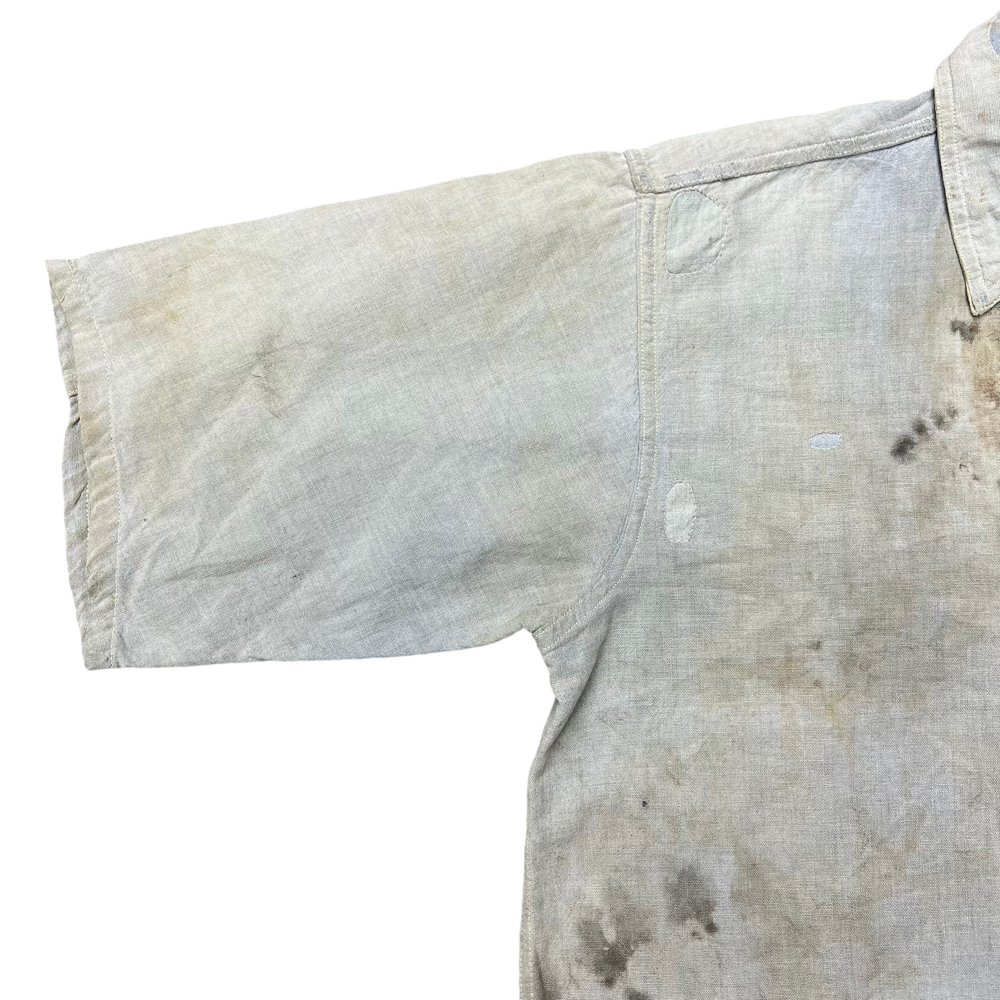 1920s 1930s Blue chambray chinstrap work shirt (M)