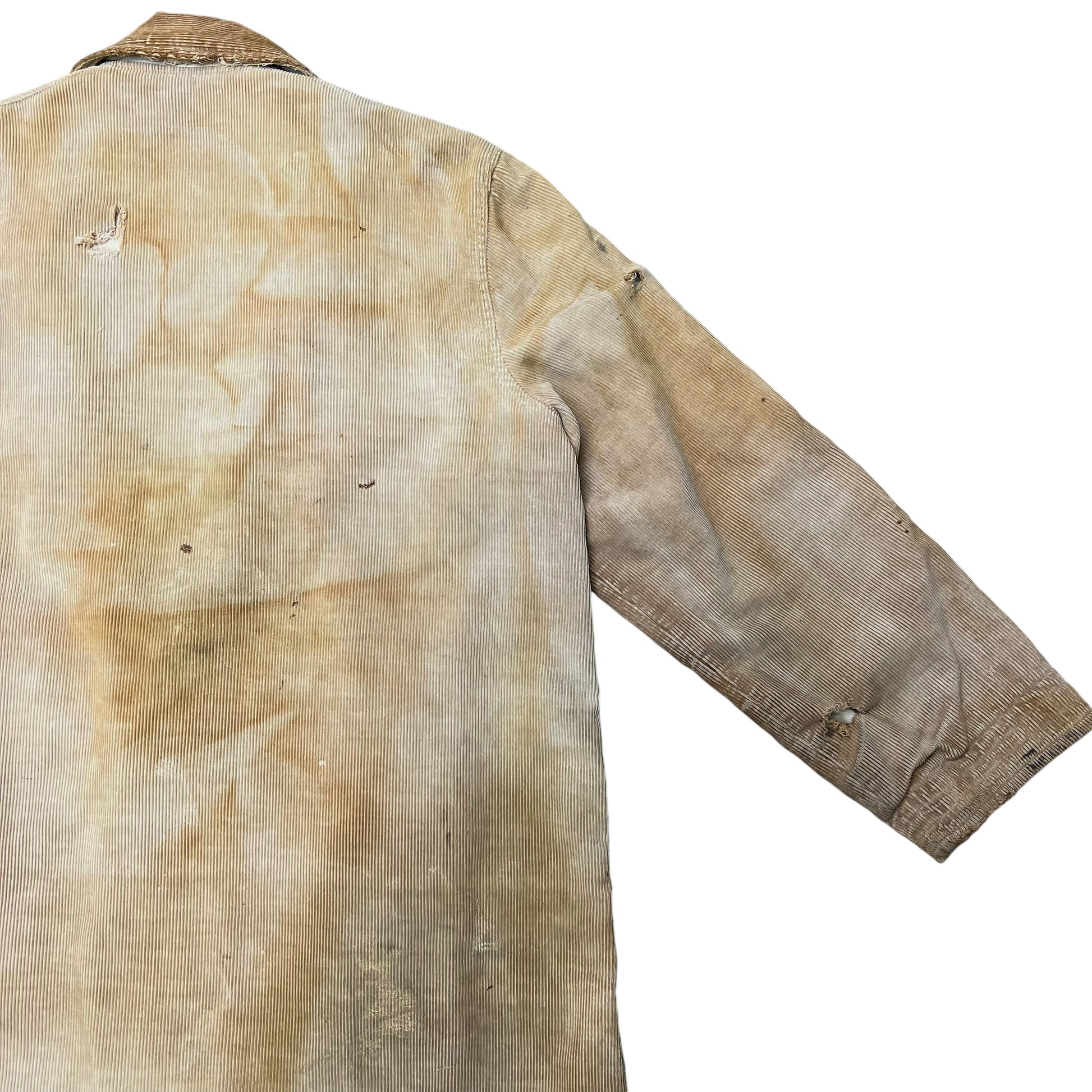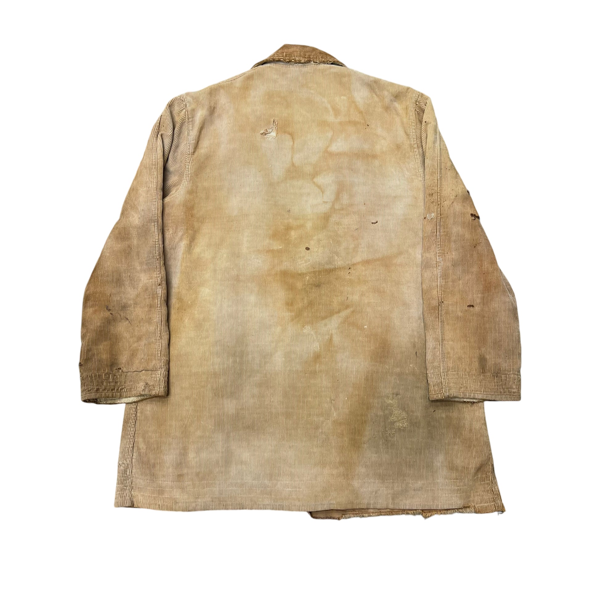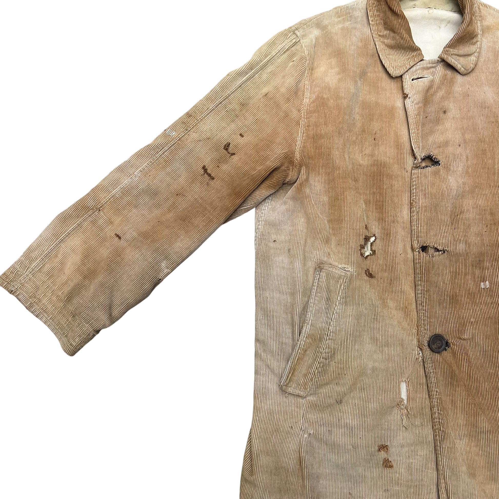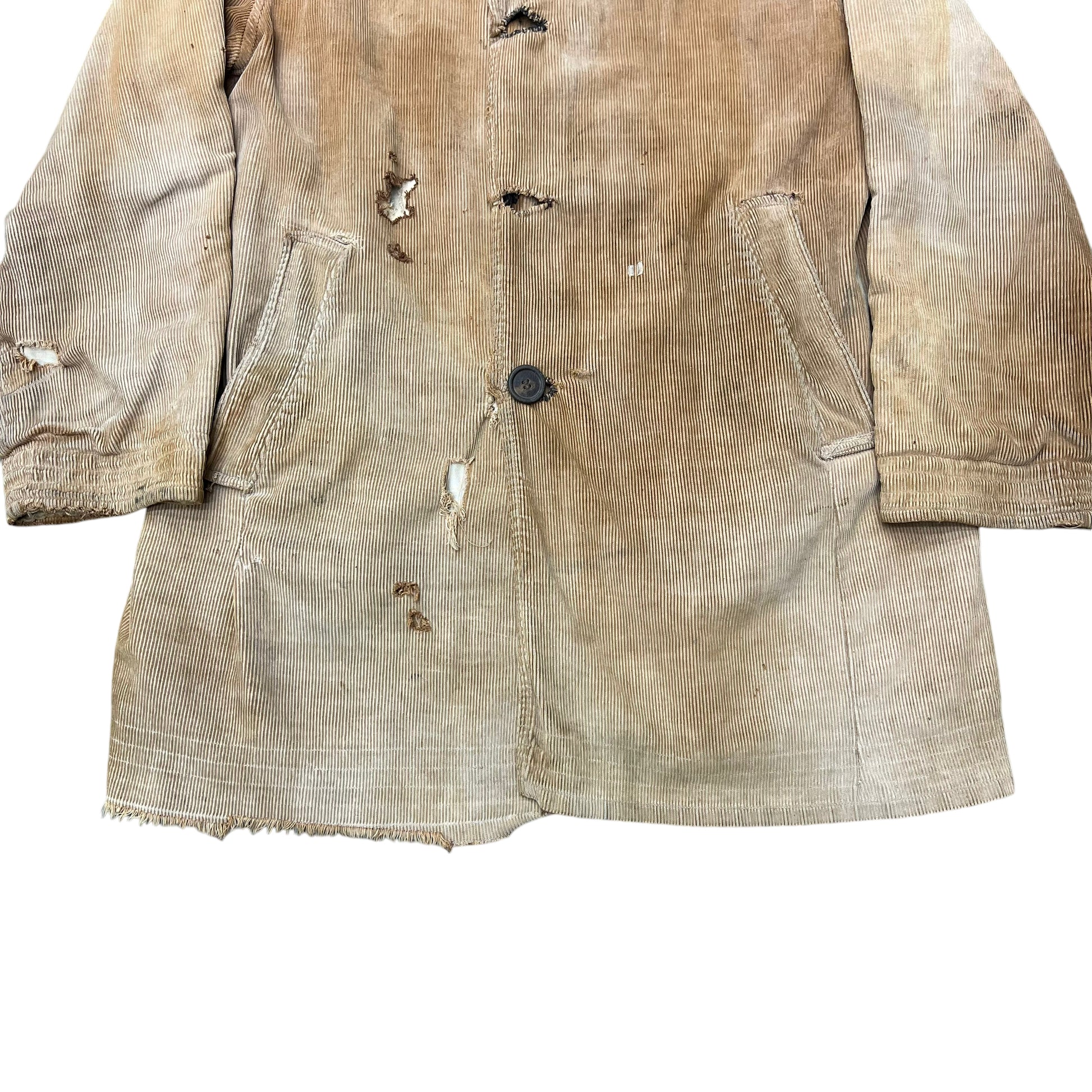 1910s 1920s Distressed & sun faded corduroy/canvas reversible overcoat (L)