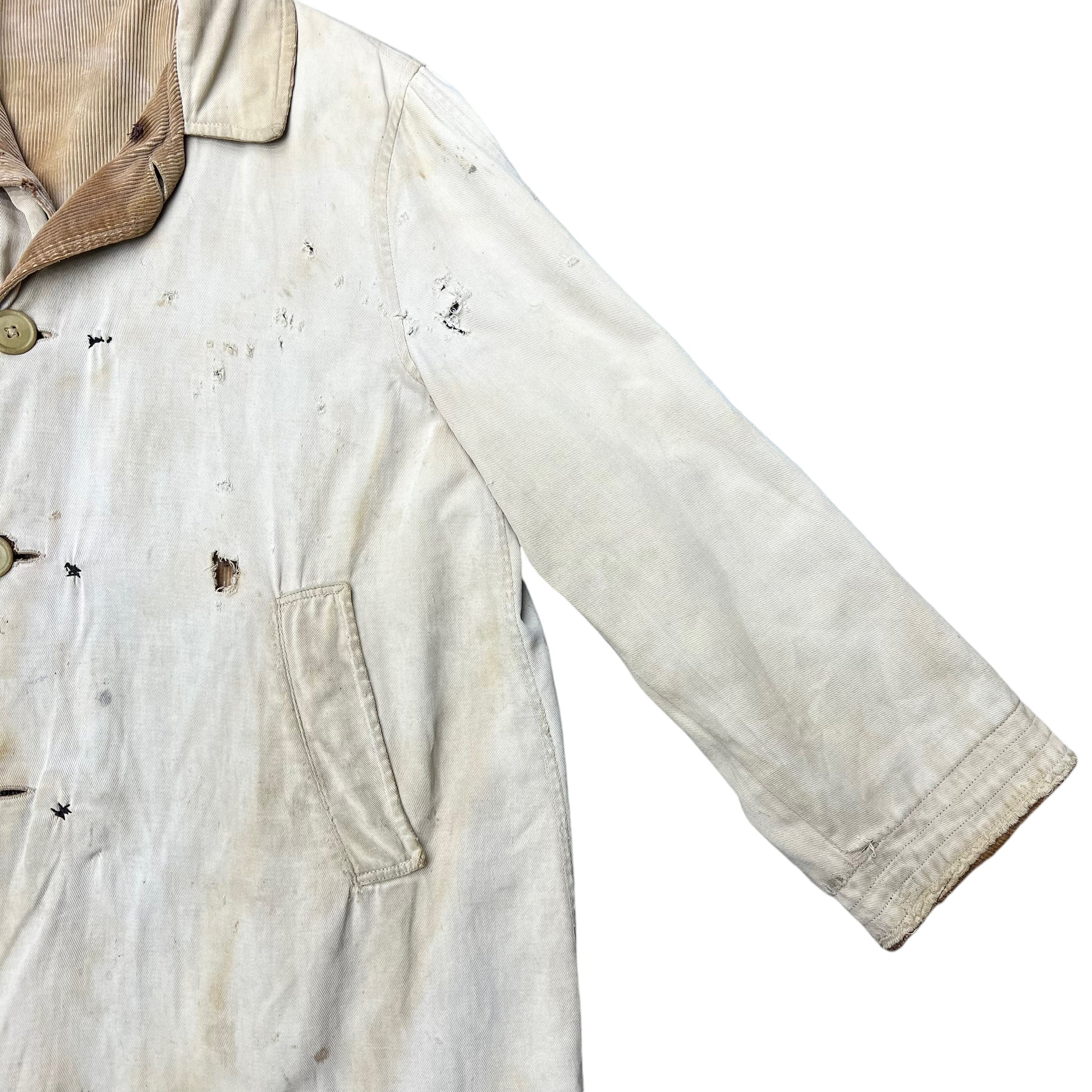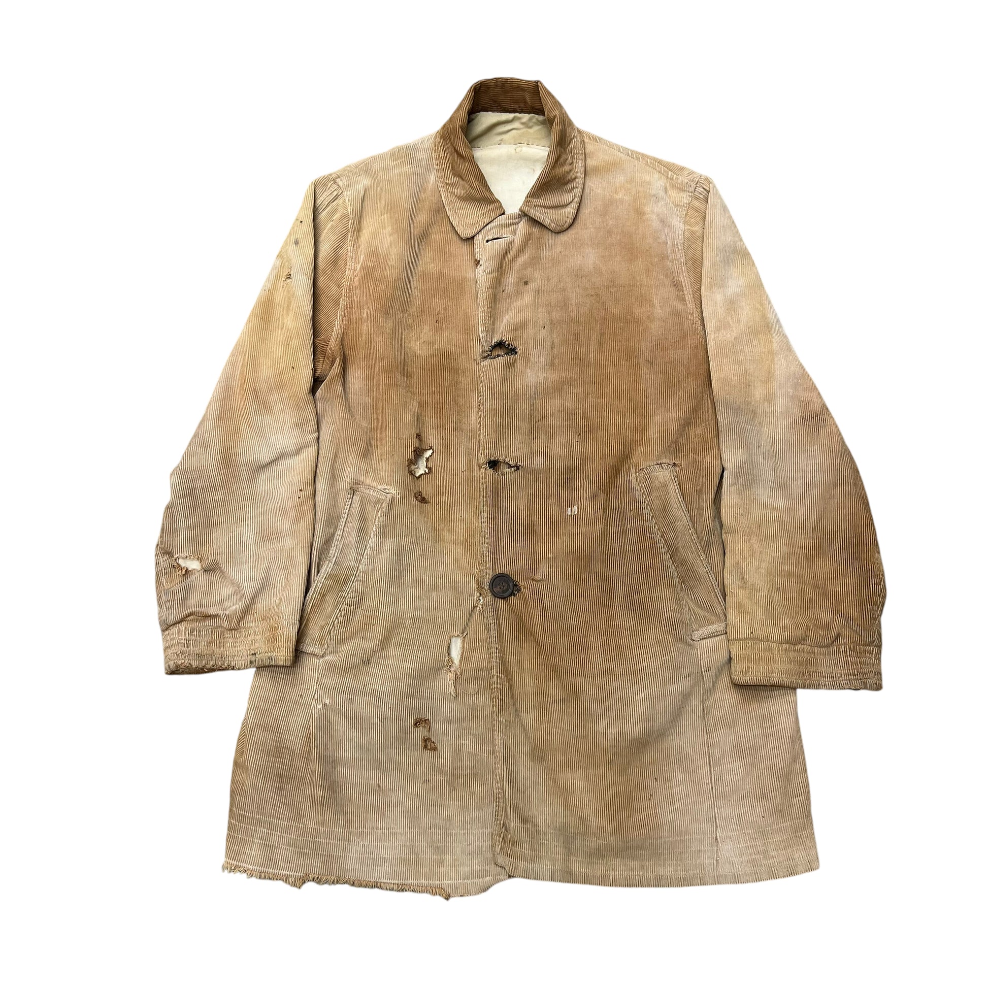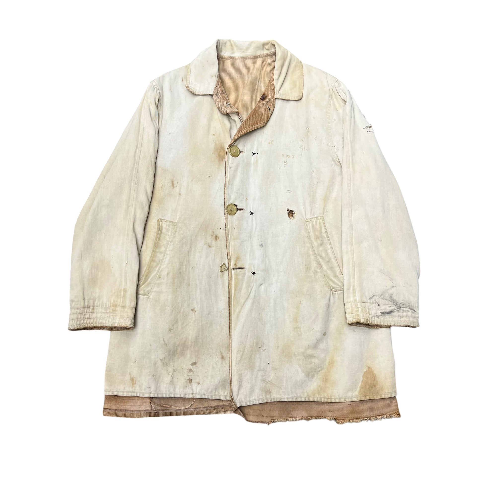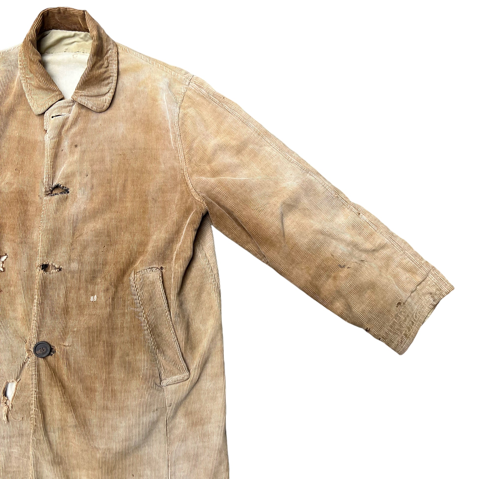 1910s 1920s Distressed & sun faded corduroy/canvas reversible overcoat (L)