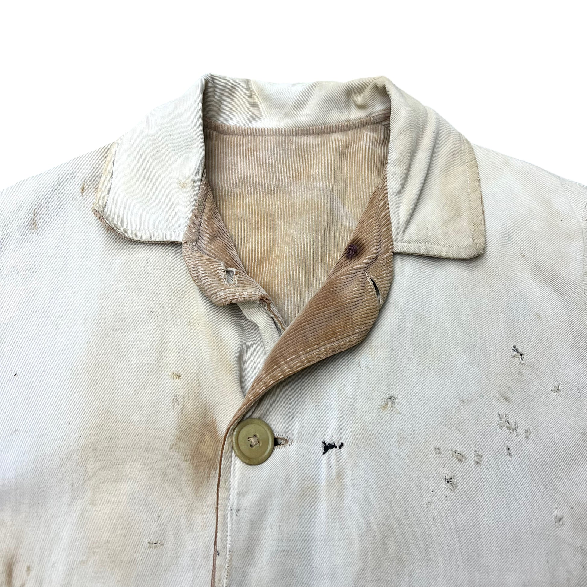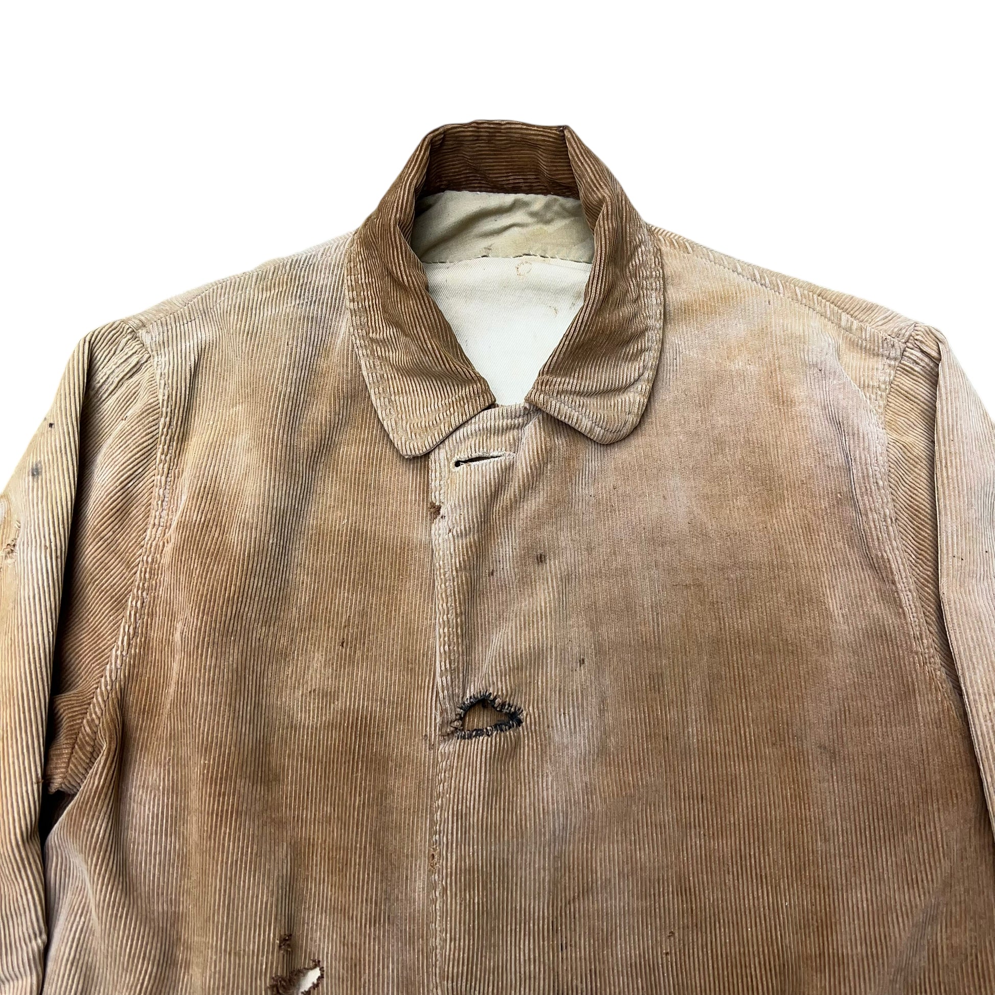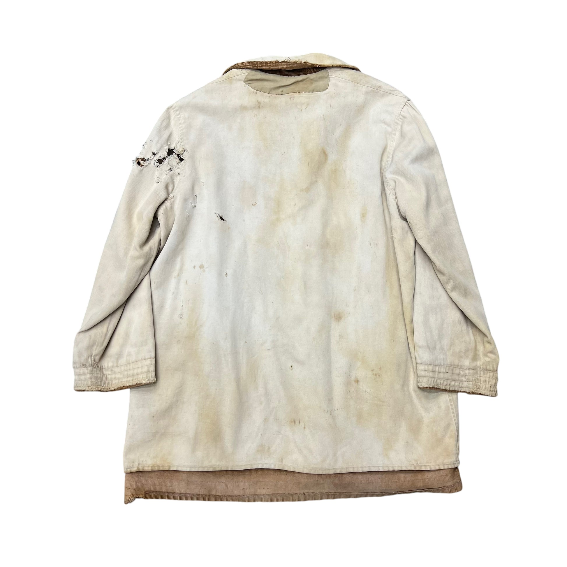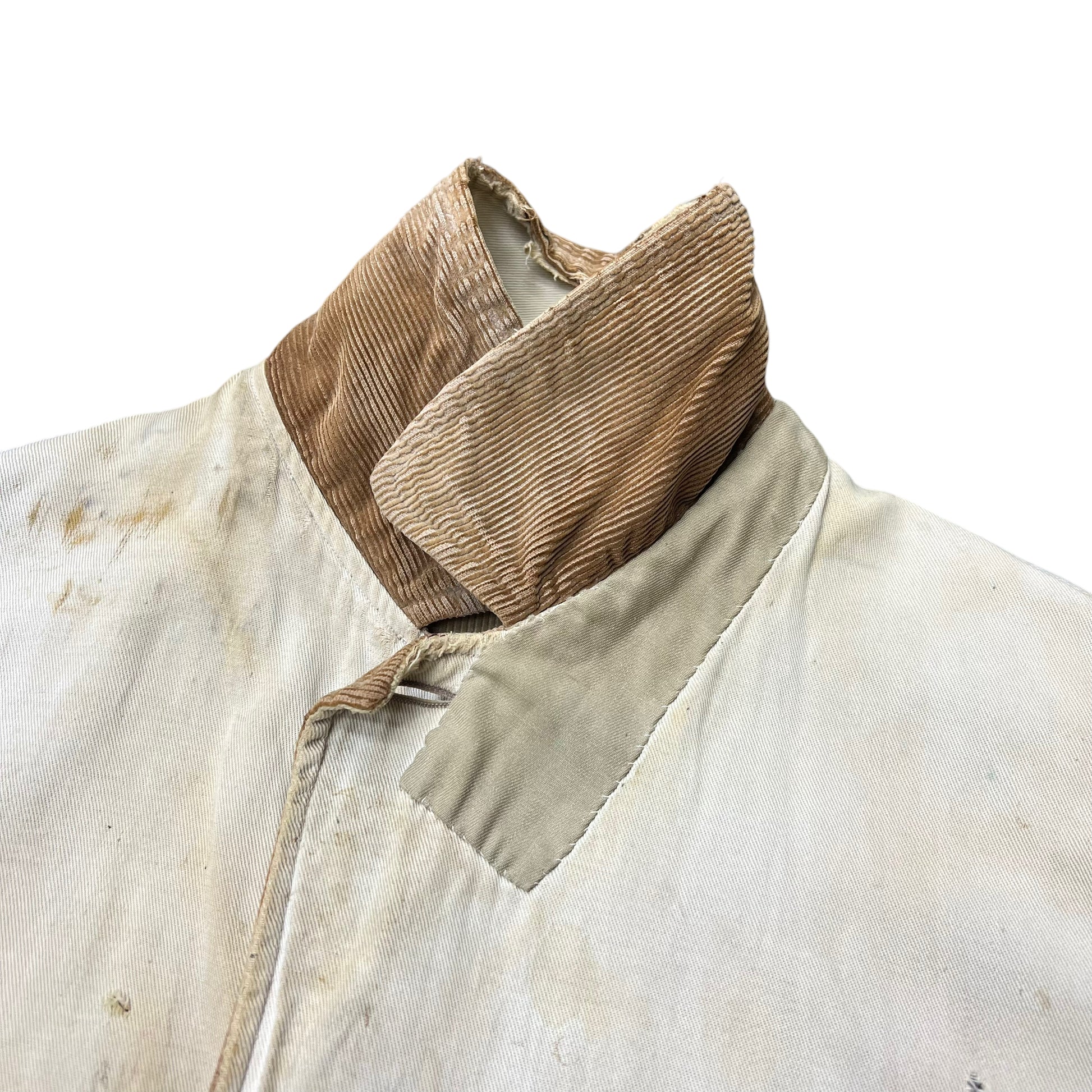 1910s 1920s Distressed & sun faded corduroy/canvas reversible overcoat (L)