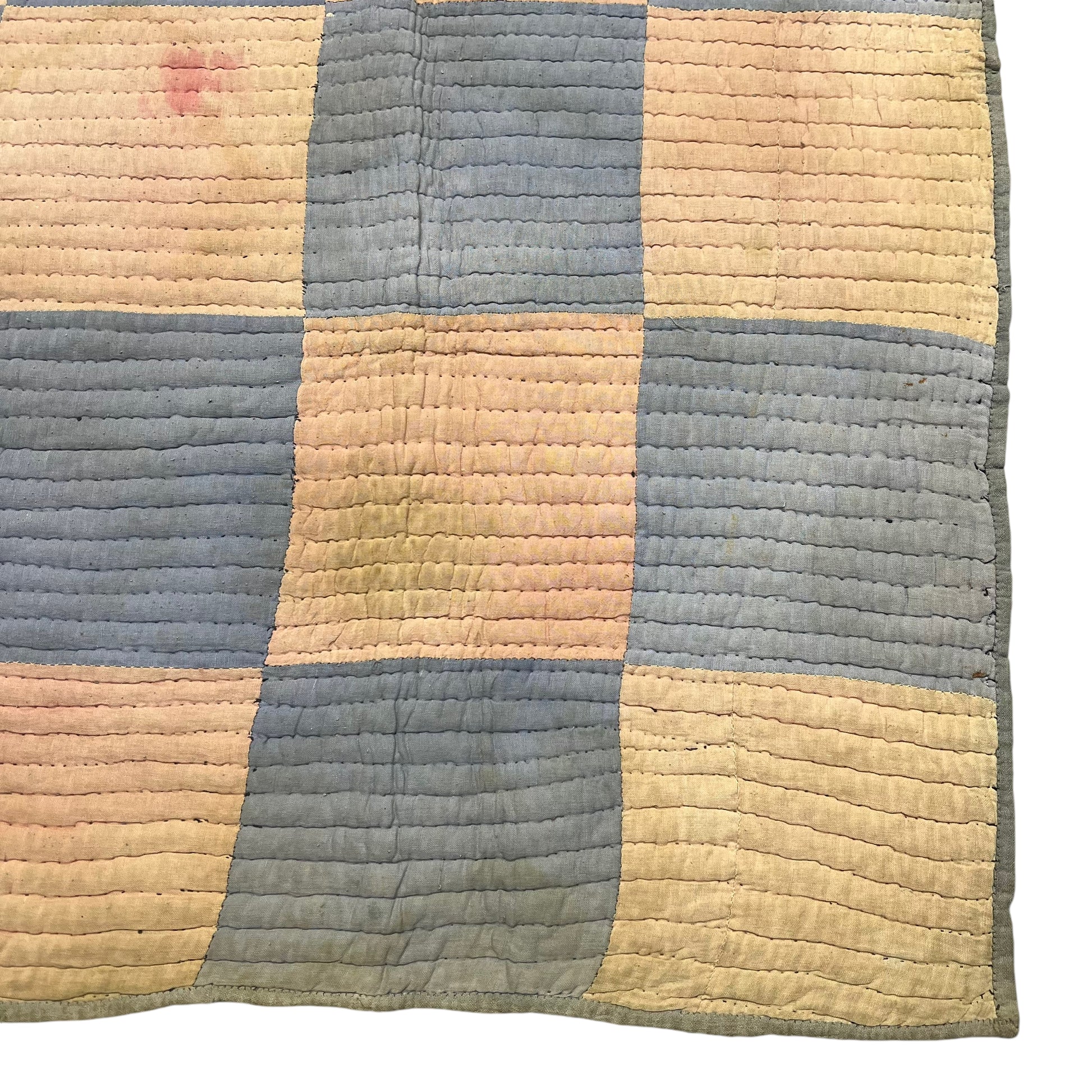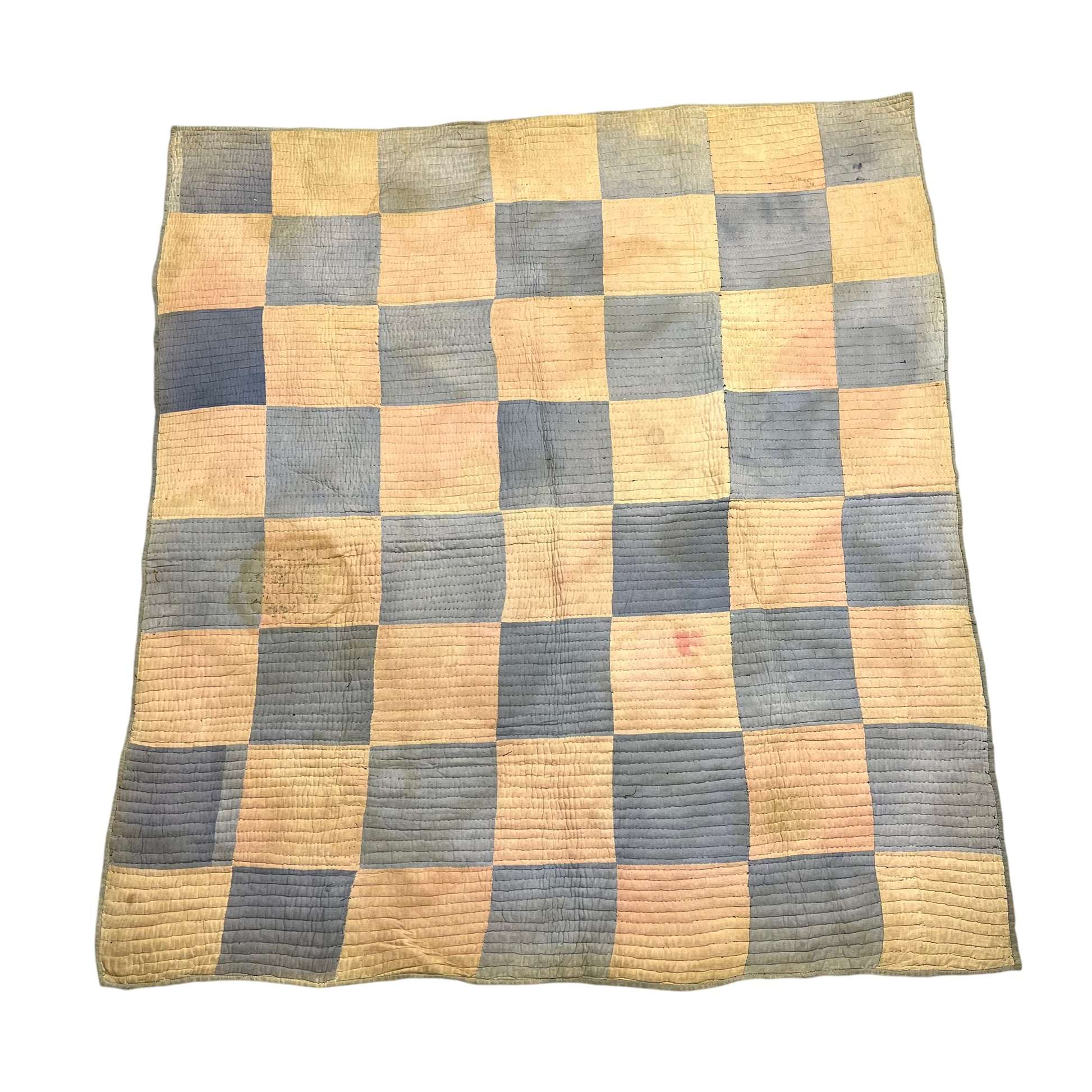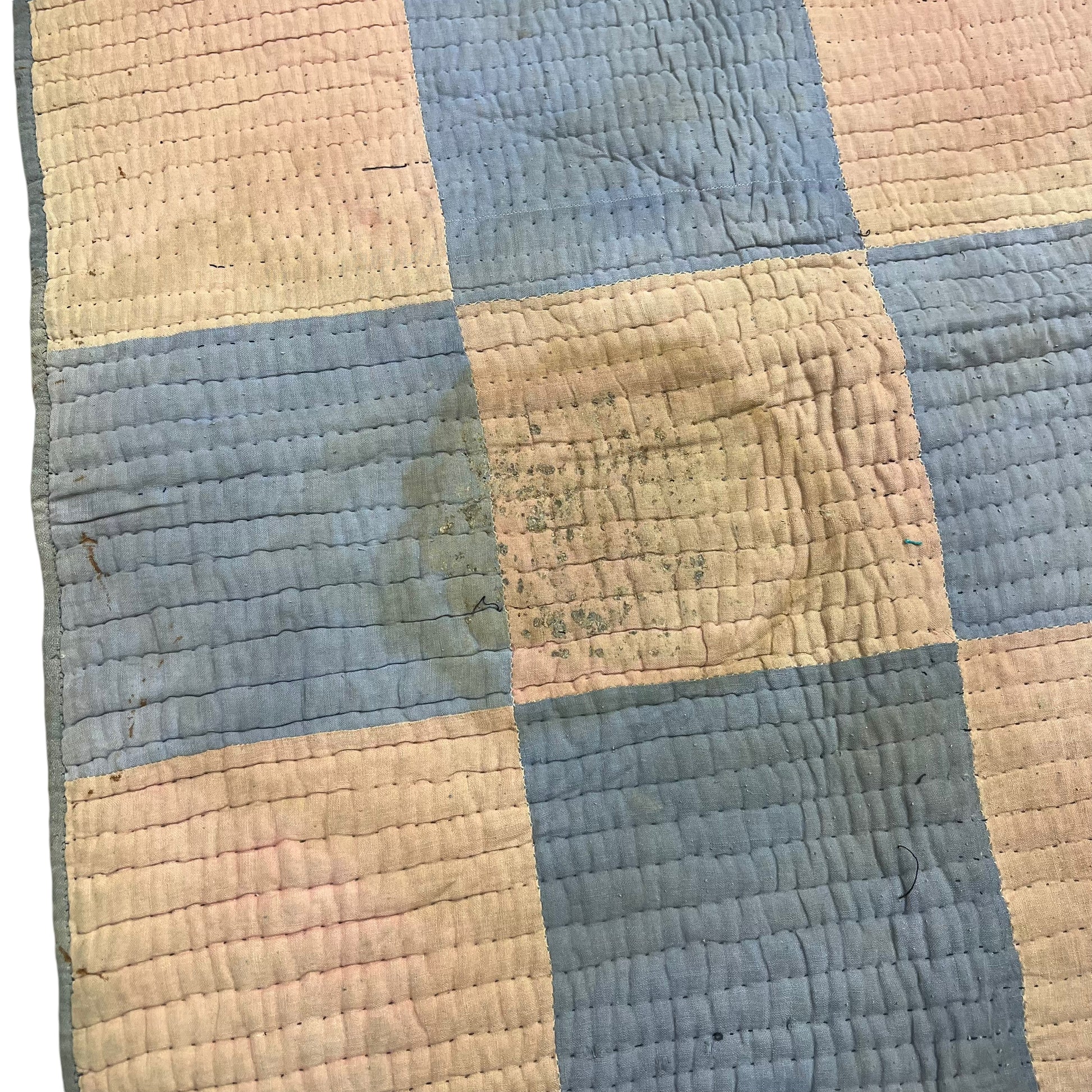 1920s-1930s Pink and blue check quilt (71”x66”)