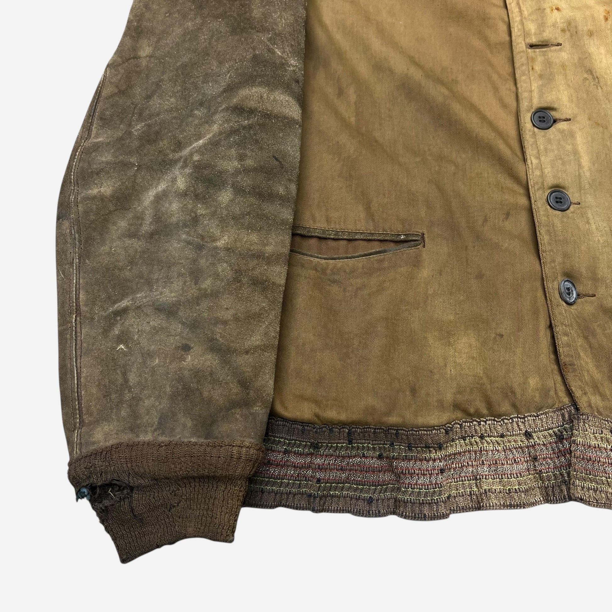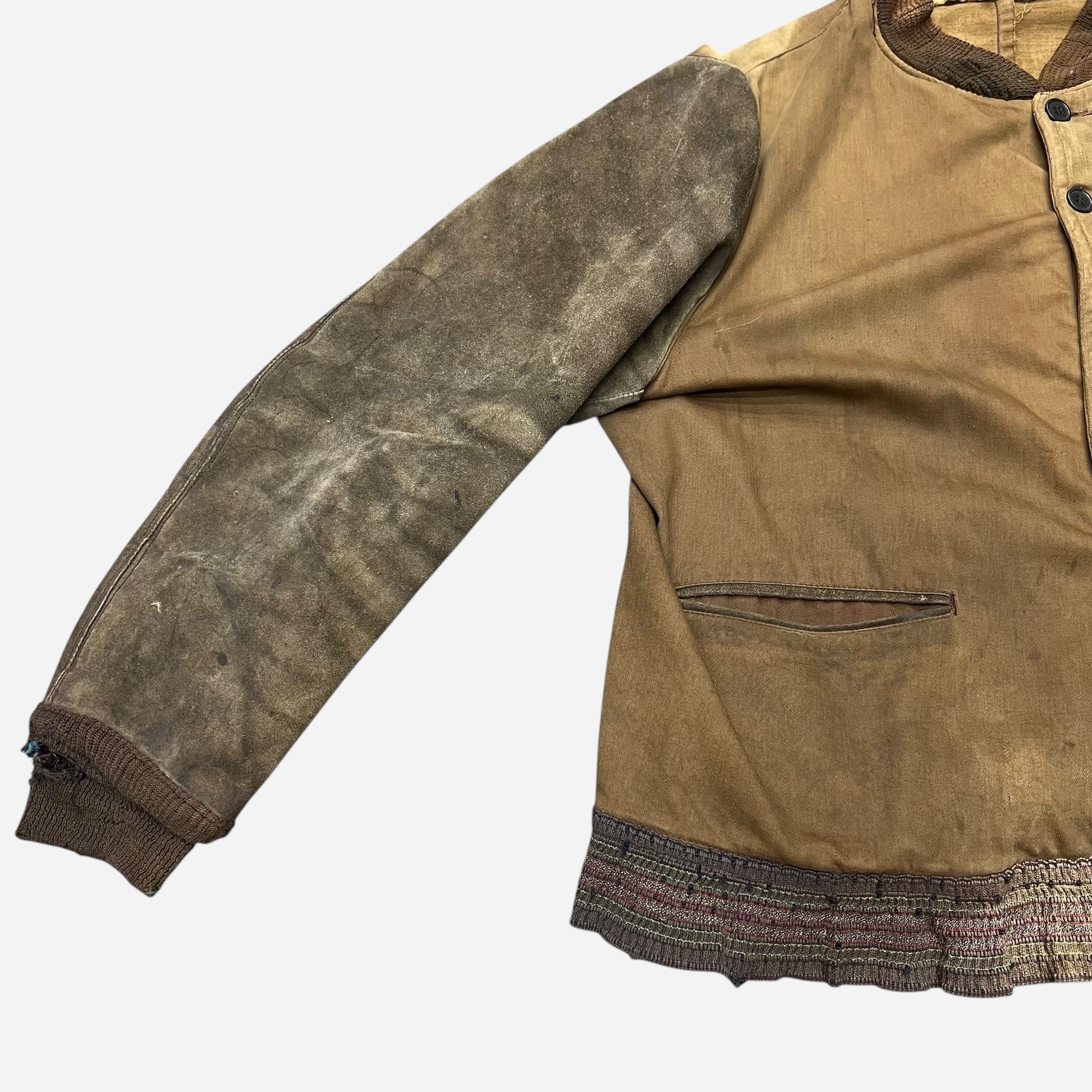 1920s 1930s Sears Double Duty cotton/leather work jacket (L/XL)