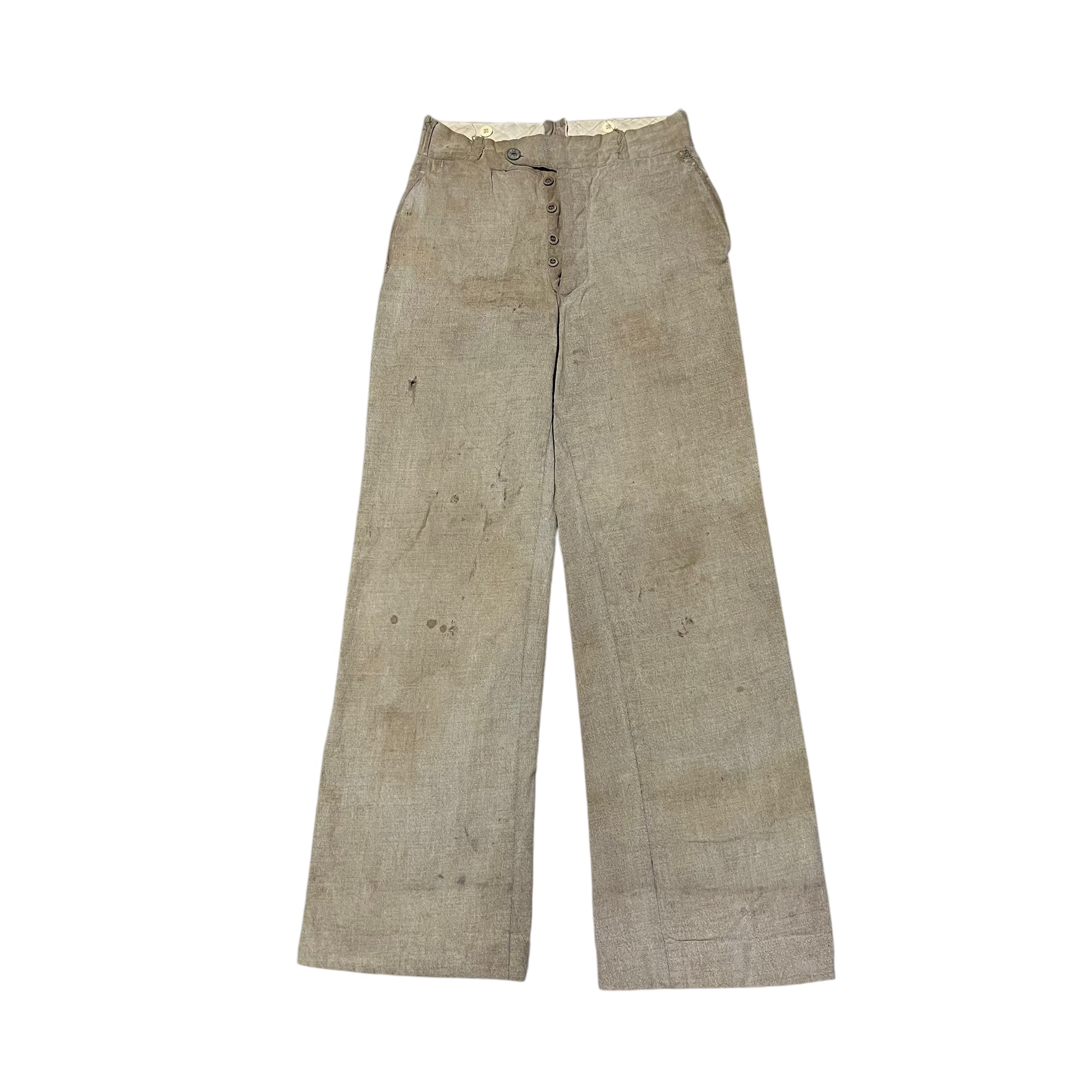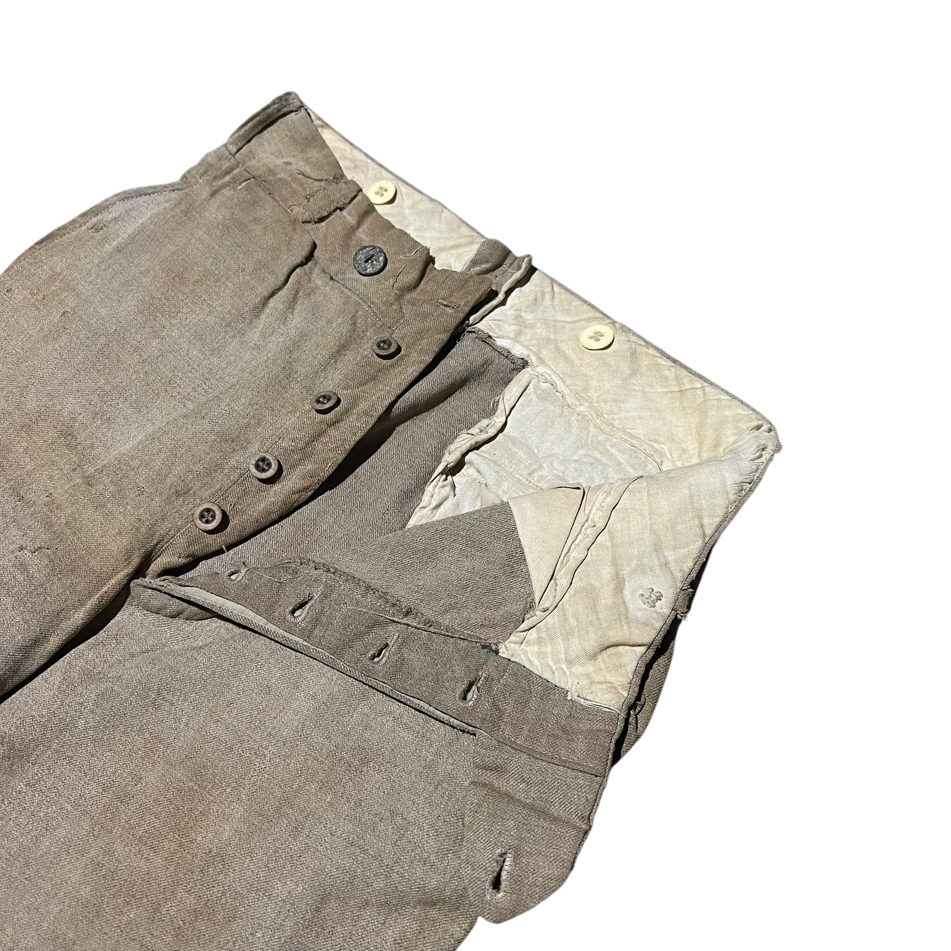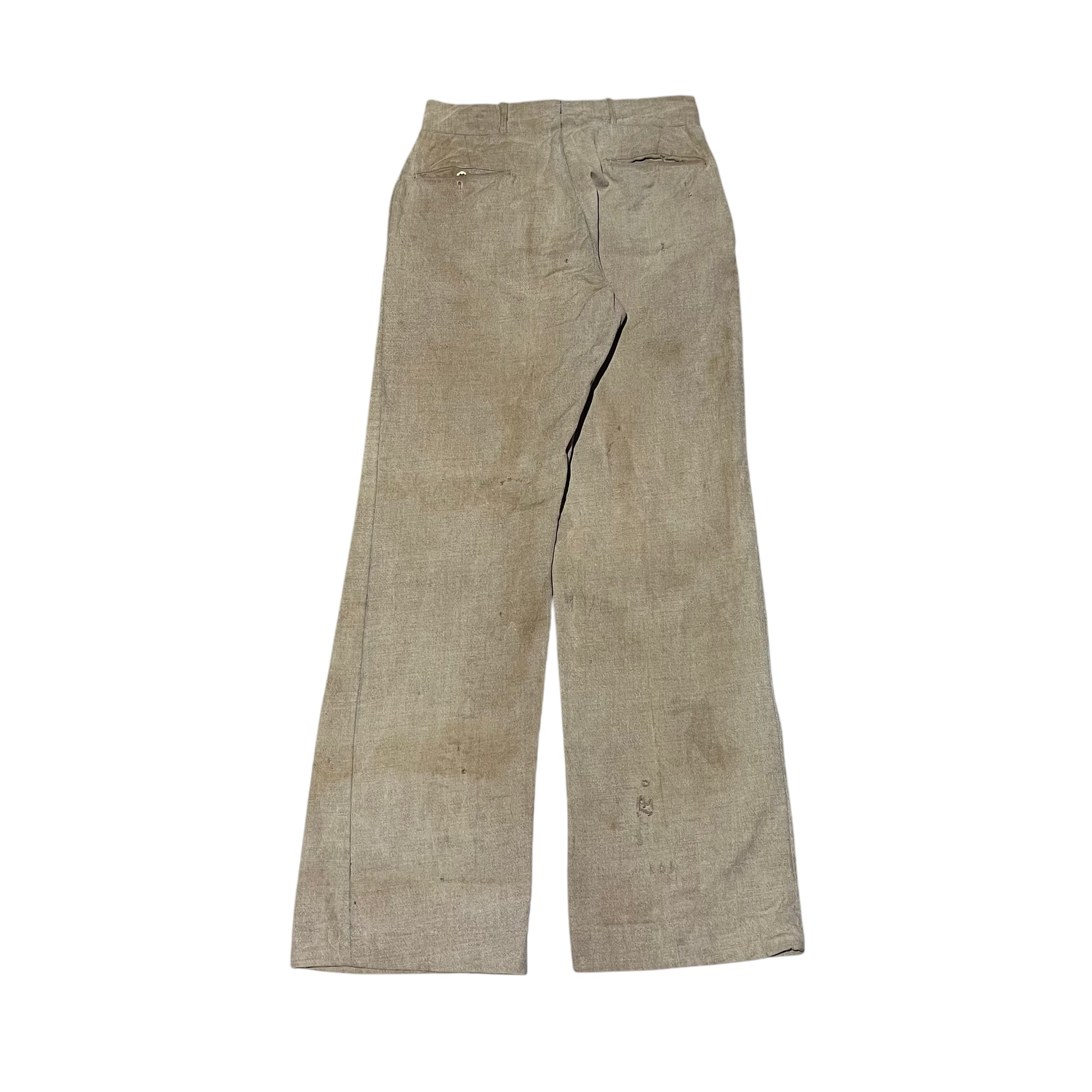1920s 1930s Tan wool button fly single pleat work pants (29w)