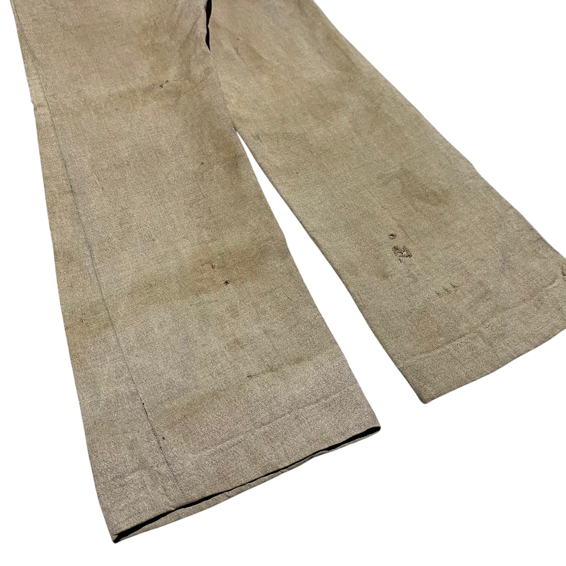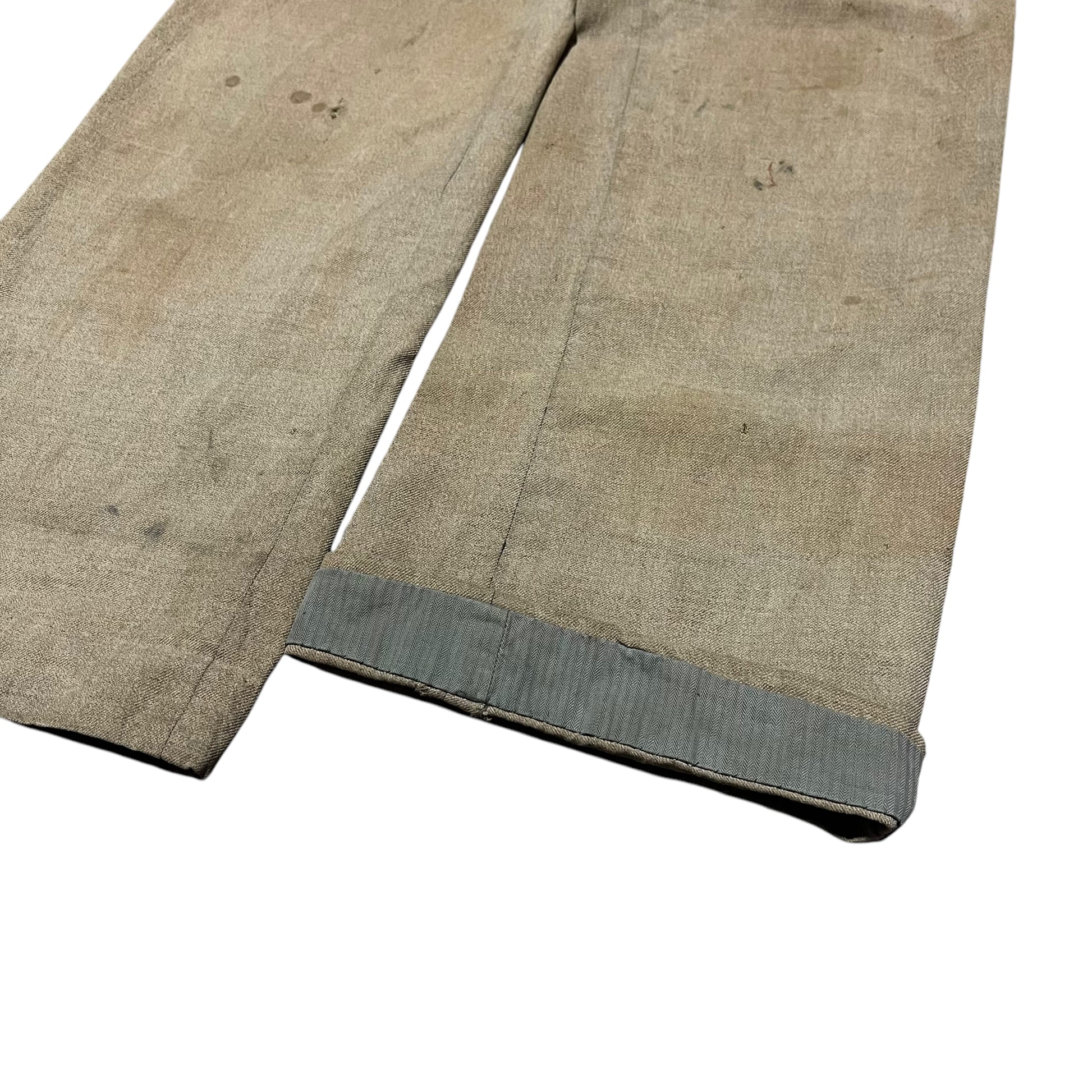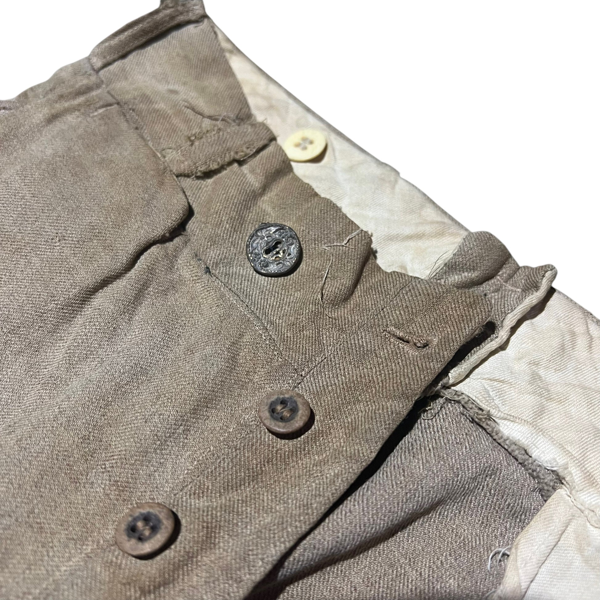 1920s 1930s Tan wool button fly single pleat work pants (29w)