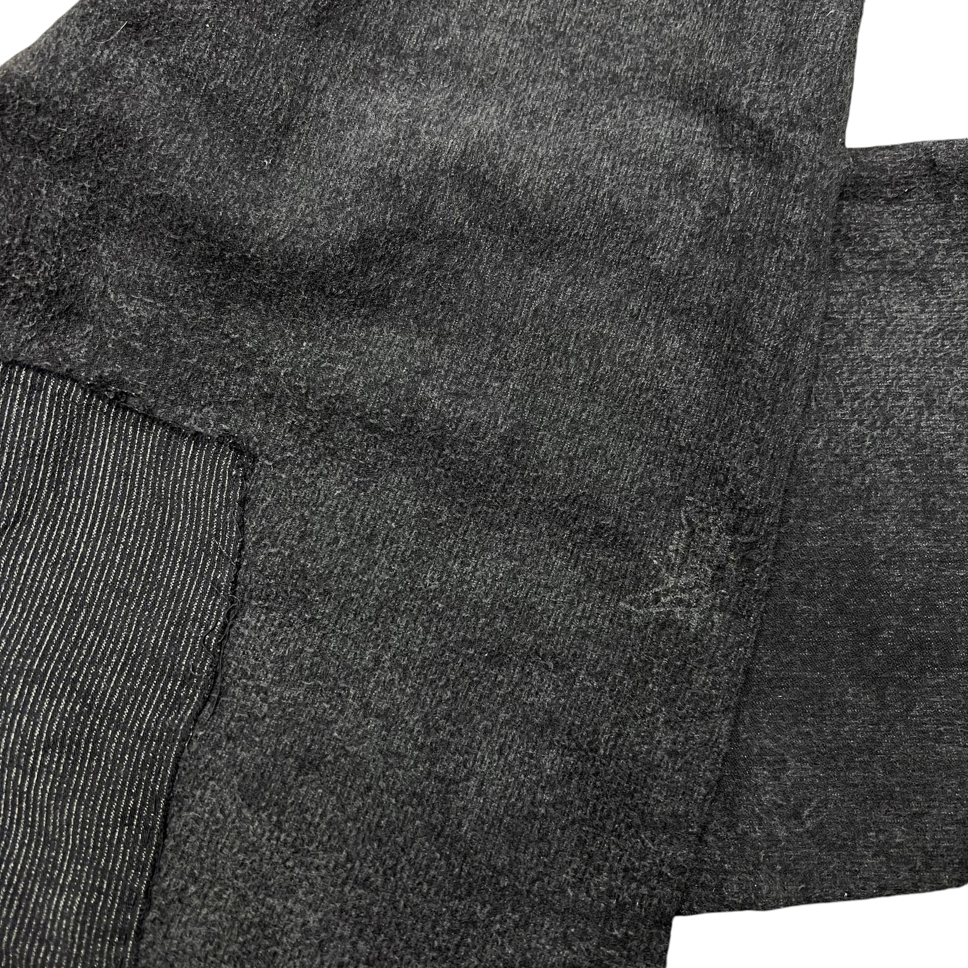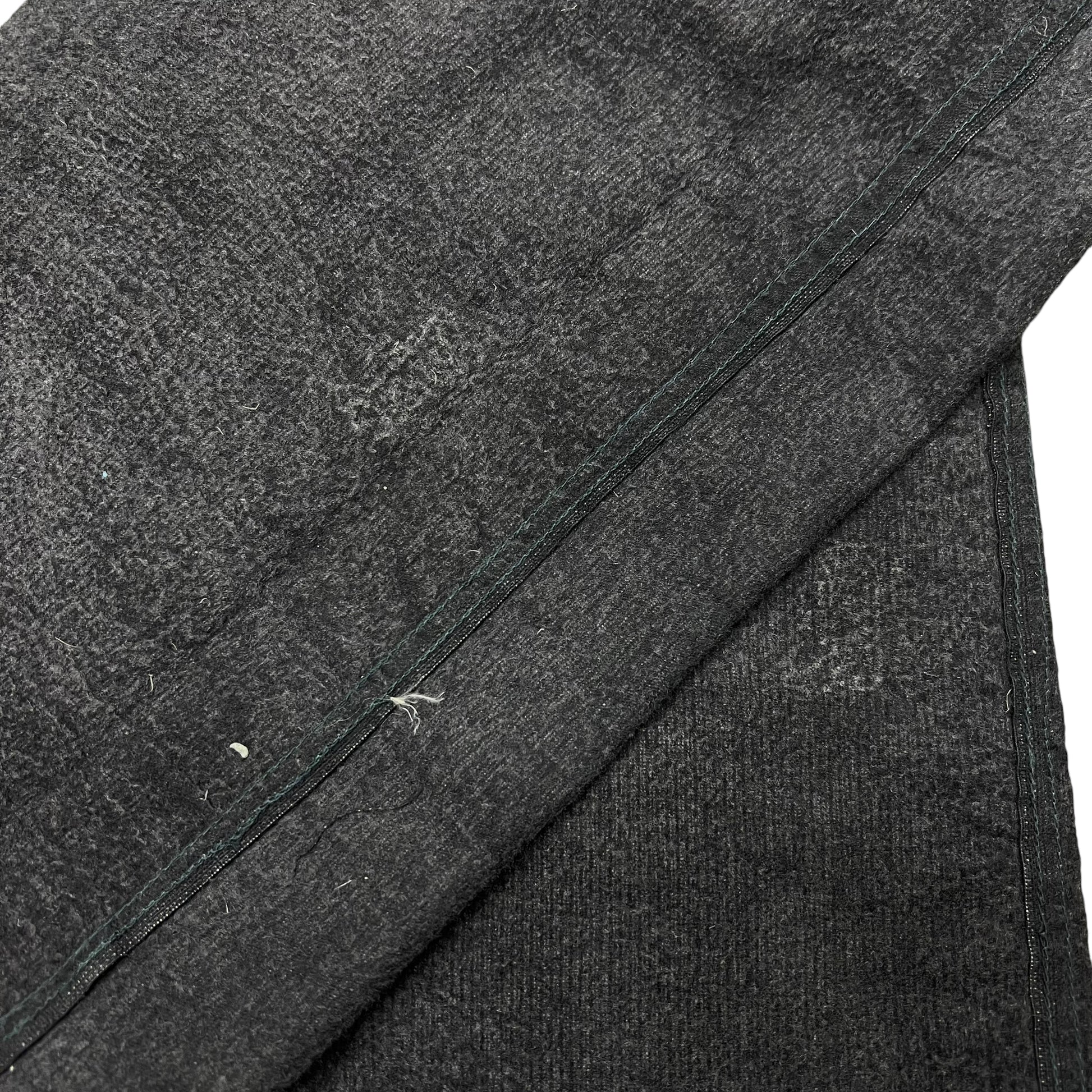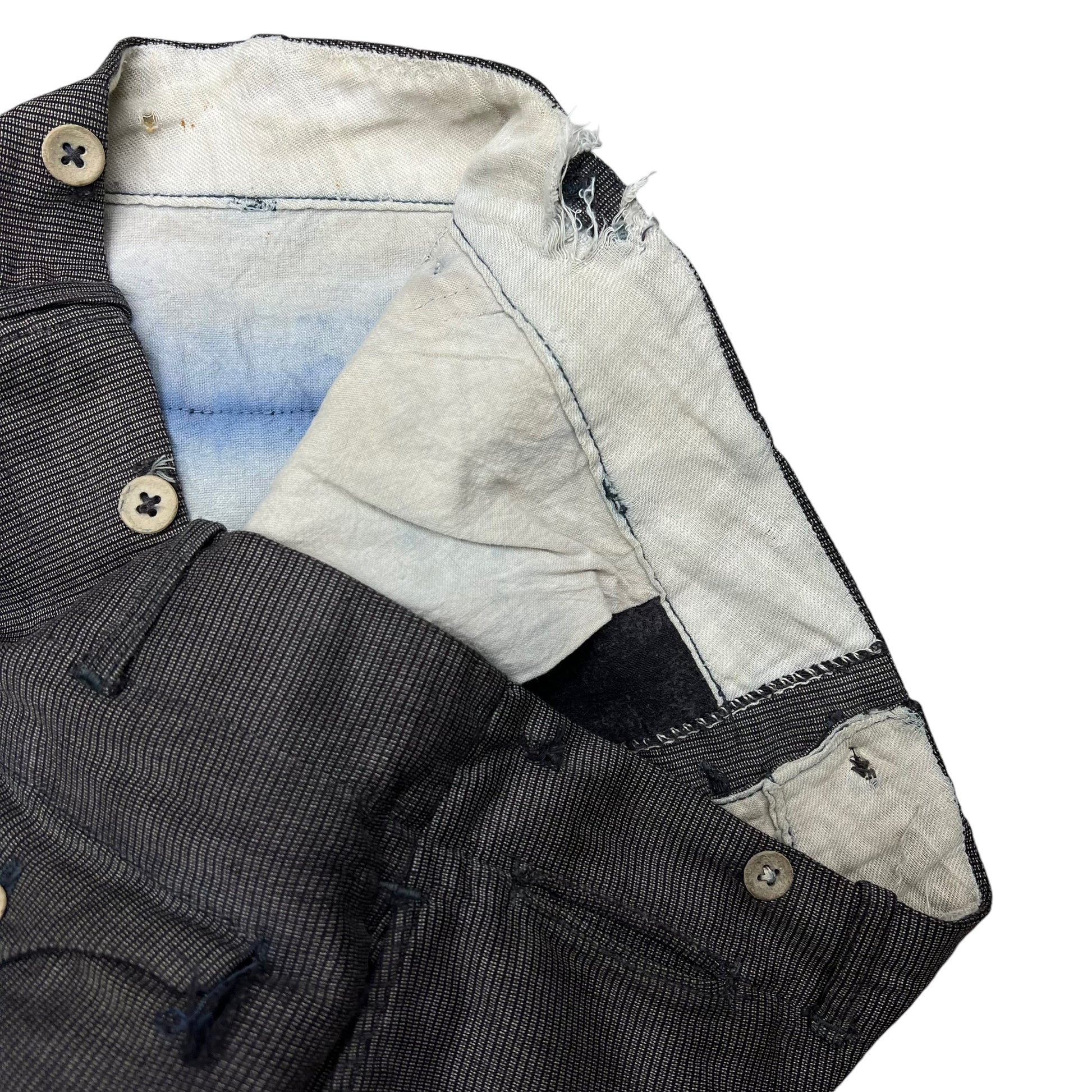 Very clean, small tear at back pocket. Indigo dye bleeding on inner back pocket liner due to an addition of blue wool fabric on the inside pockets.