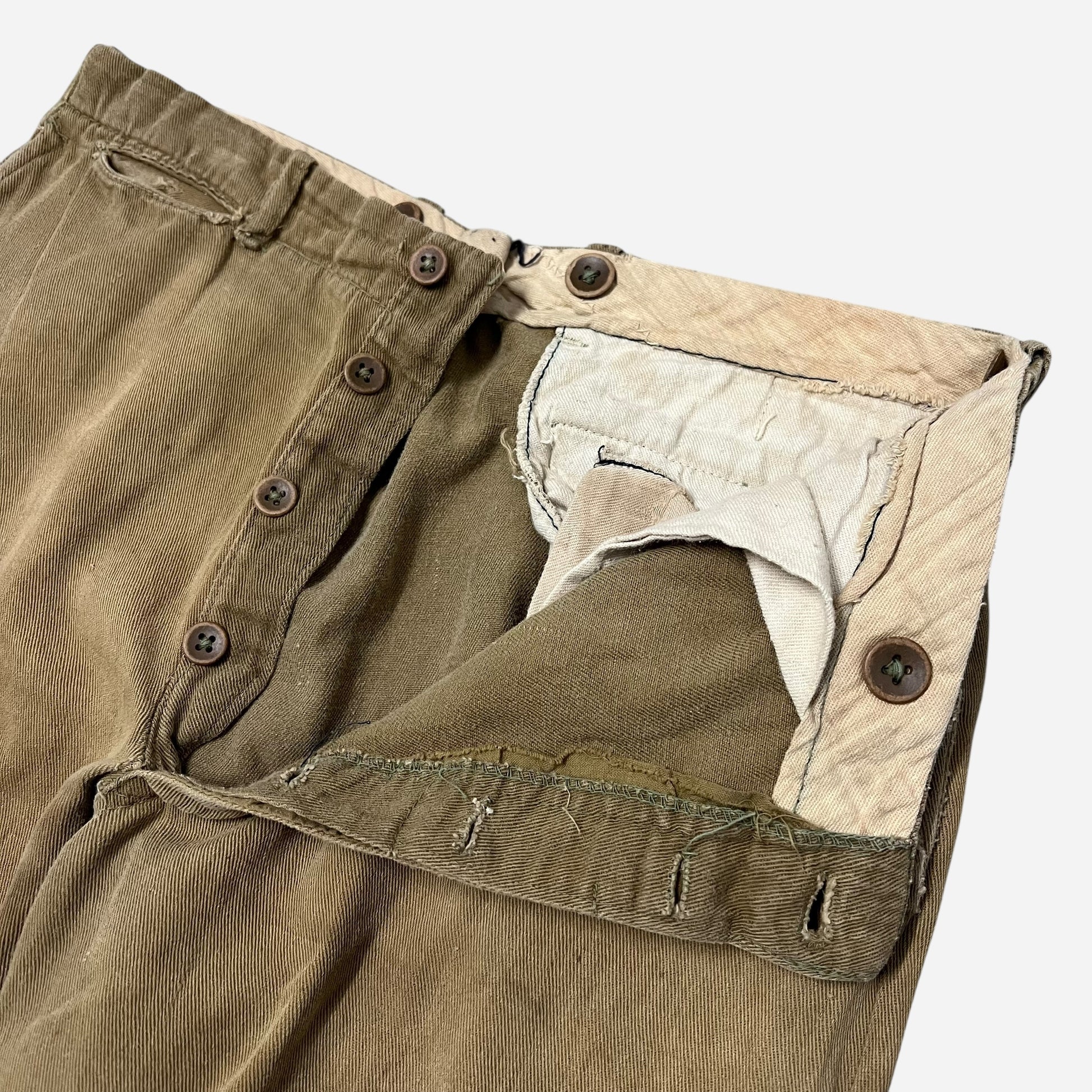 1920s Tan light cotton button fly pants (30w)