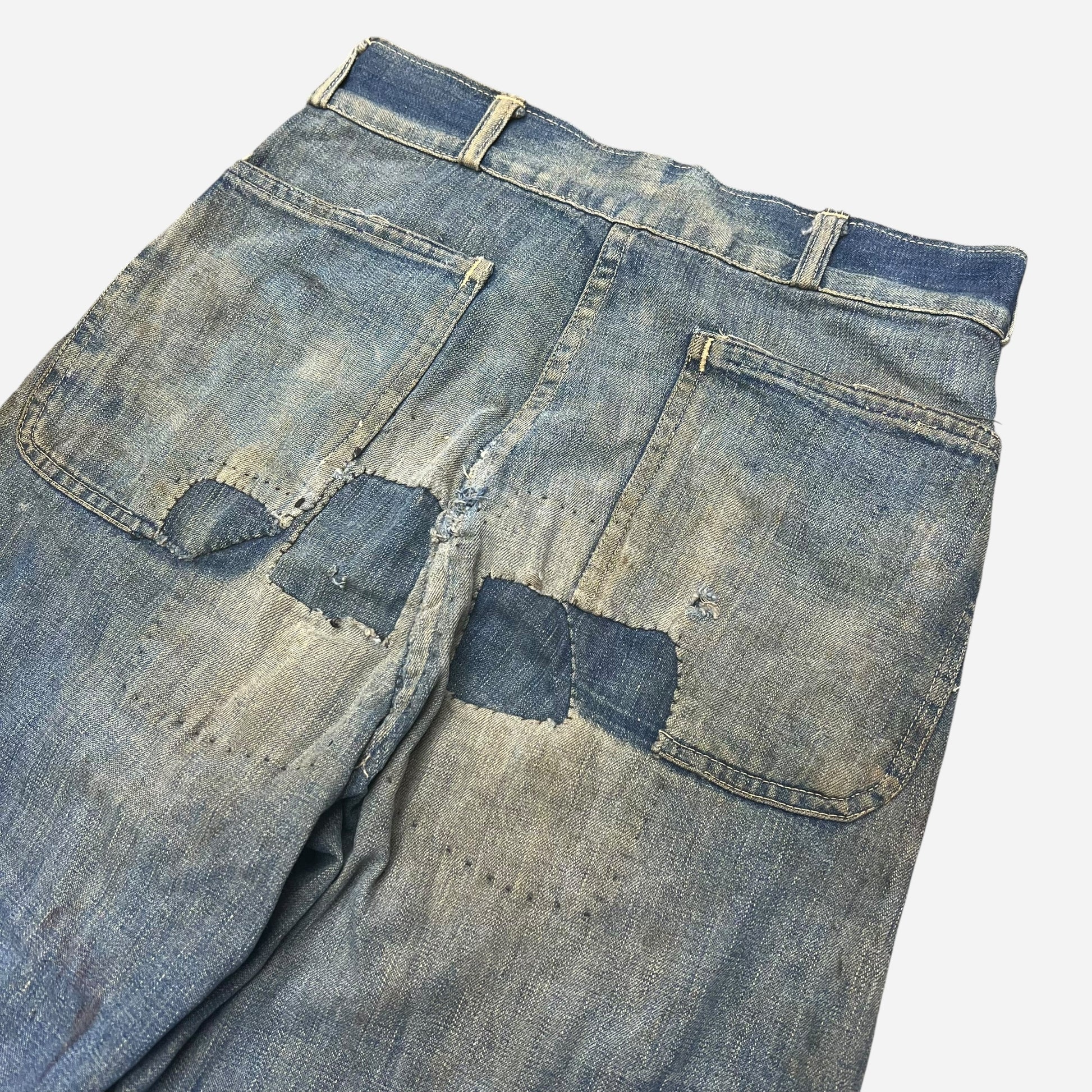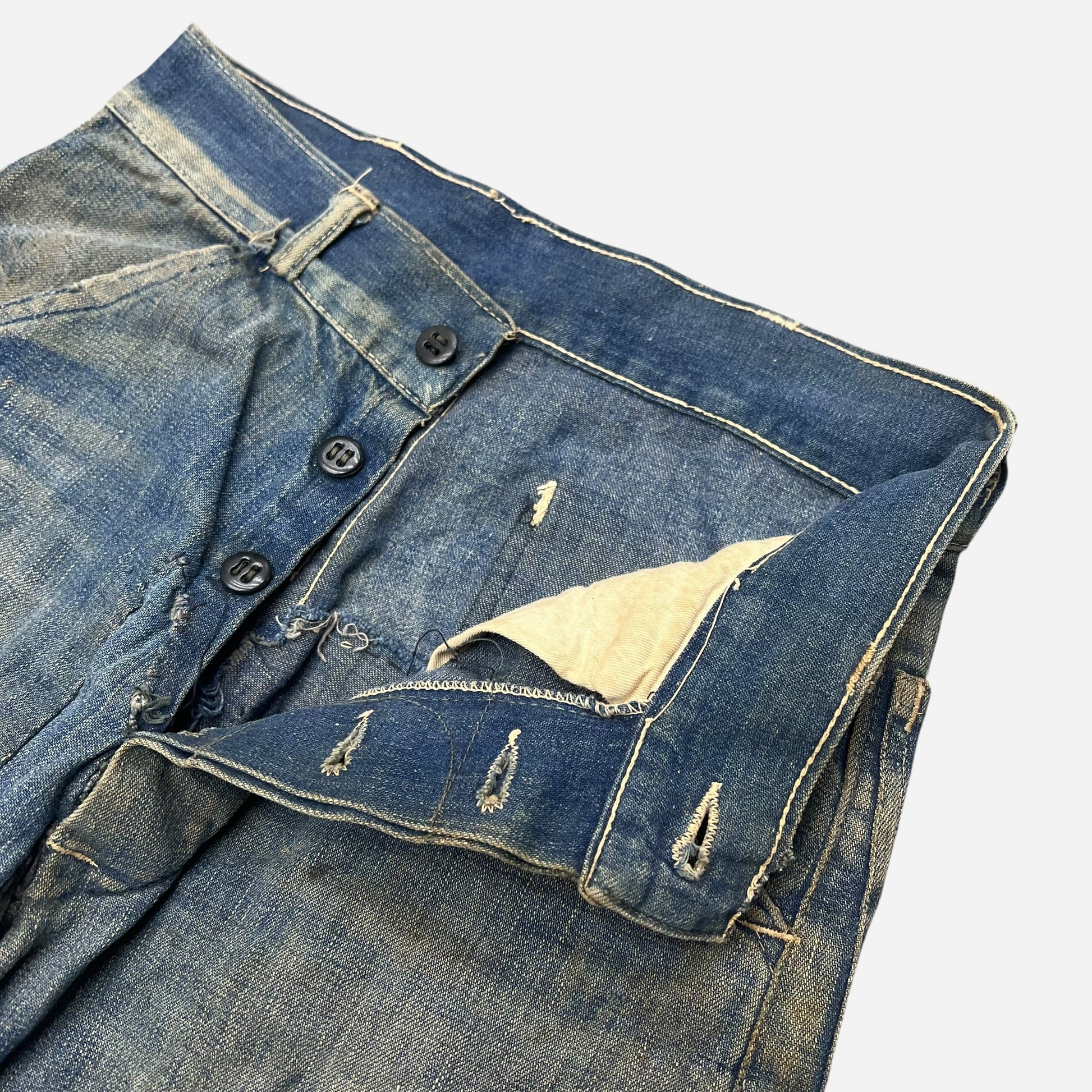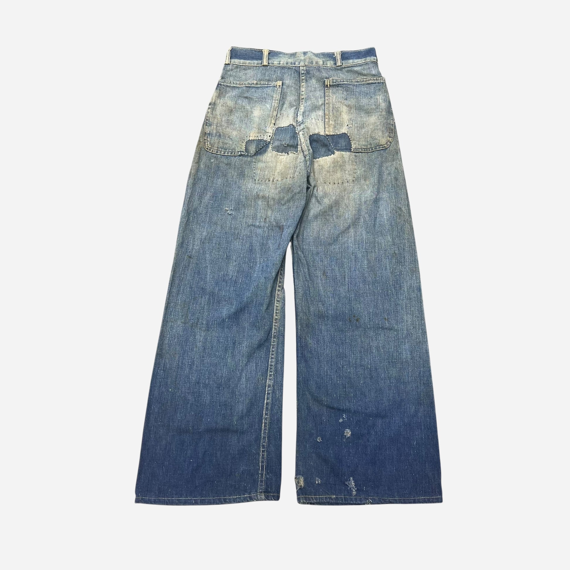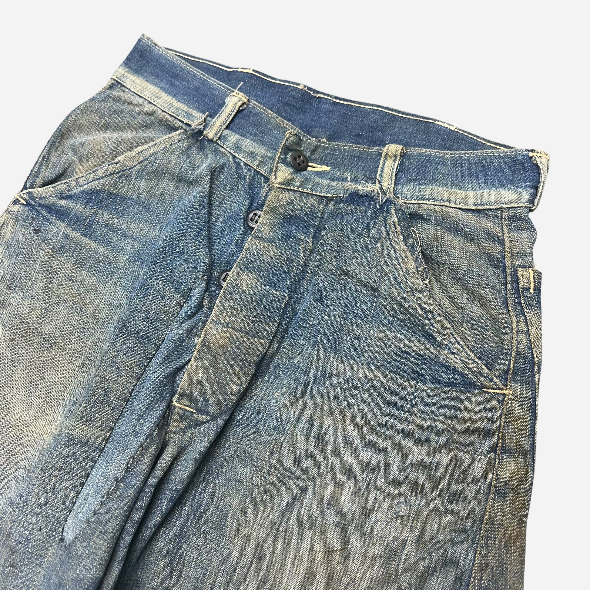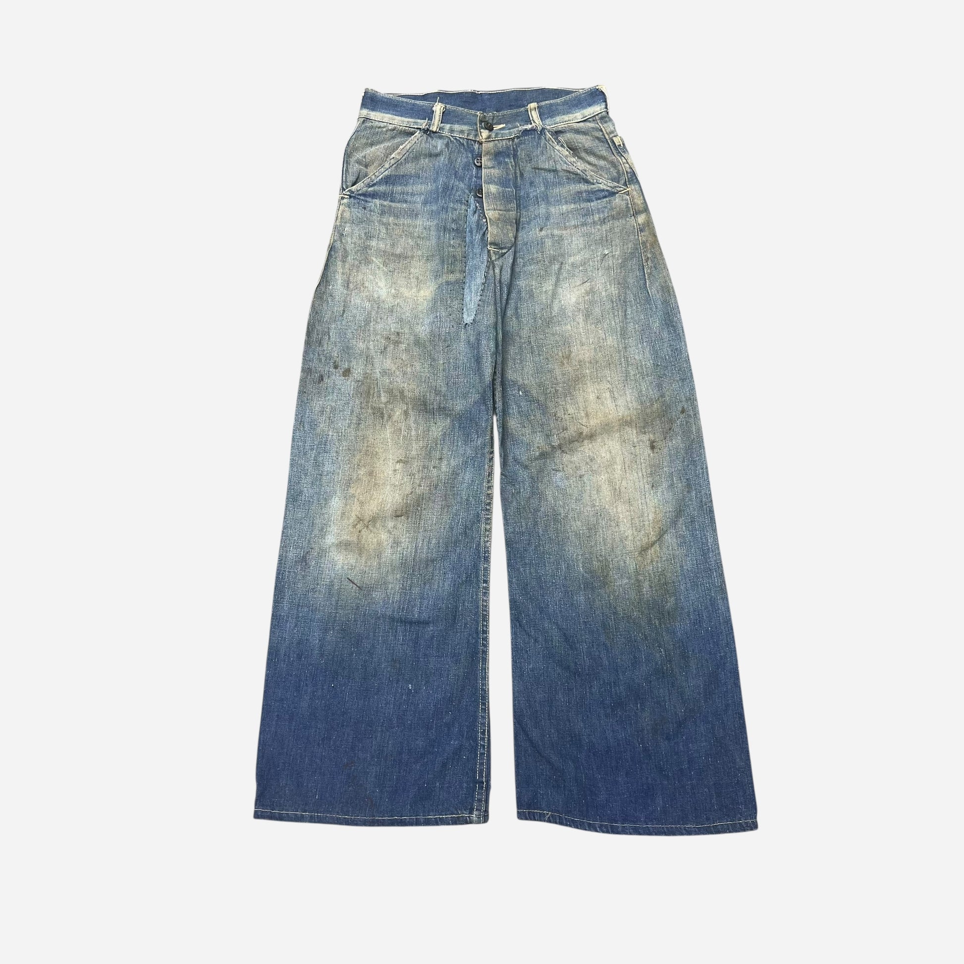 1930s 1940s Wide leg button fly denim flared jeans (25w)