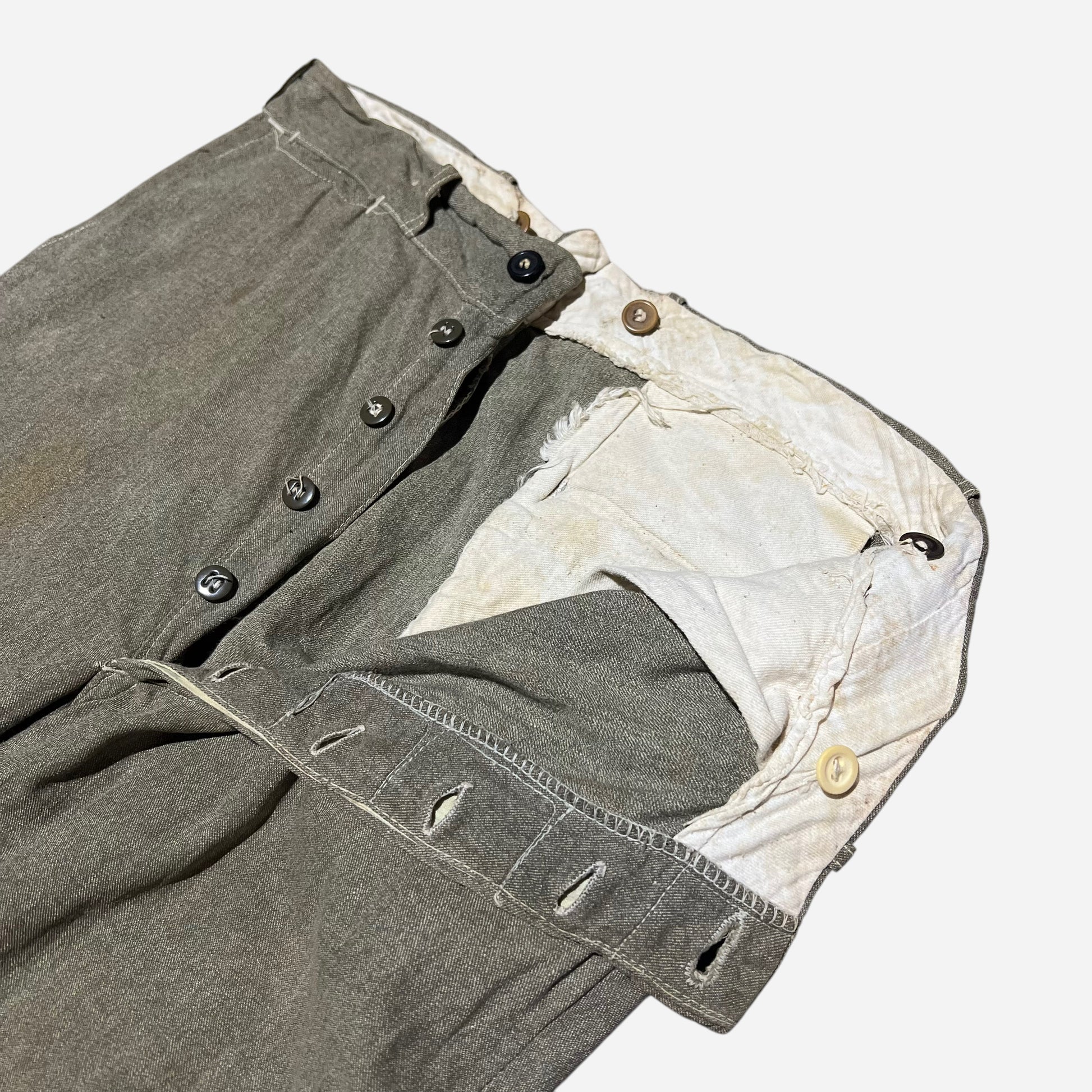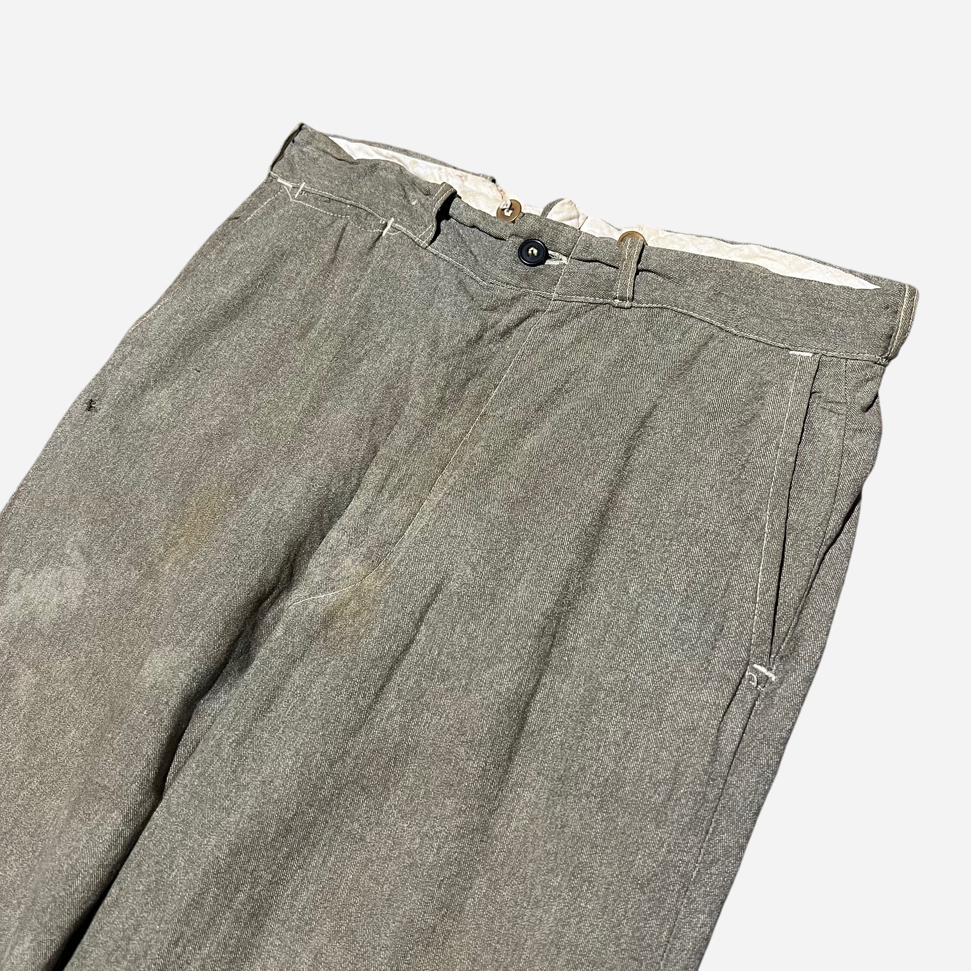 1930s 1940s Green salt and pepper light cotton work pants (32w)