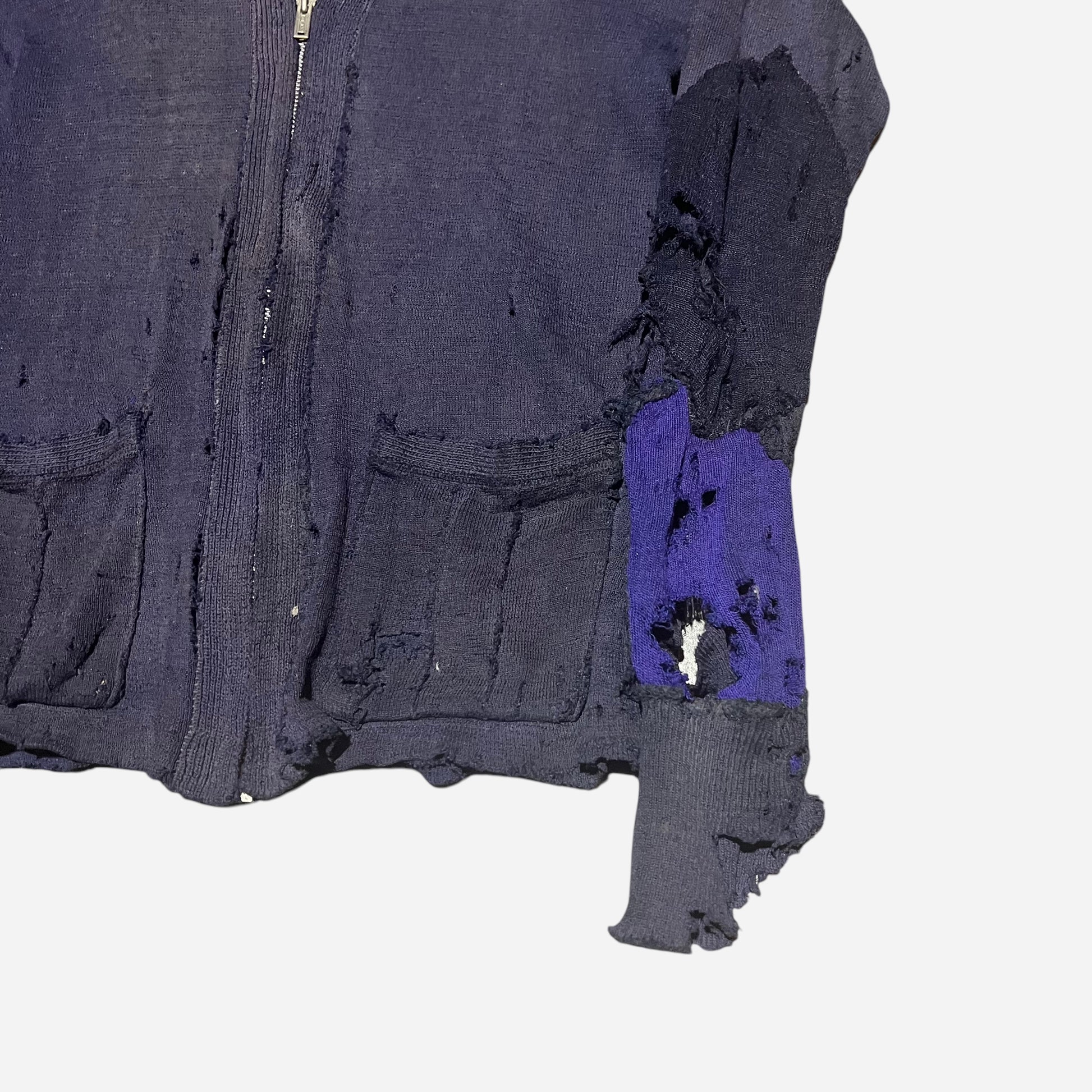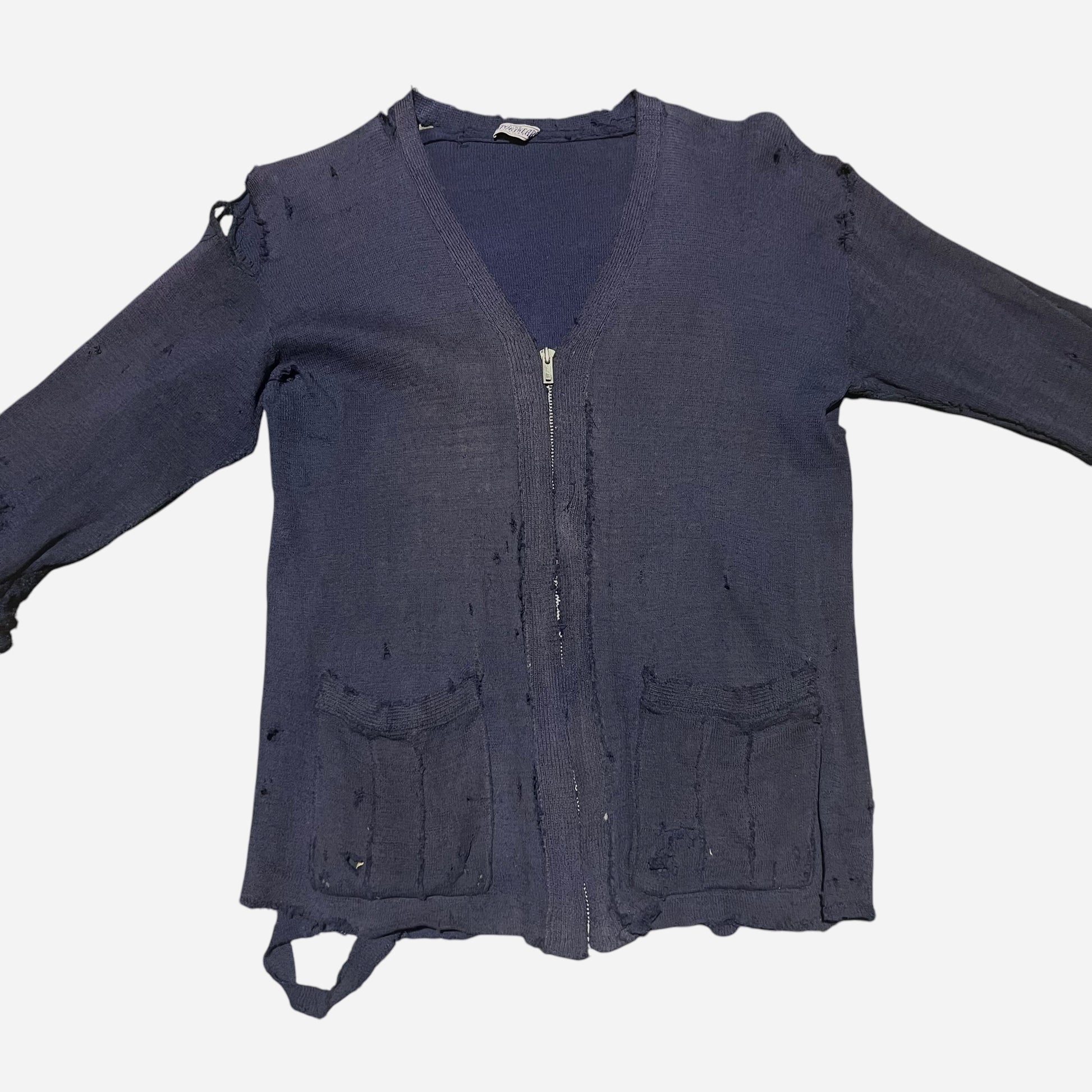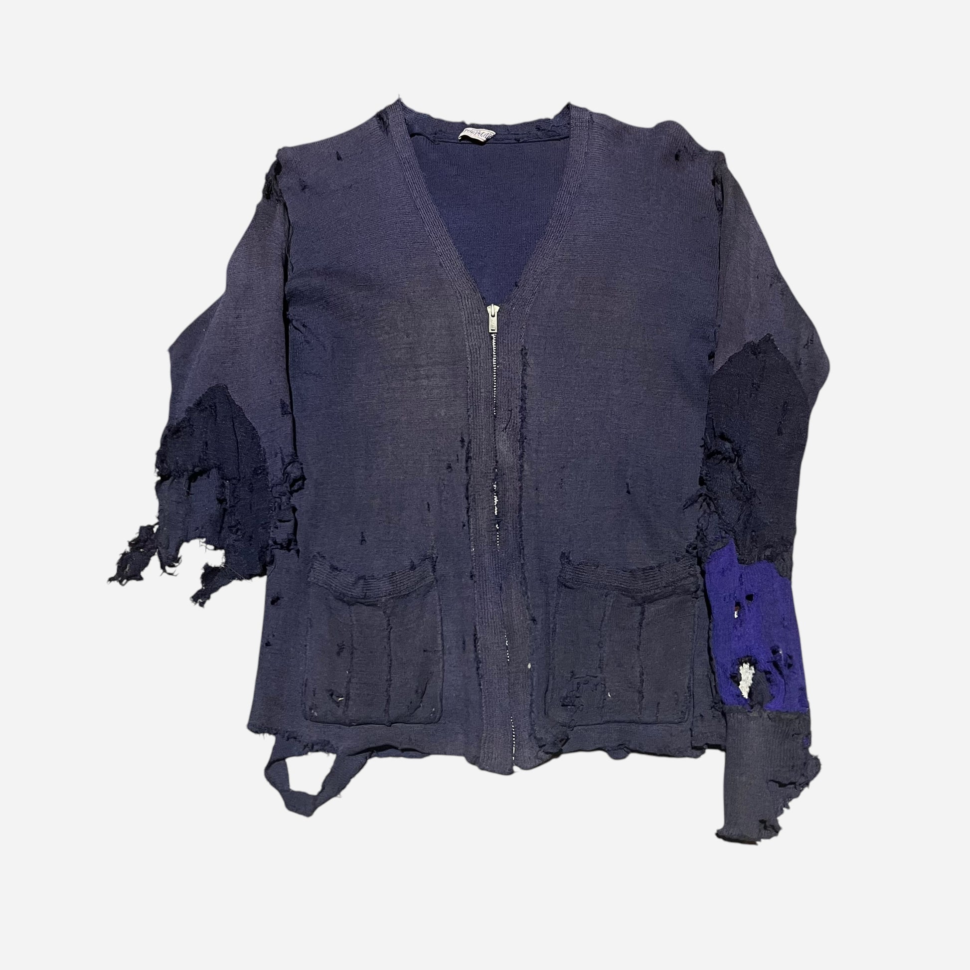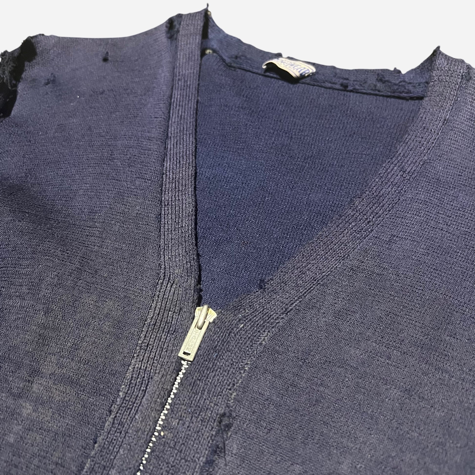 1930s 1940s Purple/navy wool zip up cardigan (S)