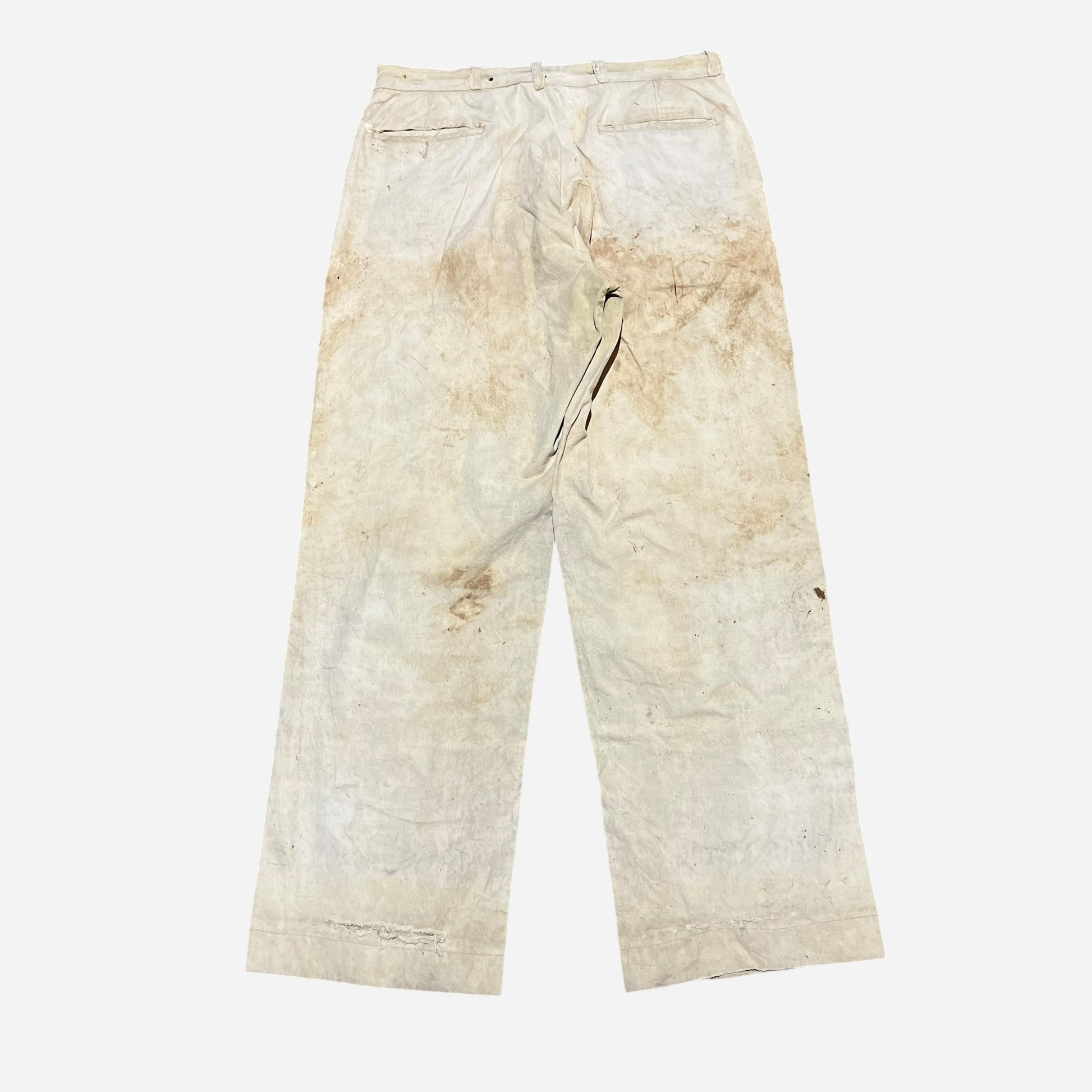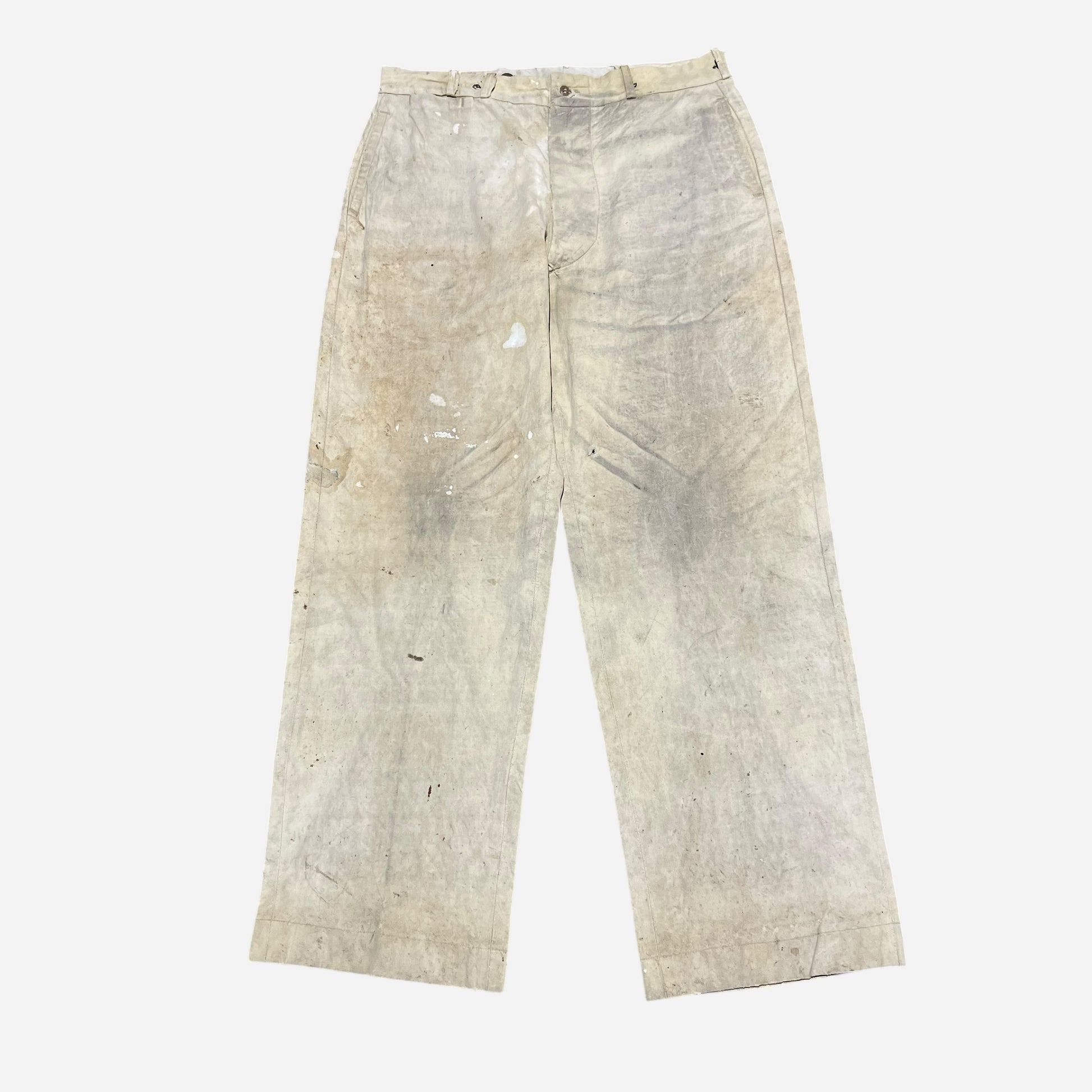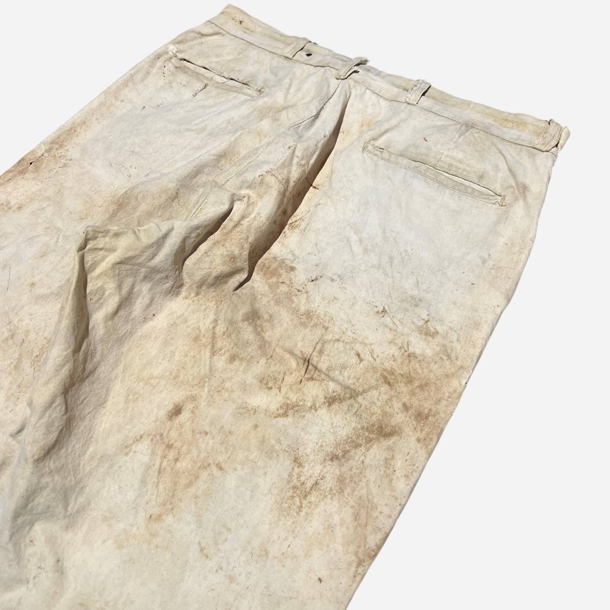 1930s 1940s White light cotton starched/waxed work pants (31w)