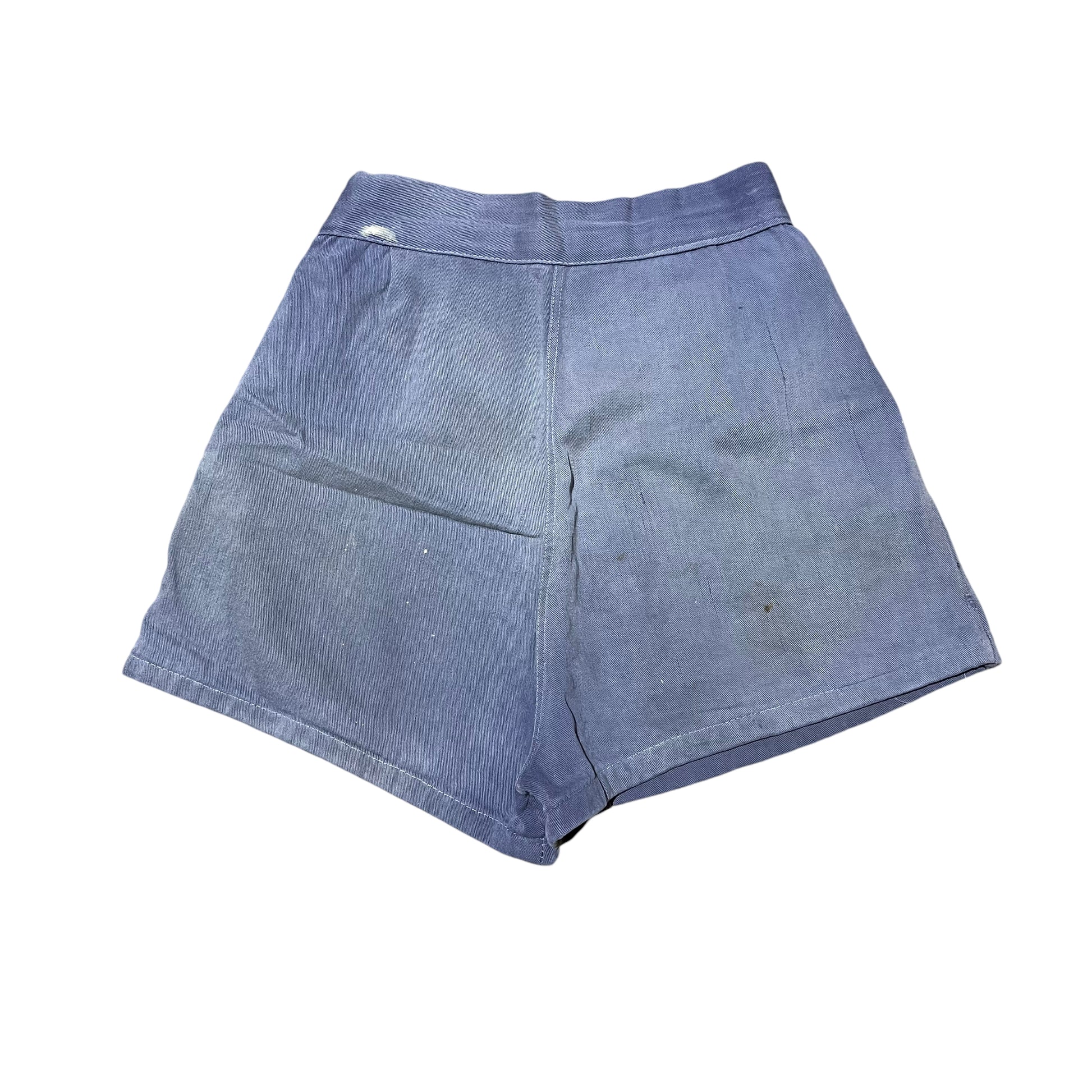 1930s 1940s Women’s blue light cotton pleated shorts (26w)