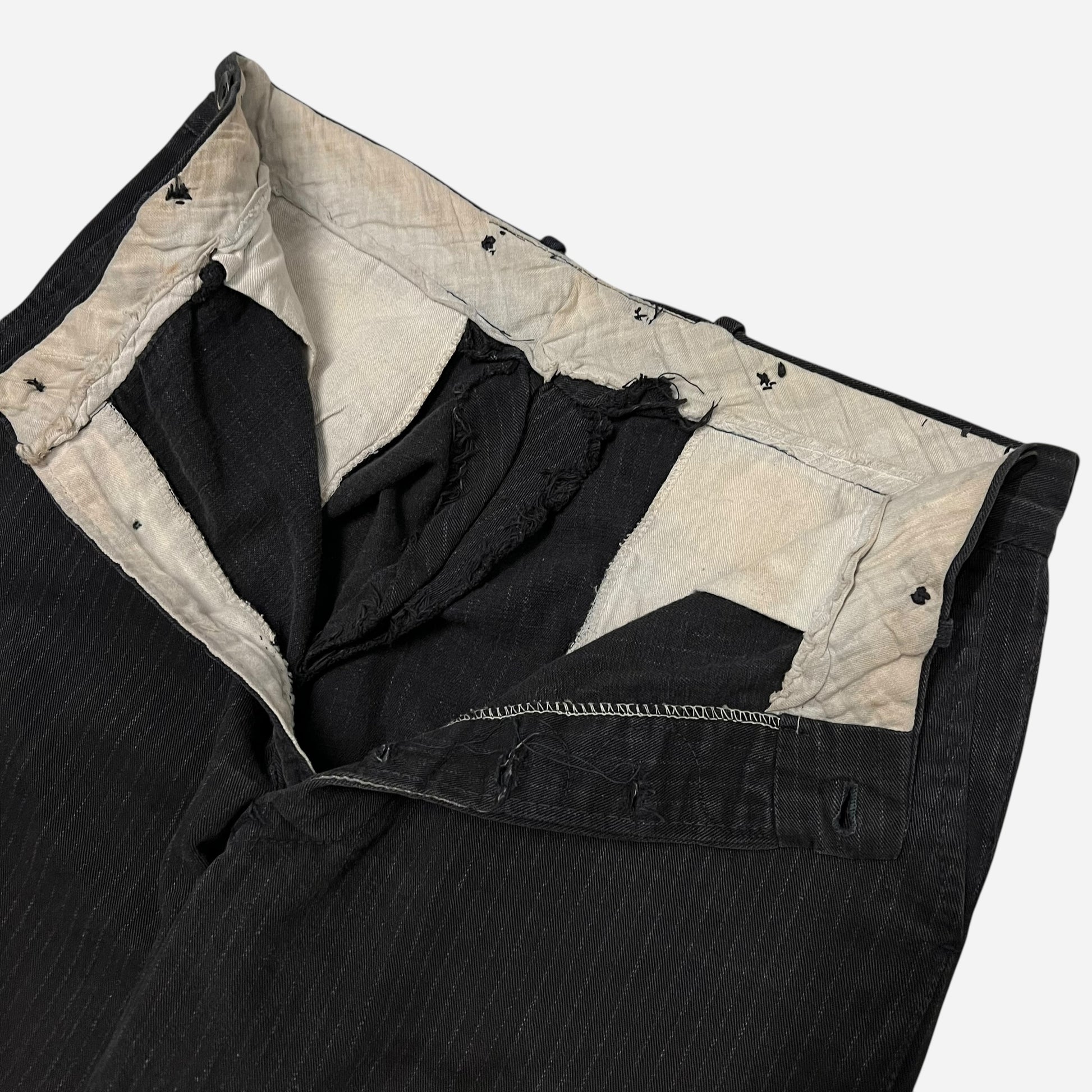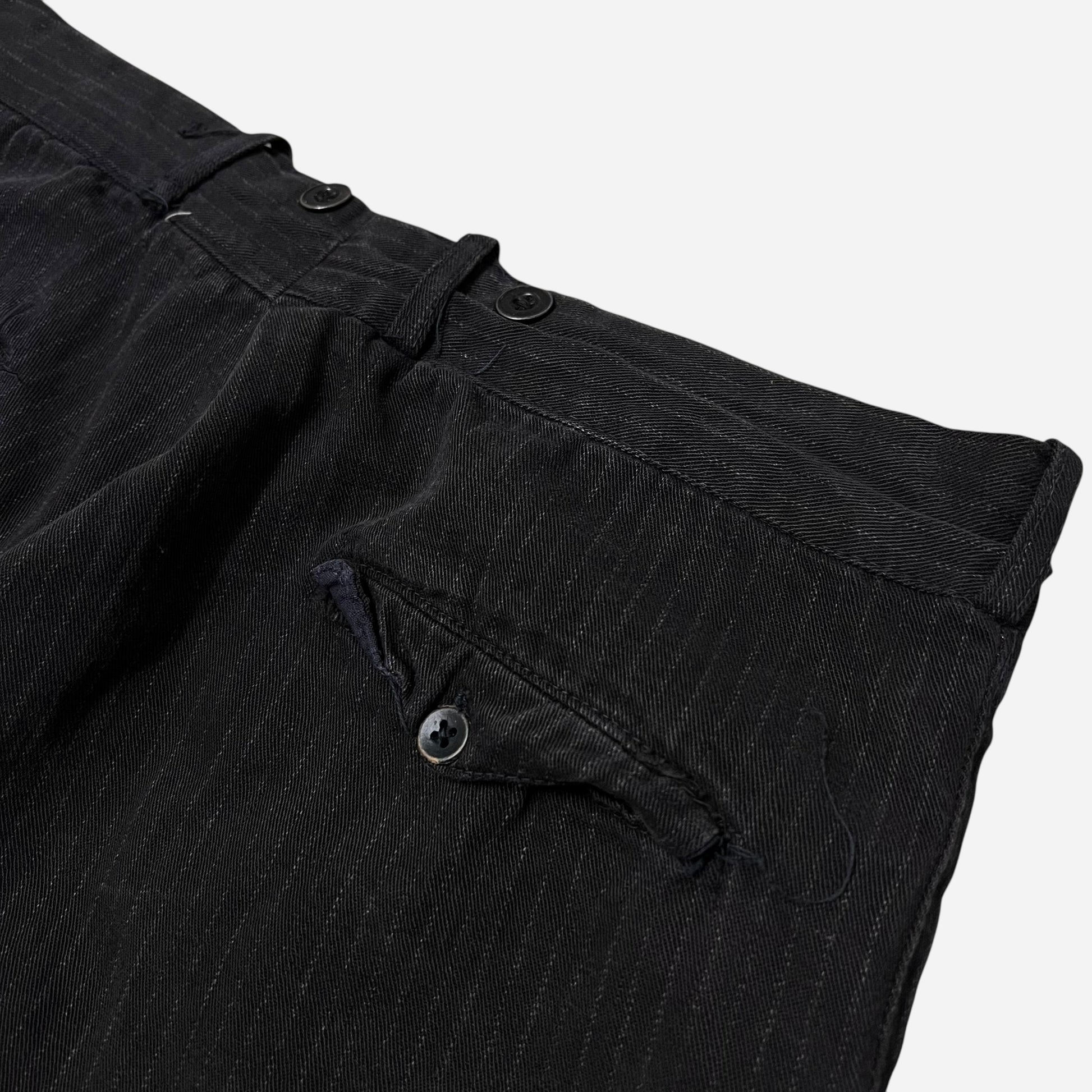 1930s Black heavy cotton button fly striped work pants (33w)