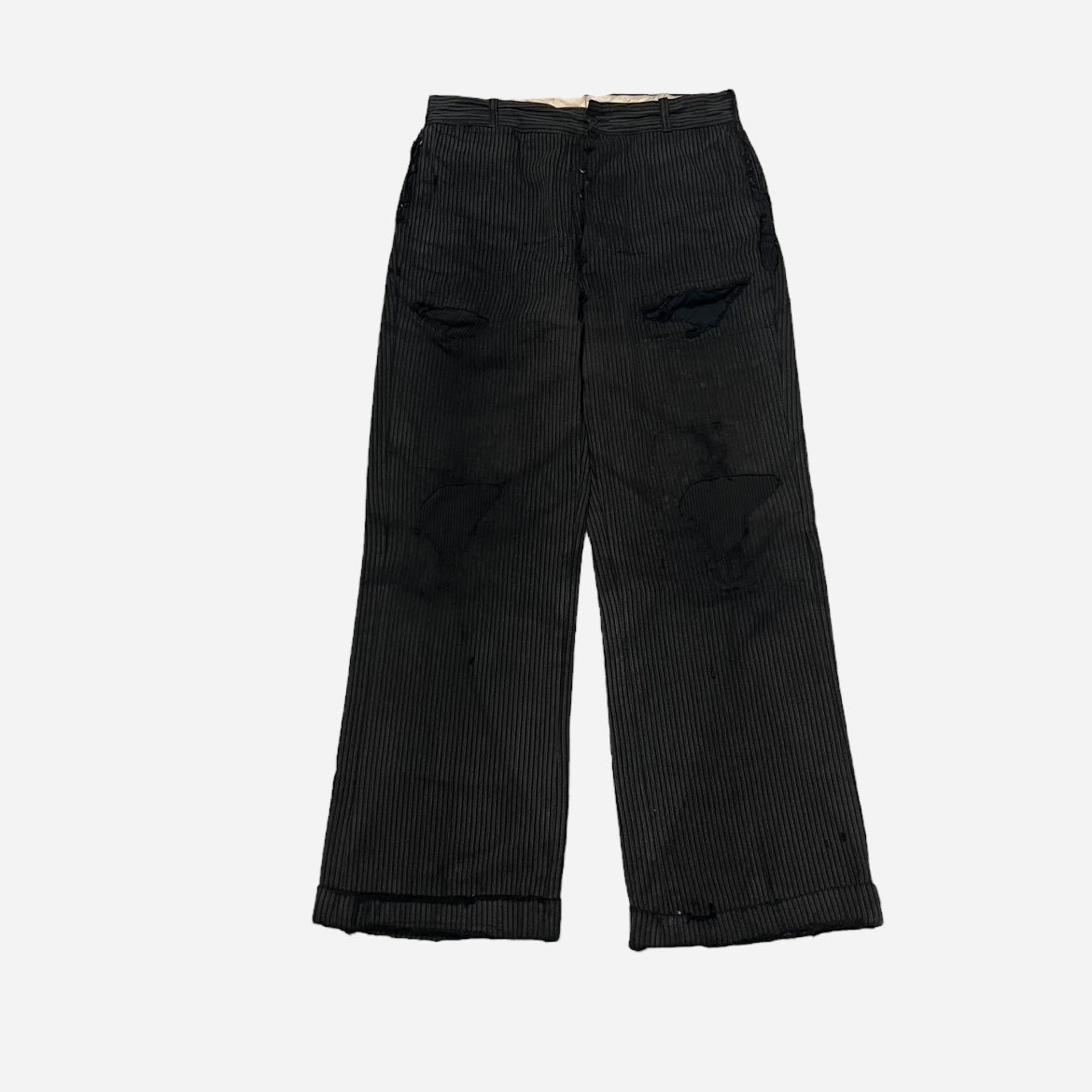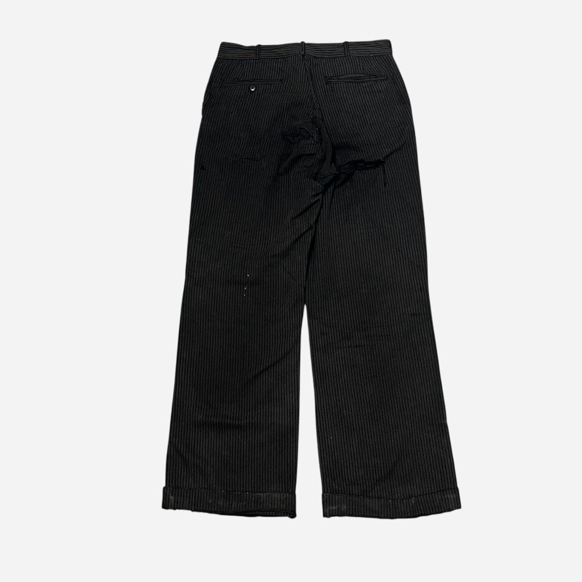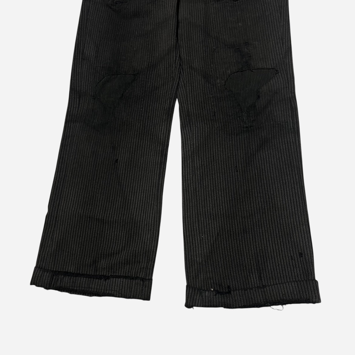1930s Black striped salt & pepper button fly heavily repaired pants (32w)