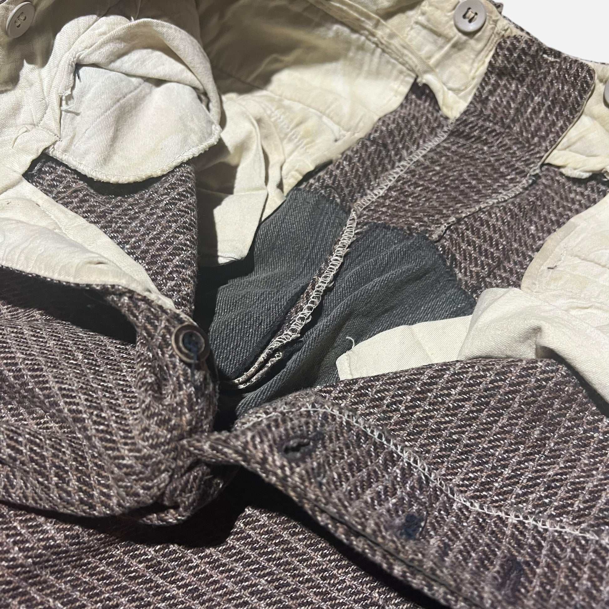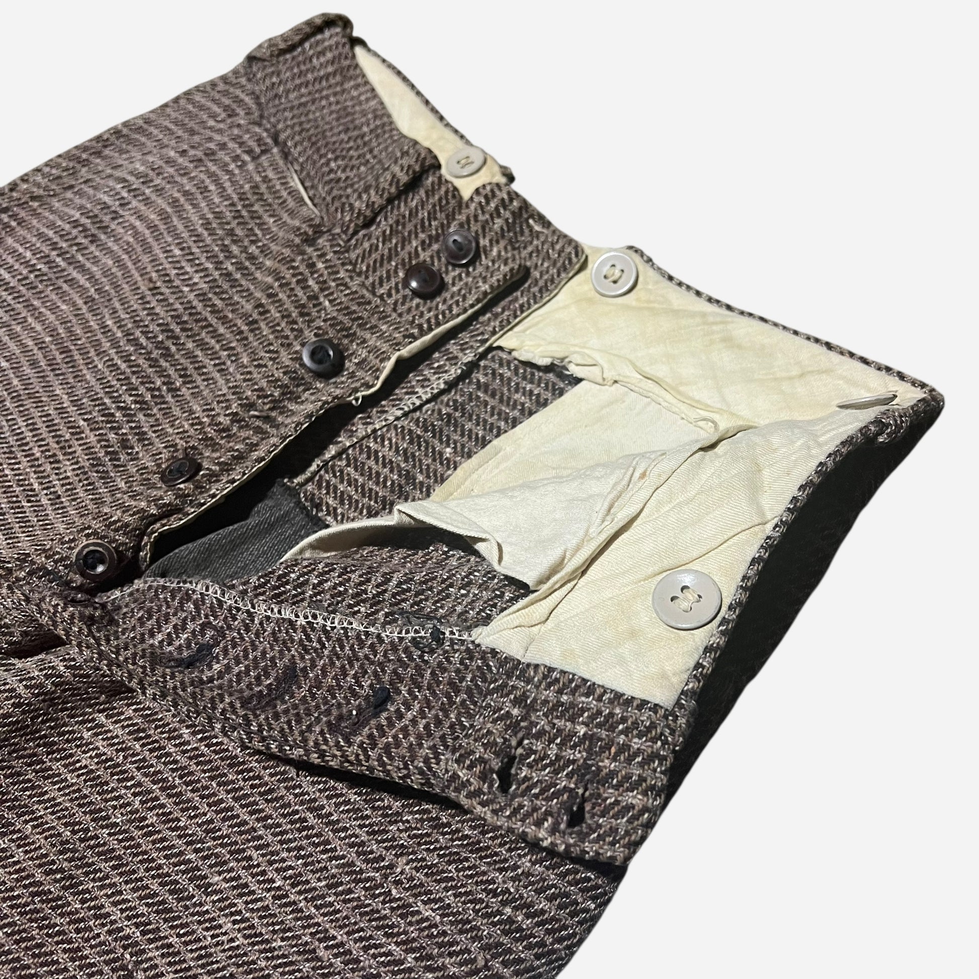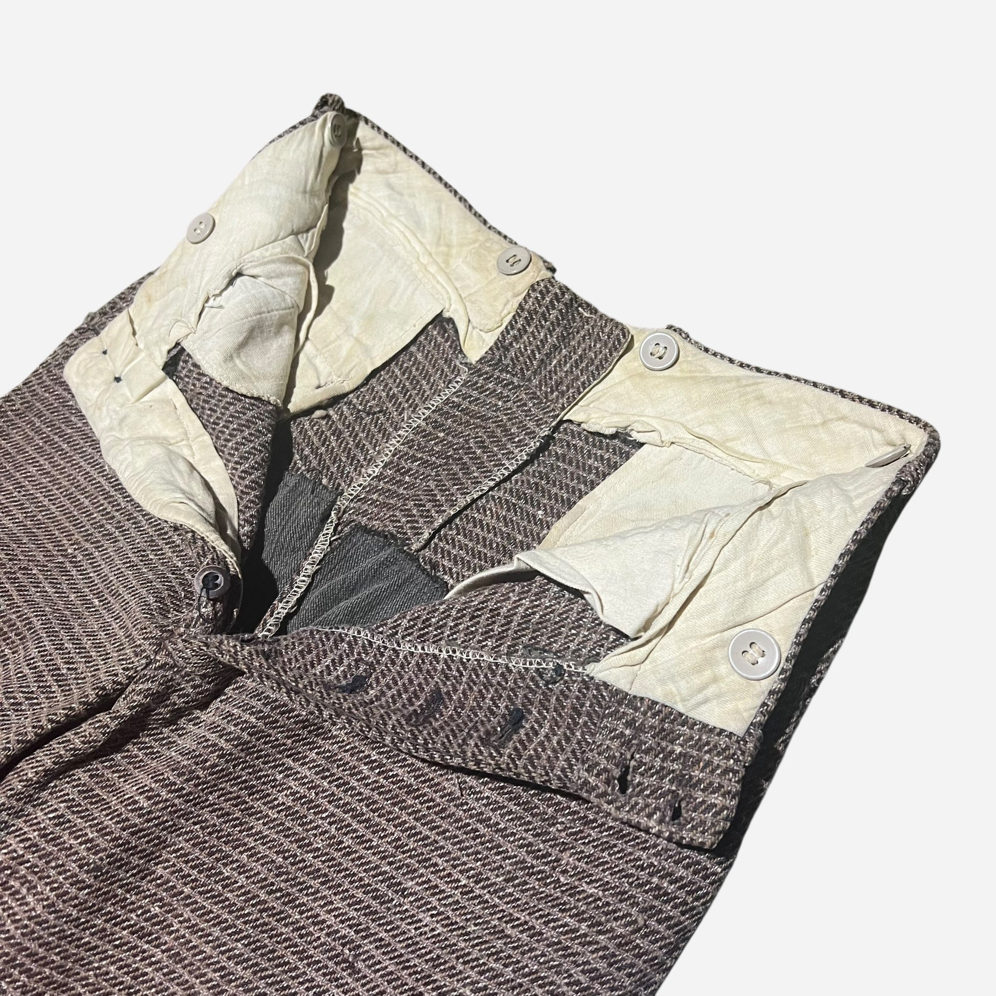 1930s Brown pattern cotton/wool blend double button pants (28w)