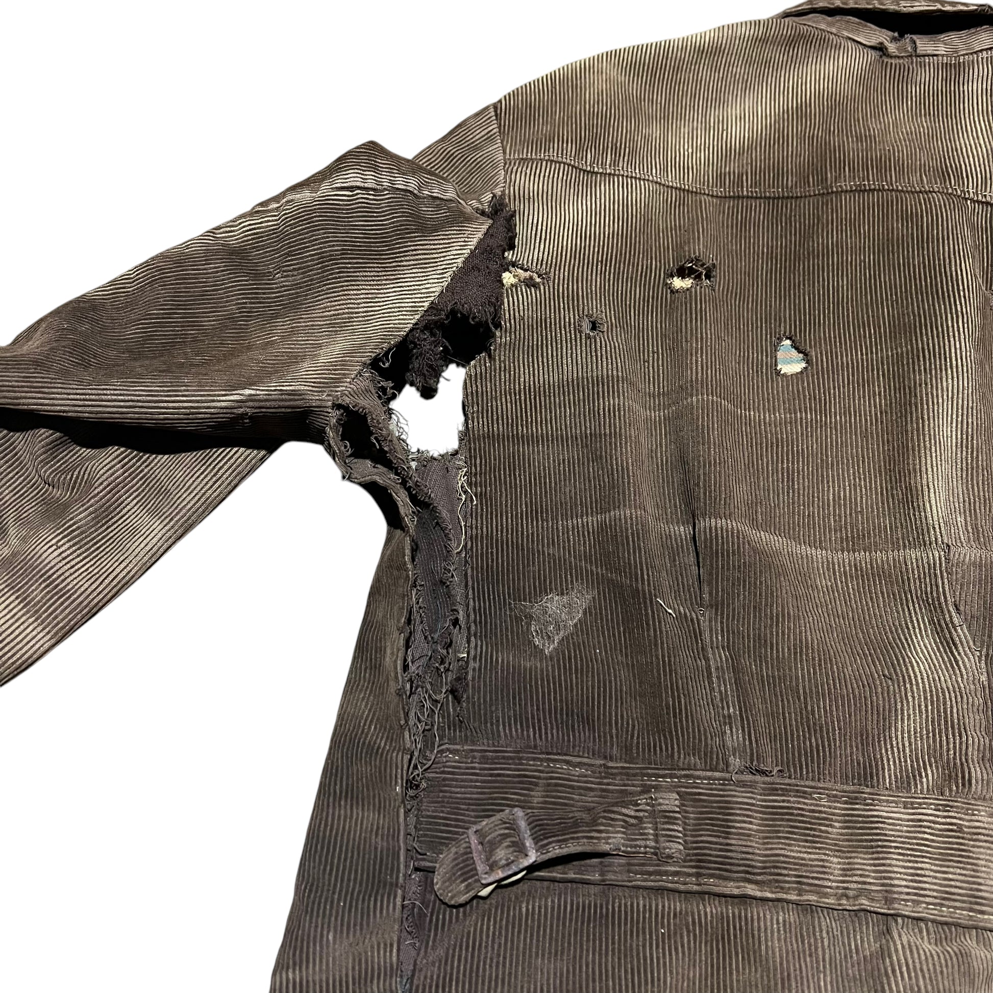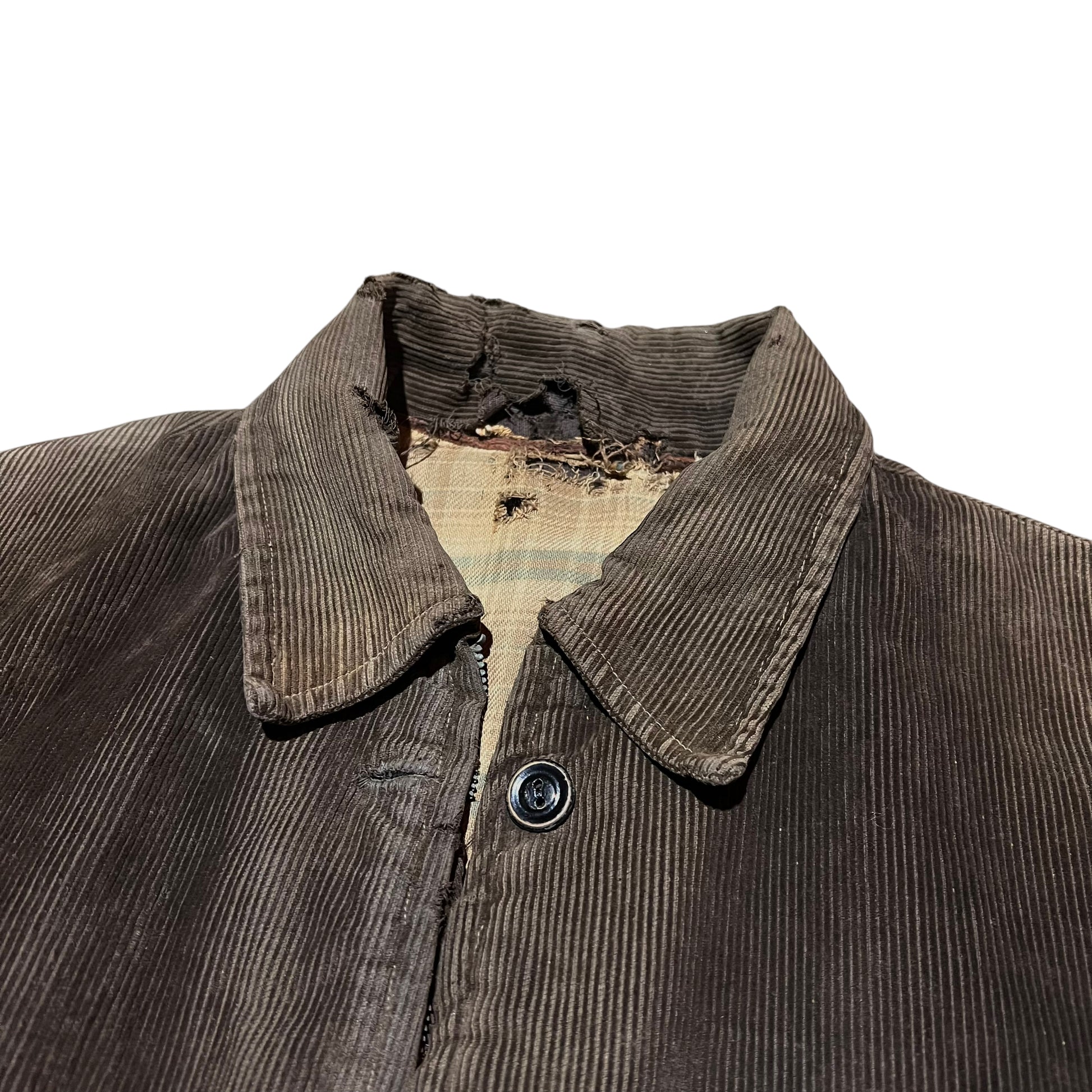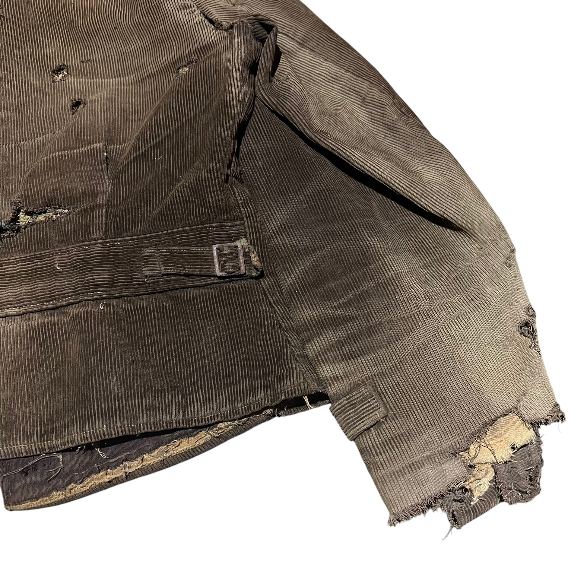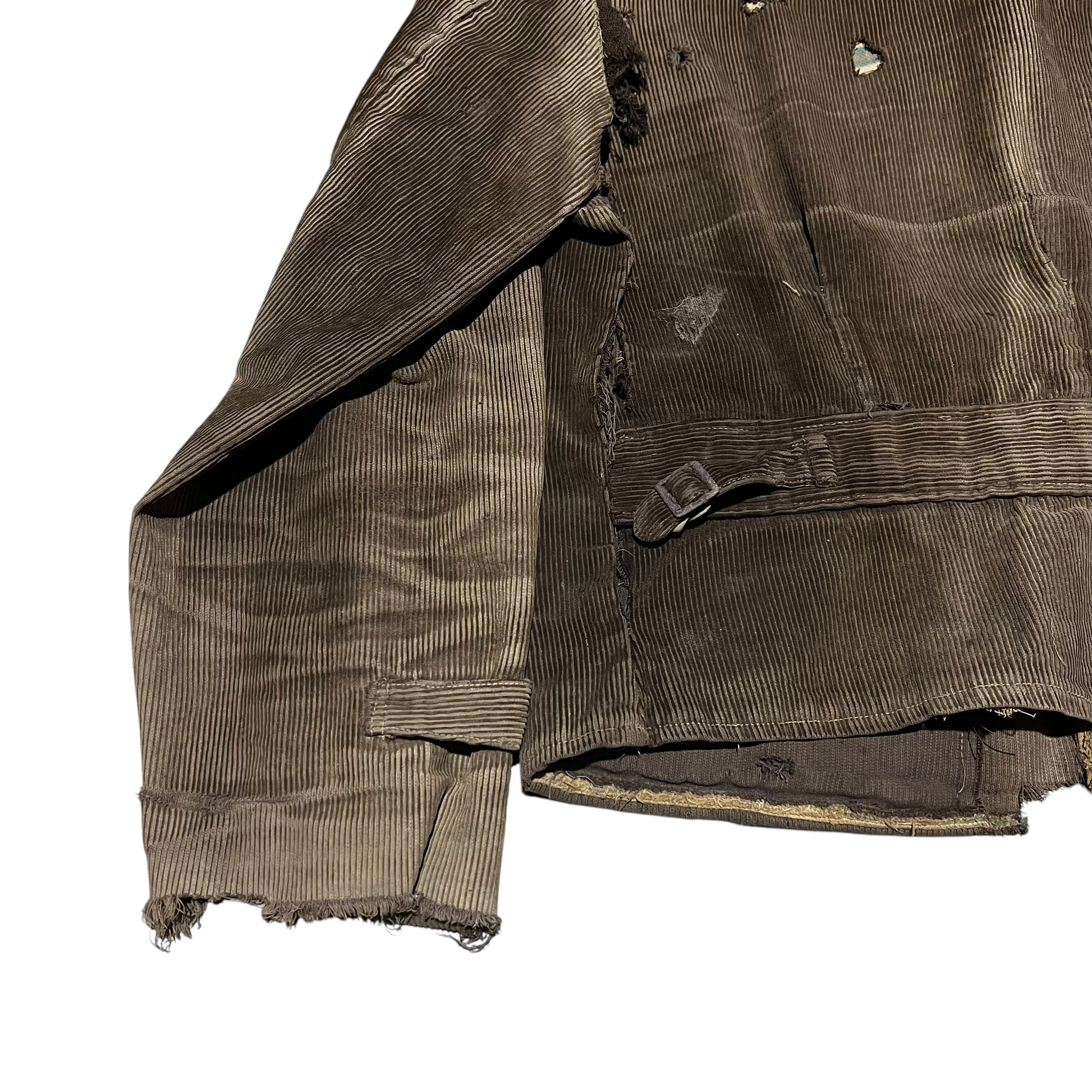 1930s Brown sun faded distressed corduroy half belt work jacket (M)