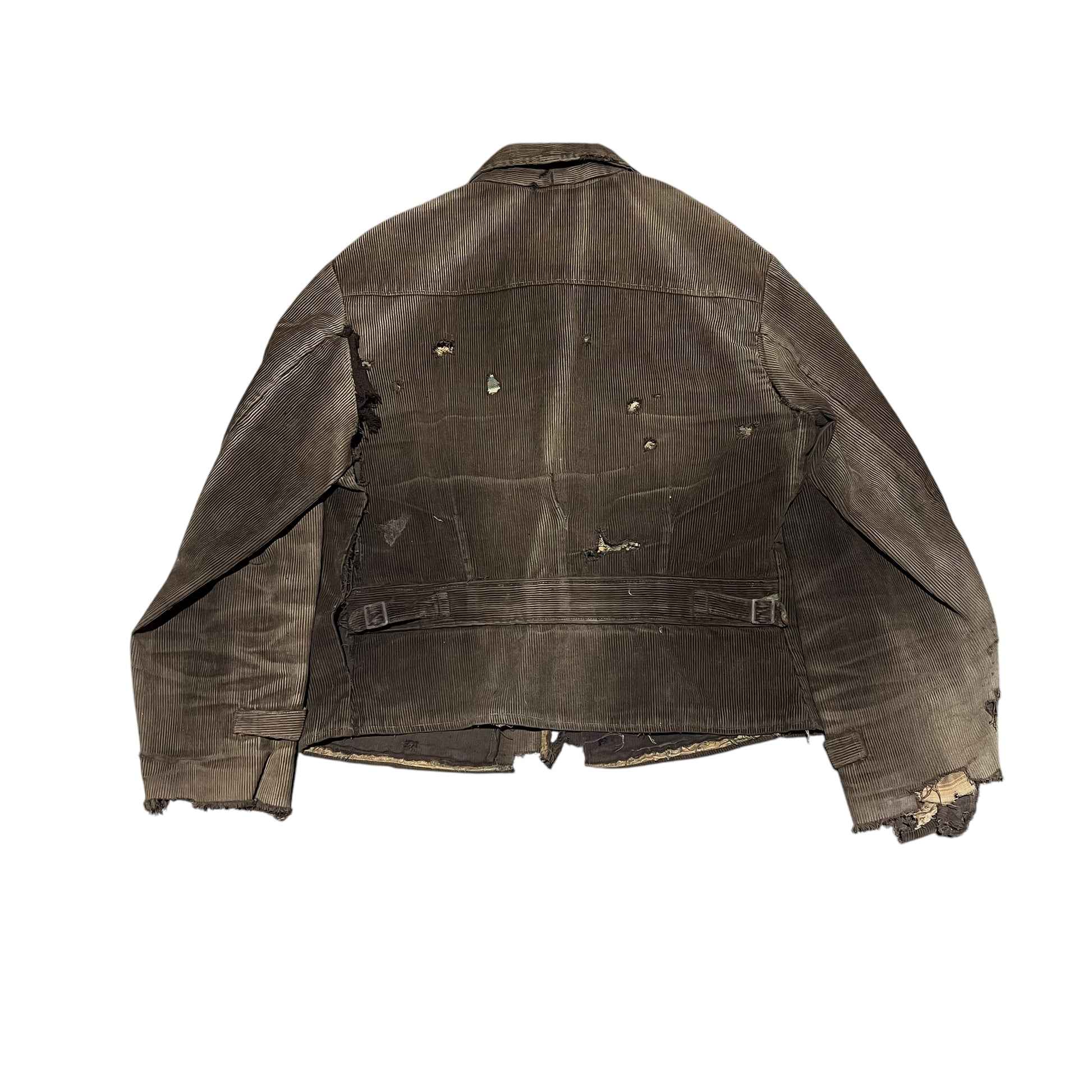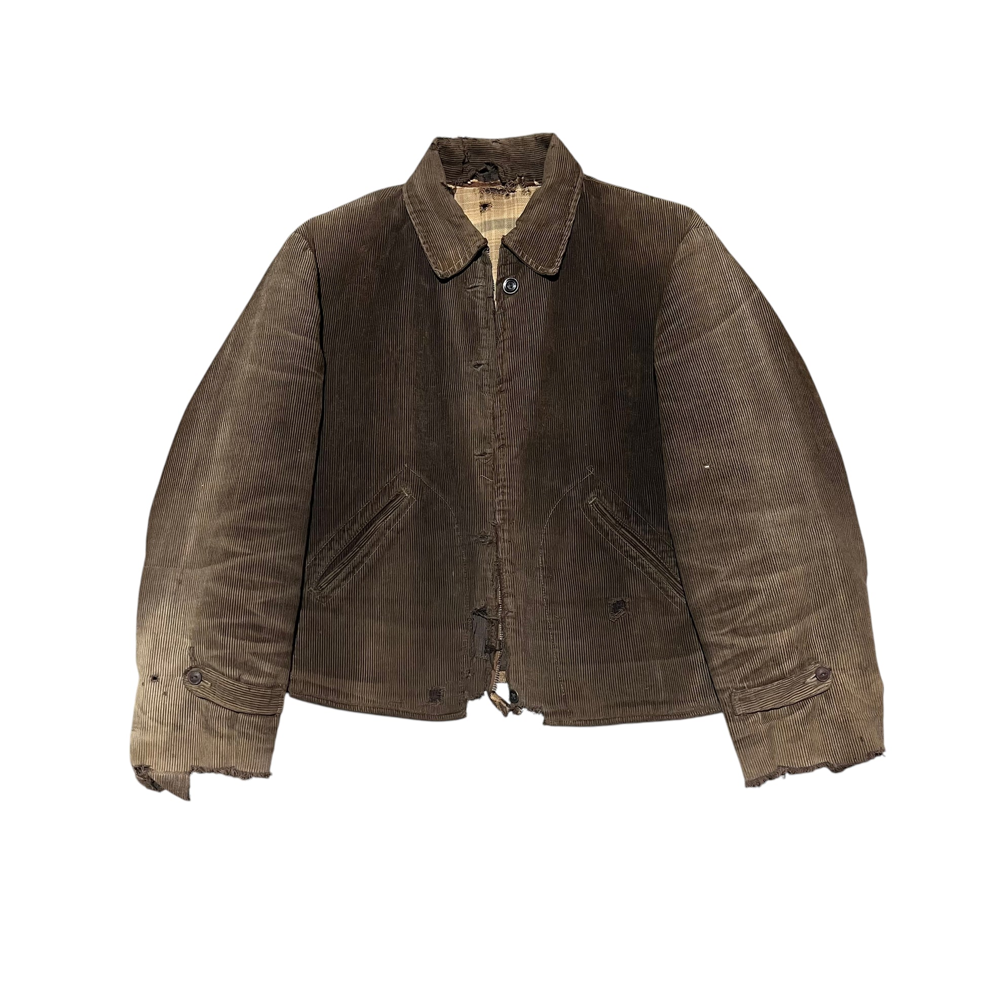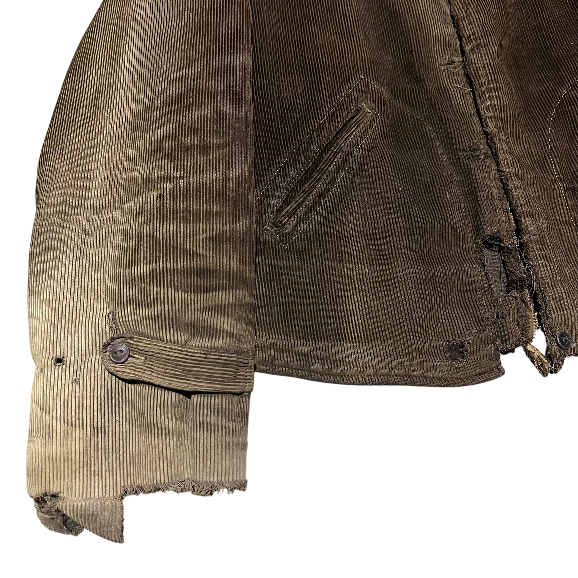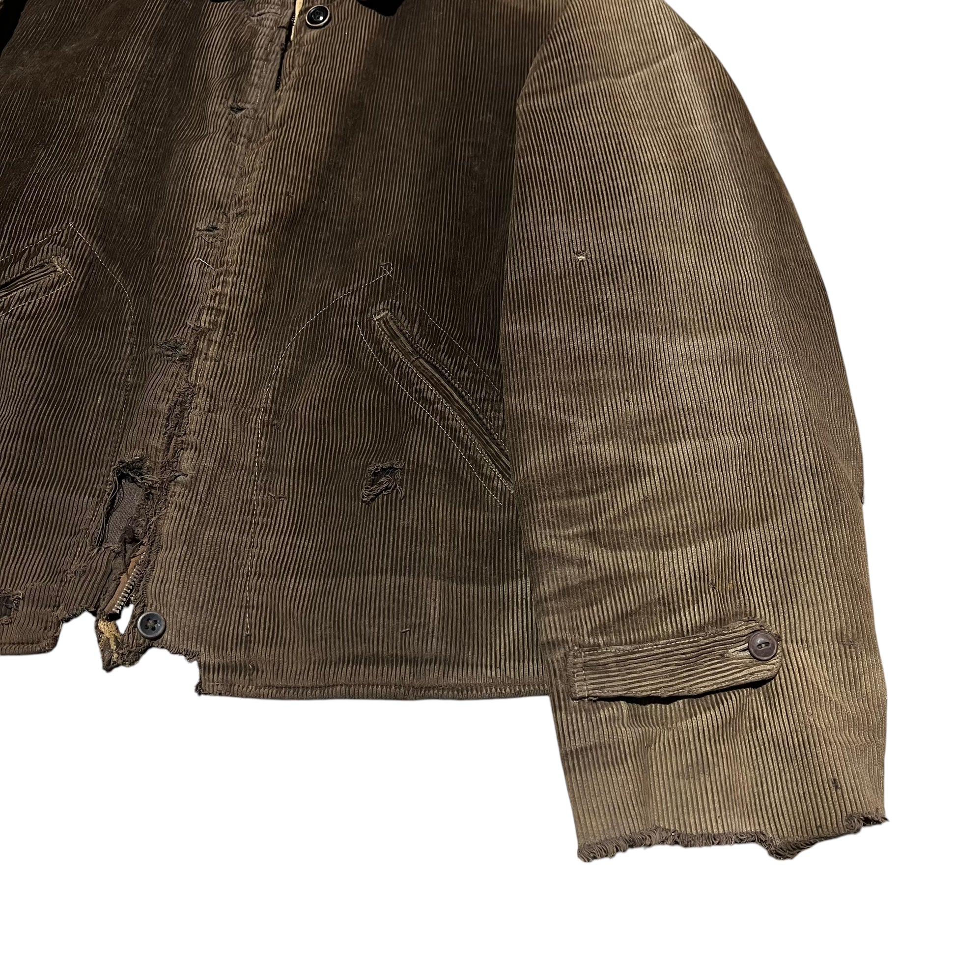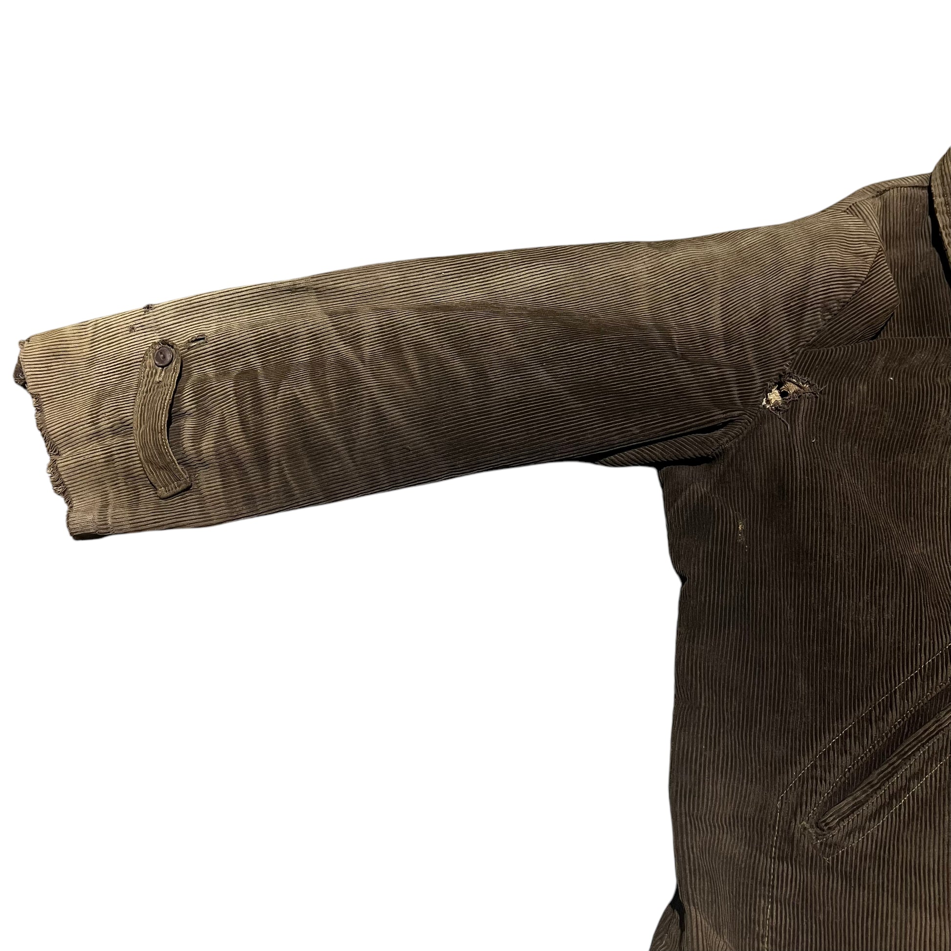 1930s Brown sun faded distressed corduroy half belt work jacket (M)