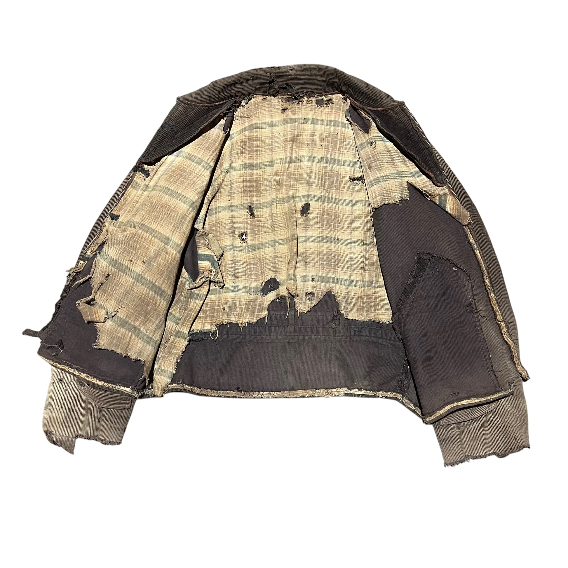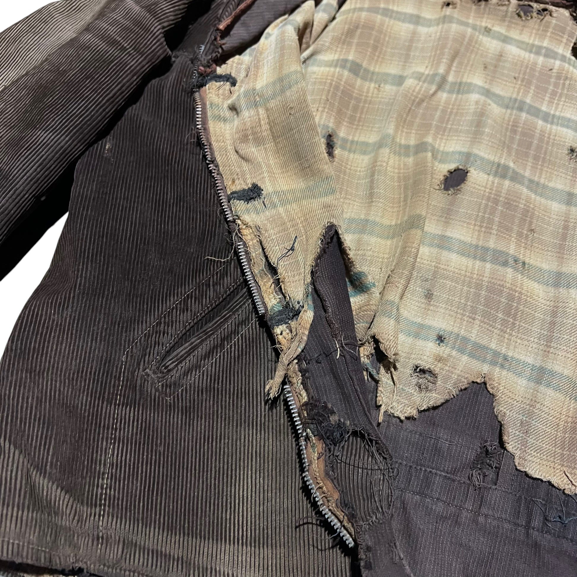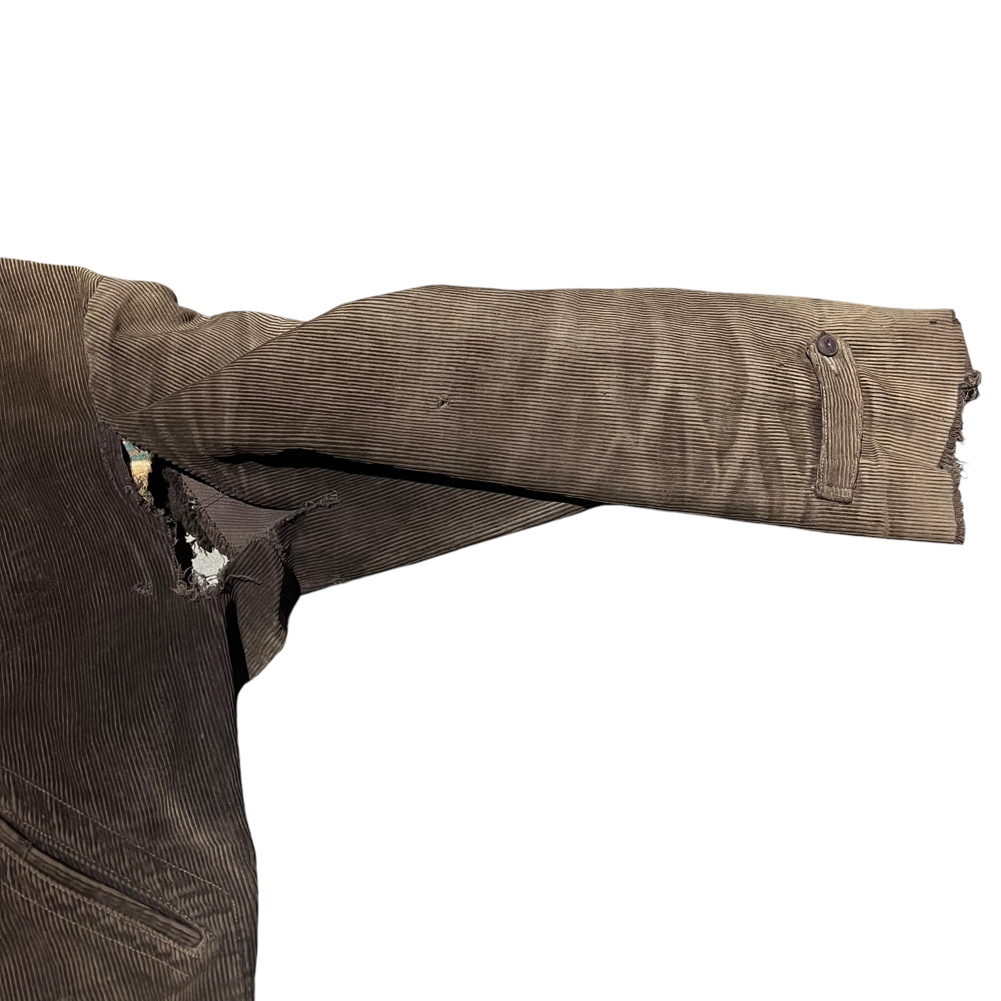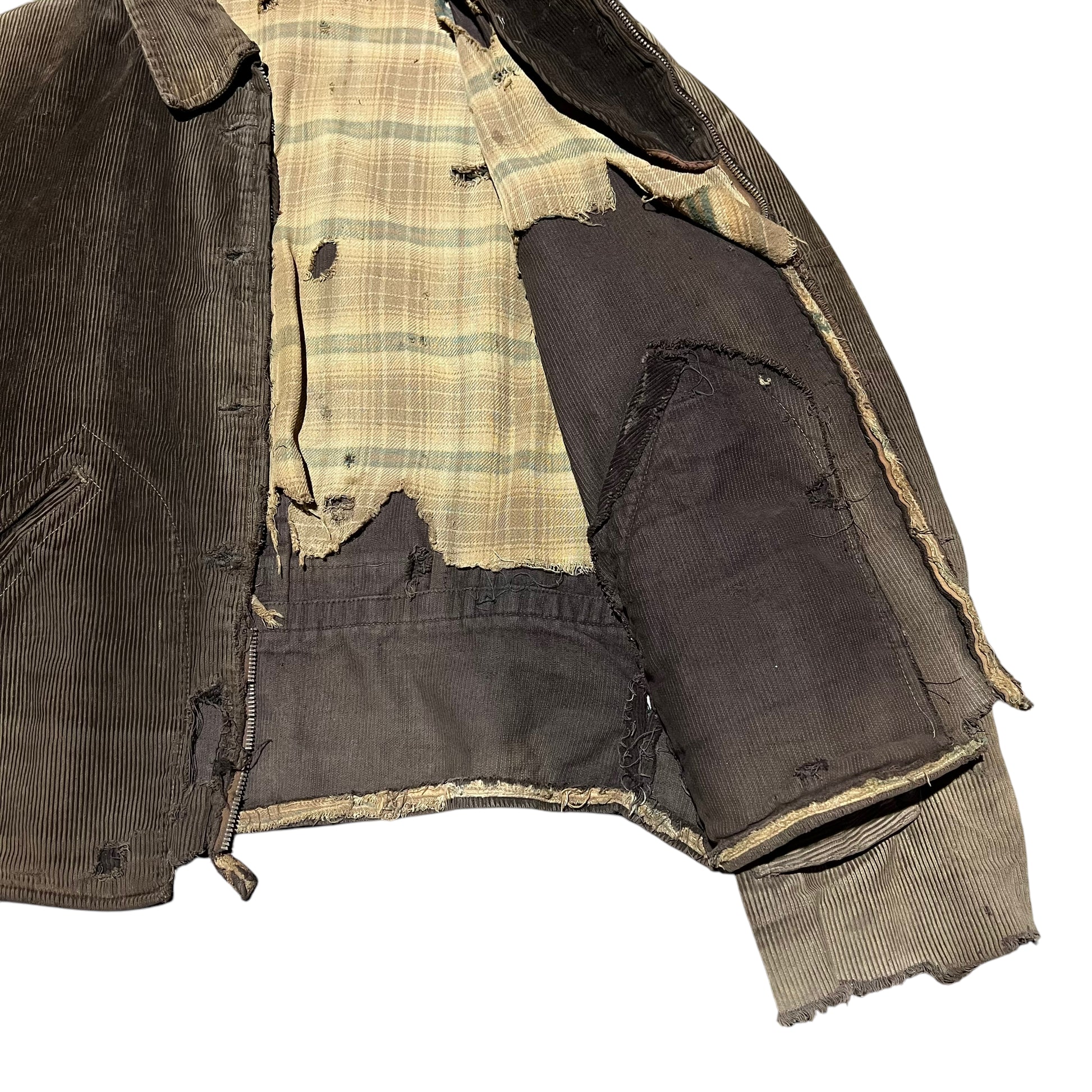 1930s Brown sun faded distressed corduroy half belt work jacket (M)