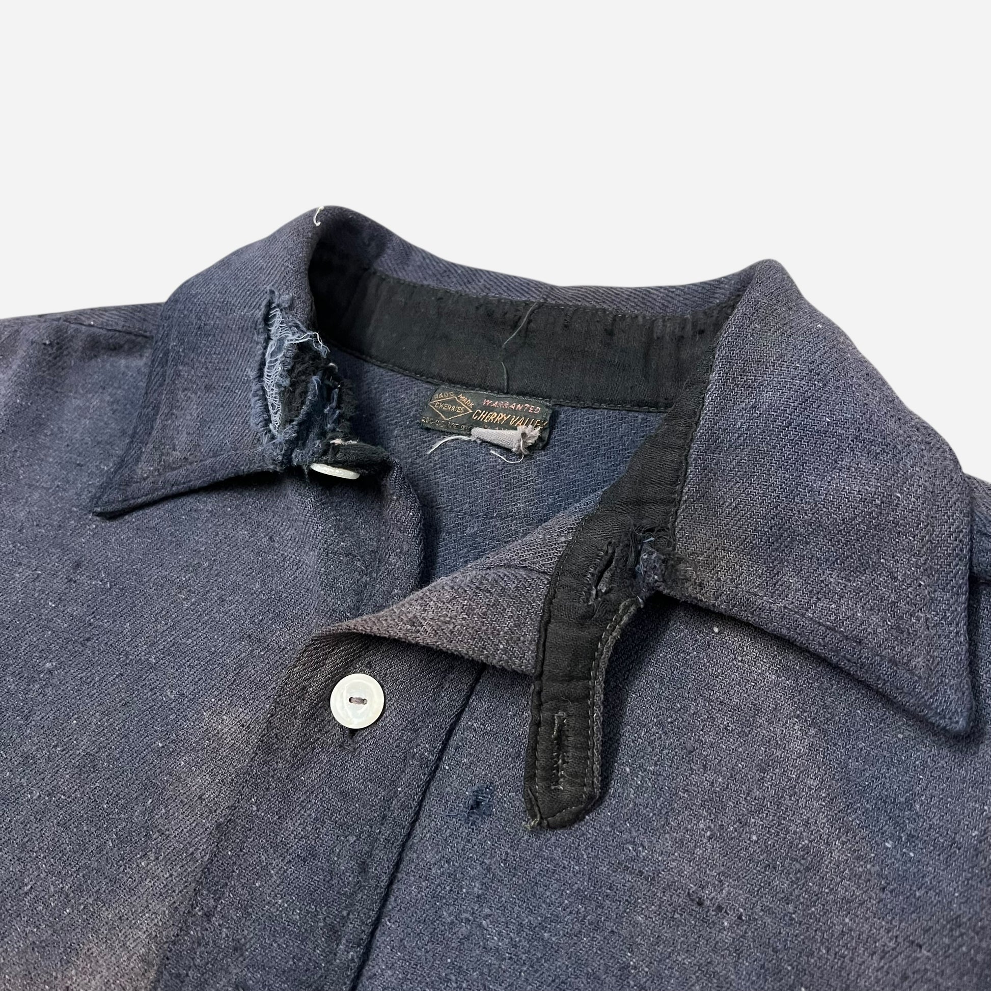 1930s Cherry Valley purple/navy cotton chinstrap pullover work shirt (M/L)