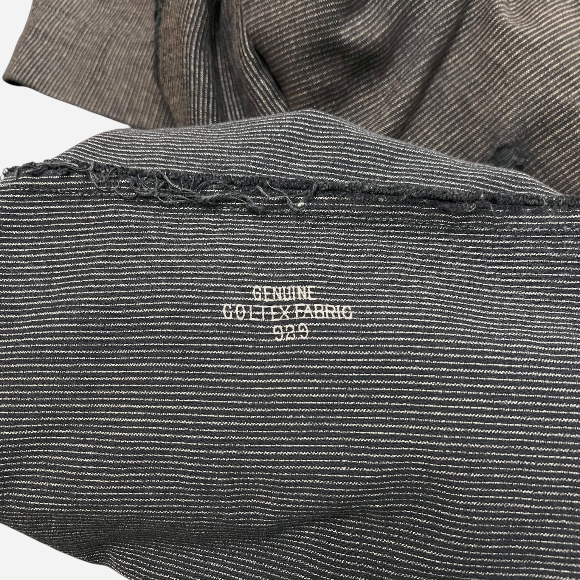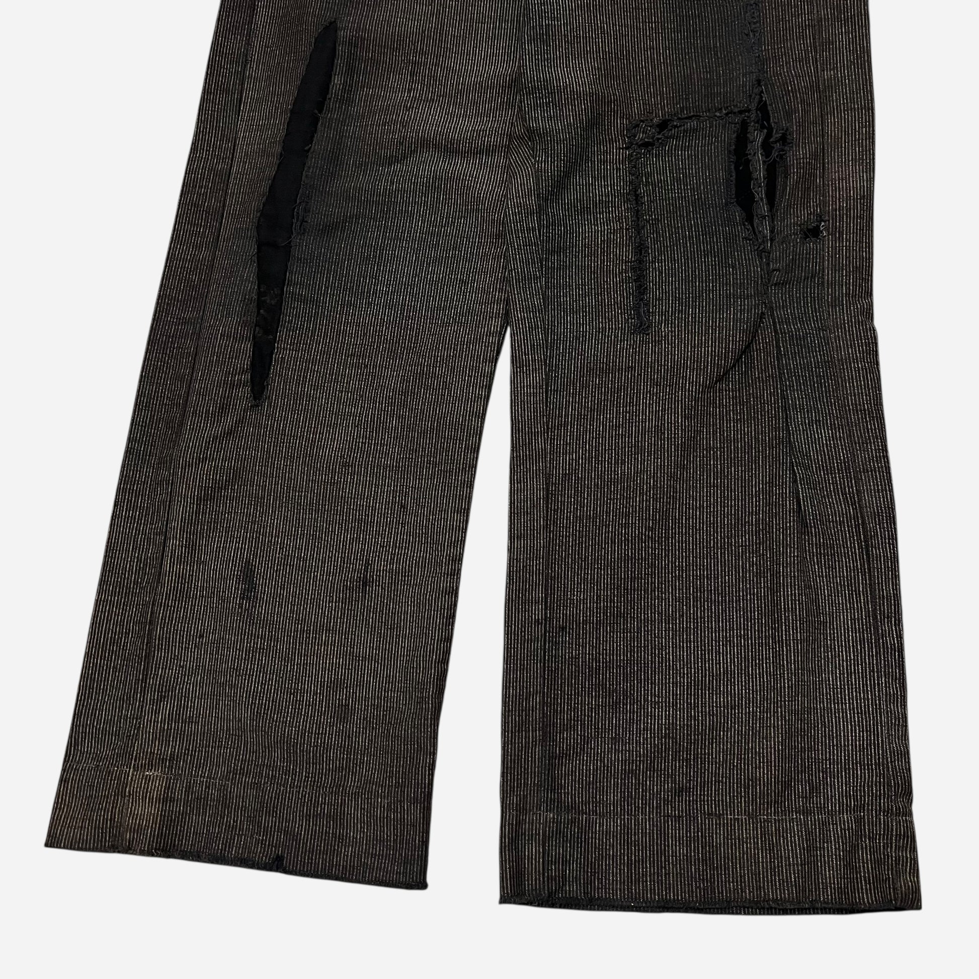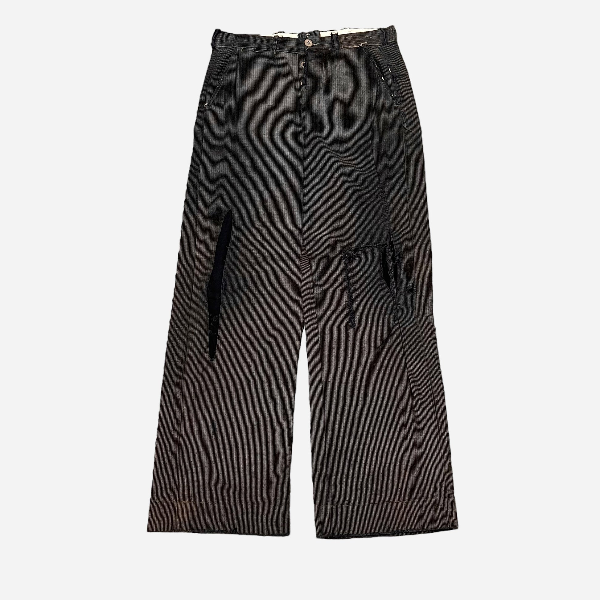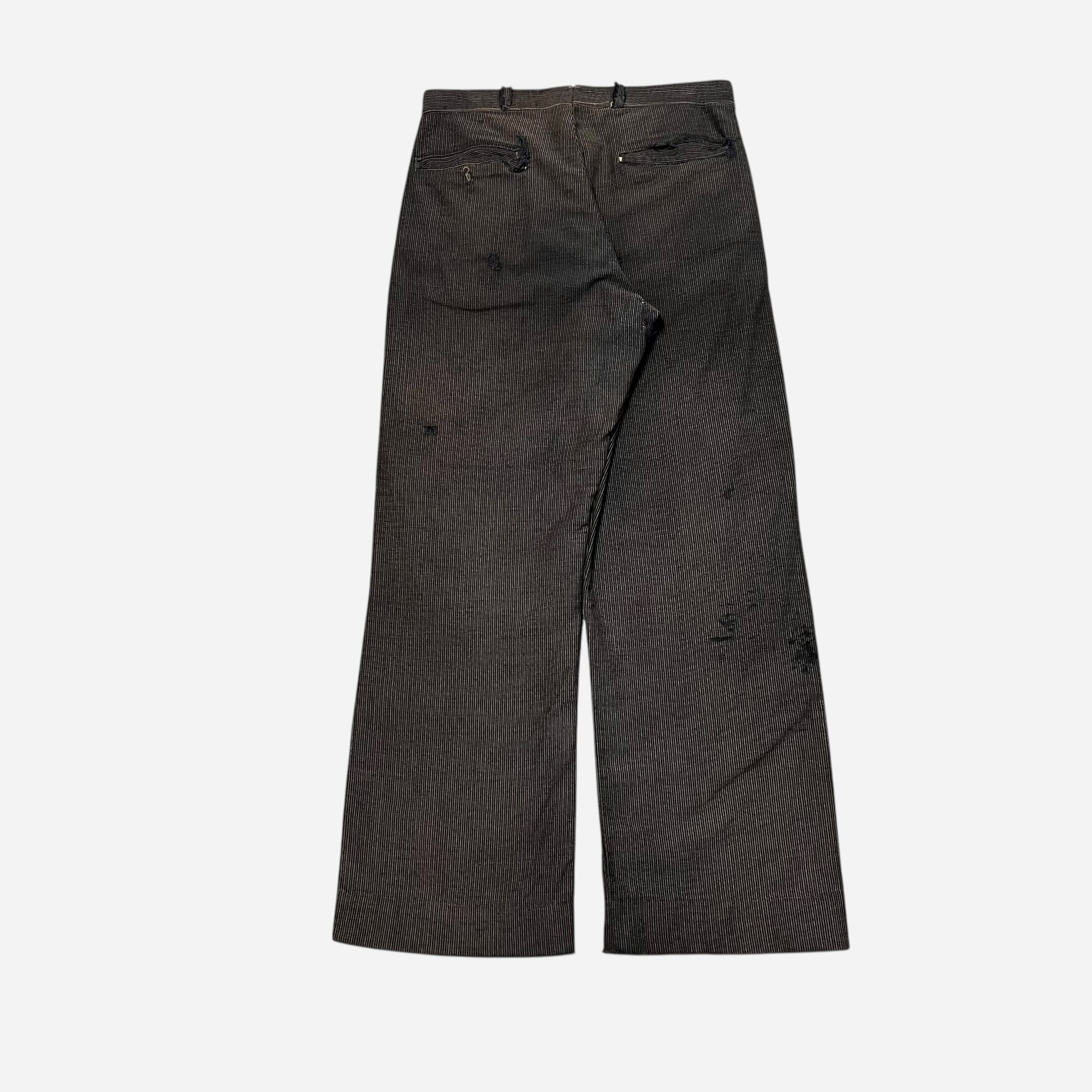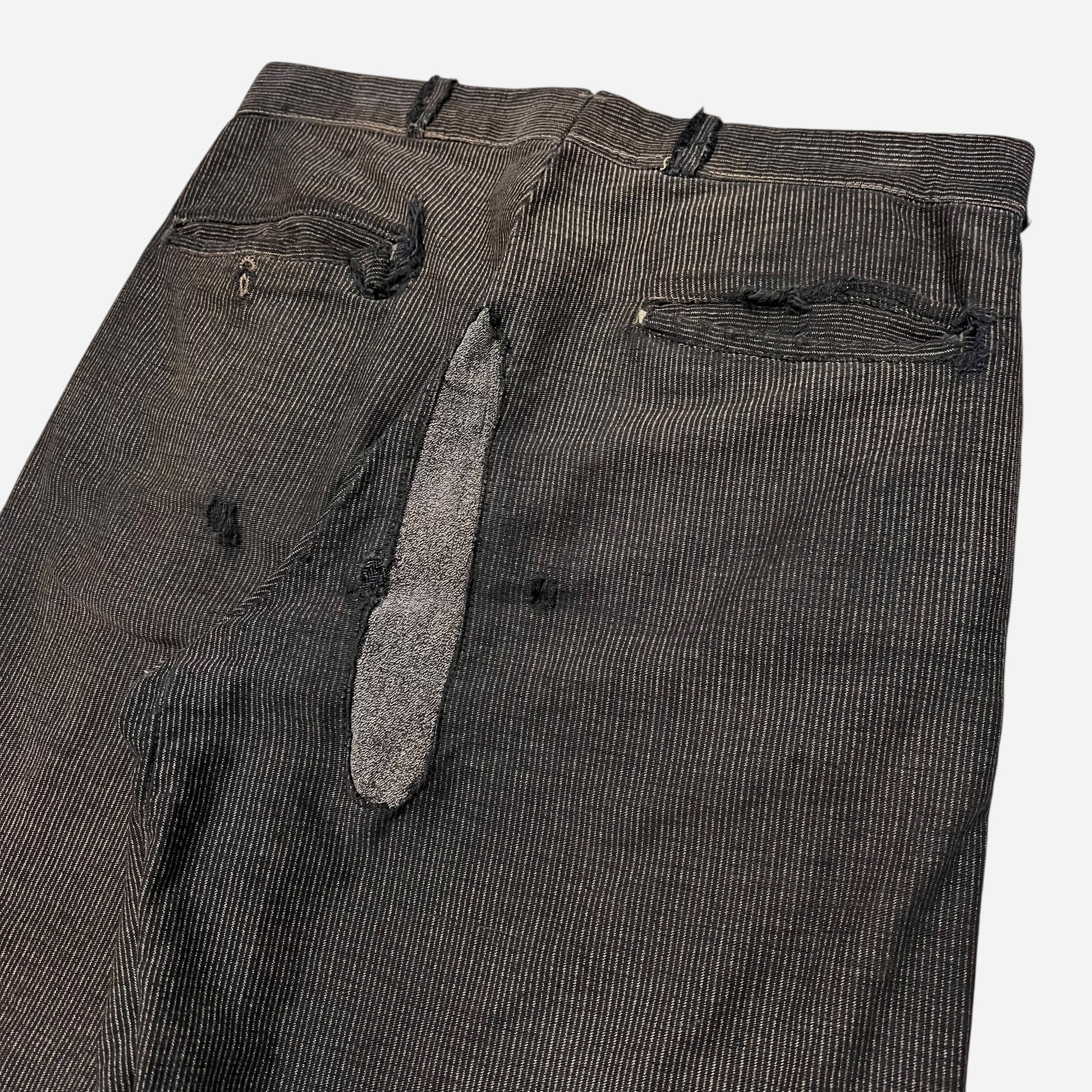 1930s Coltex striped cotton salt & pepper wood button fly repaired work pants (30w)
