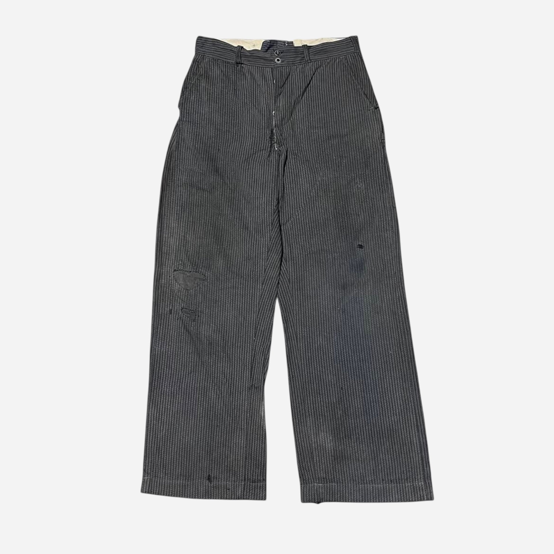 1930s Cone Homeric striped salt and pepper cotton double button fly work pants (31w)