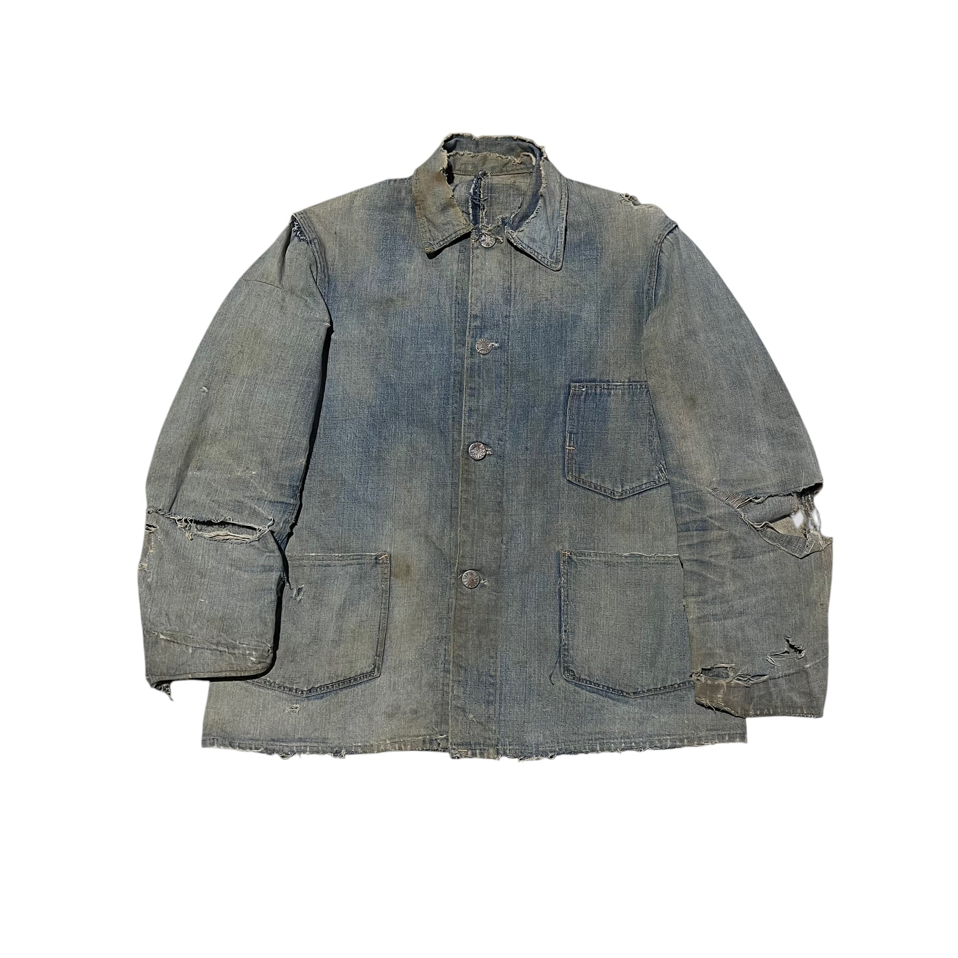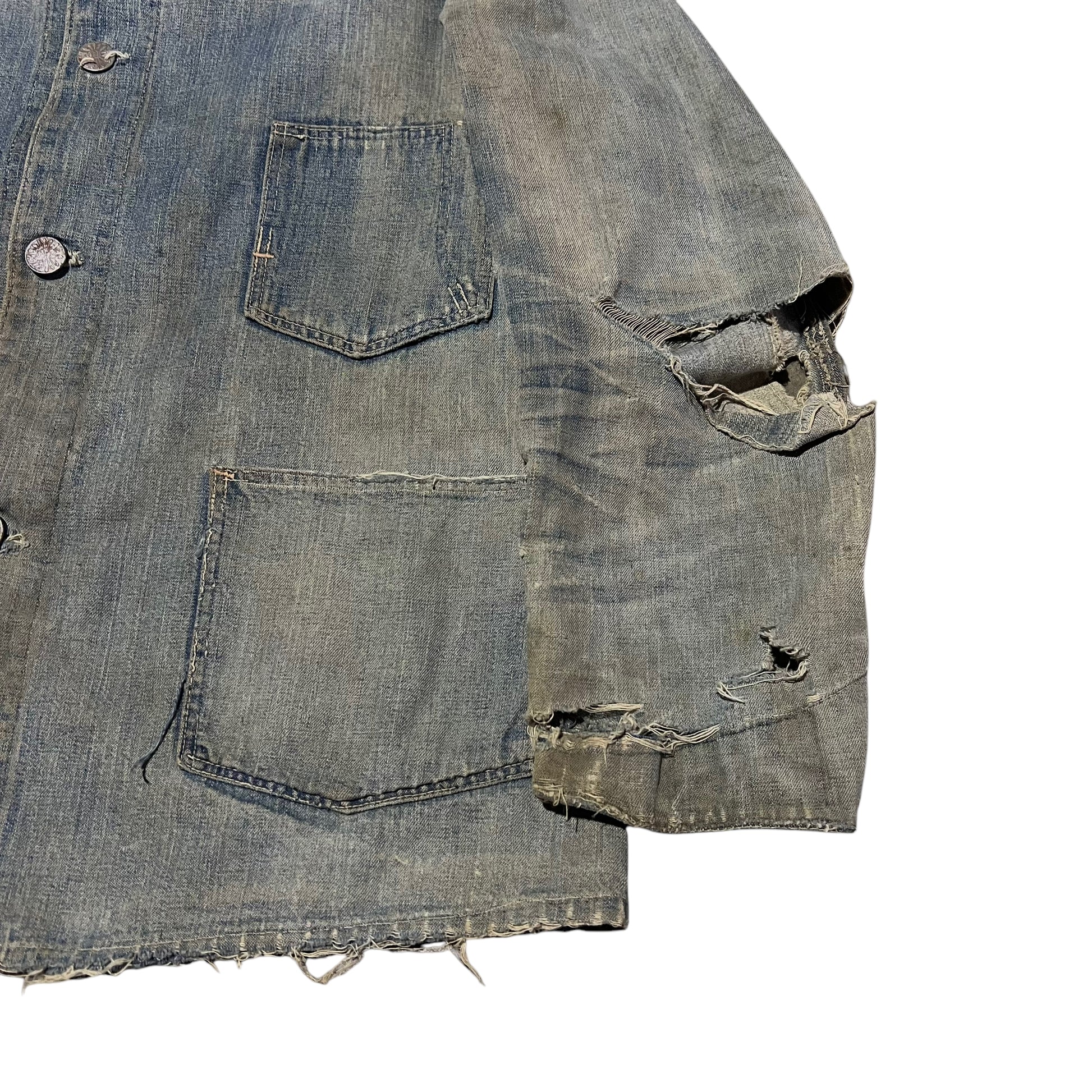 1930s Distressed Indian button denim chore jacket (S/M)