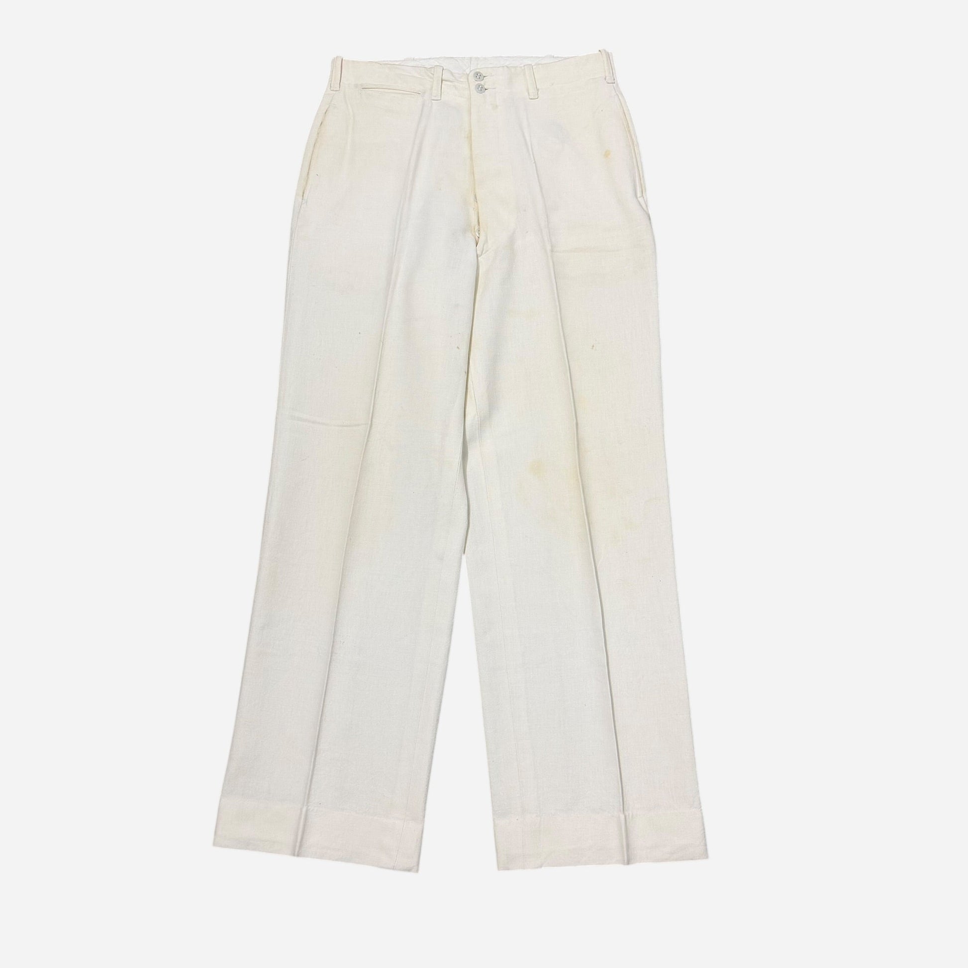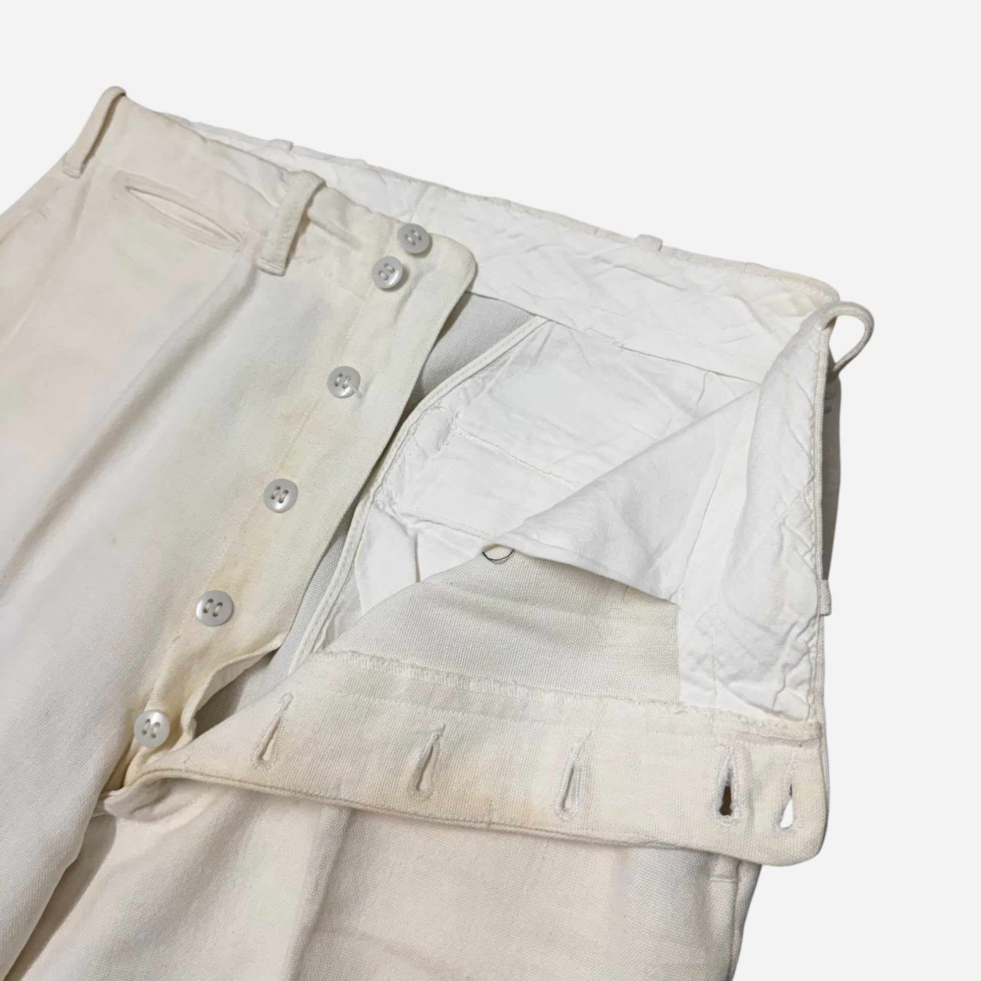 1930s Double button fly white cotton summer pants USN worn (30w)
