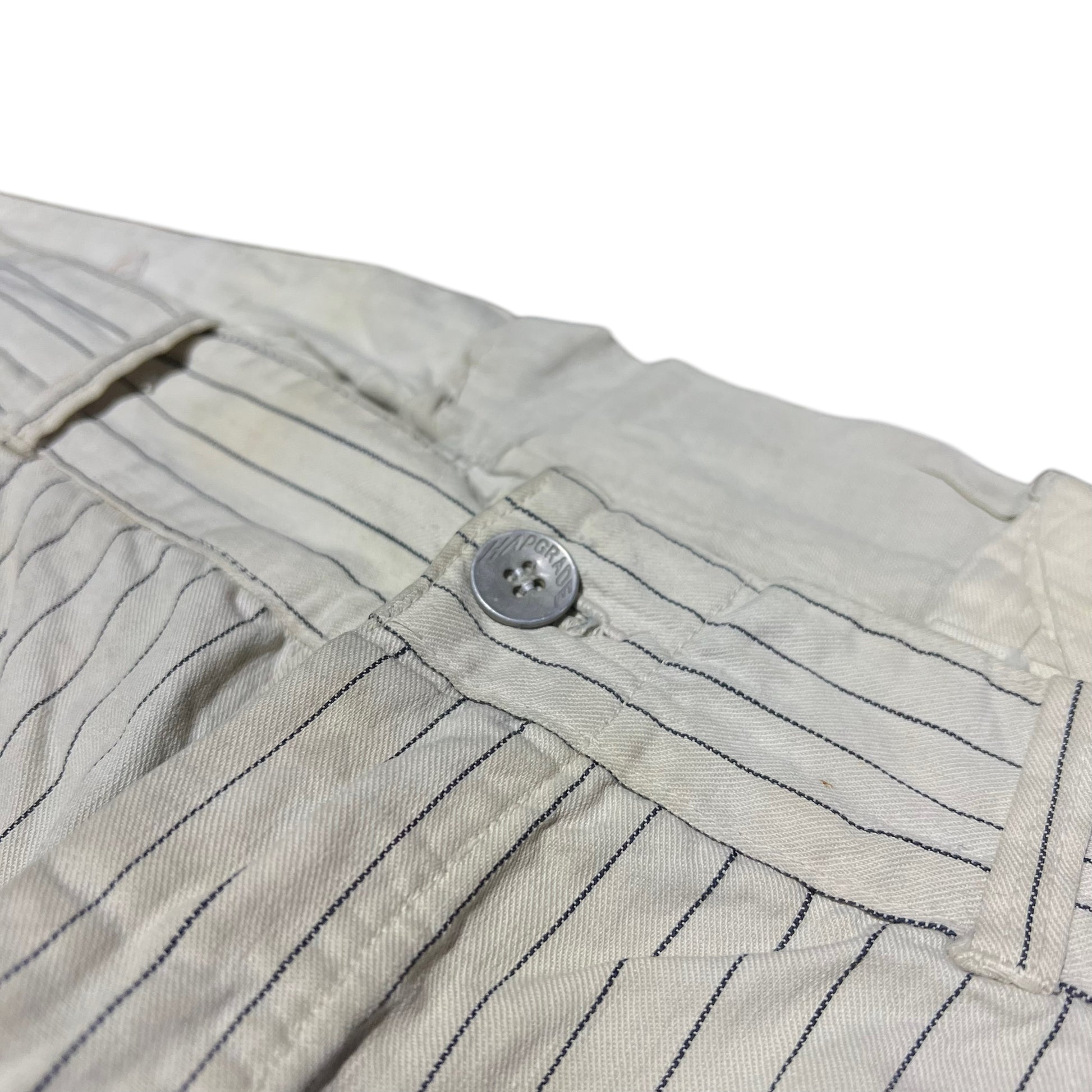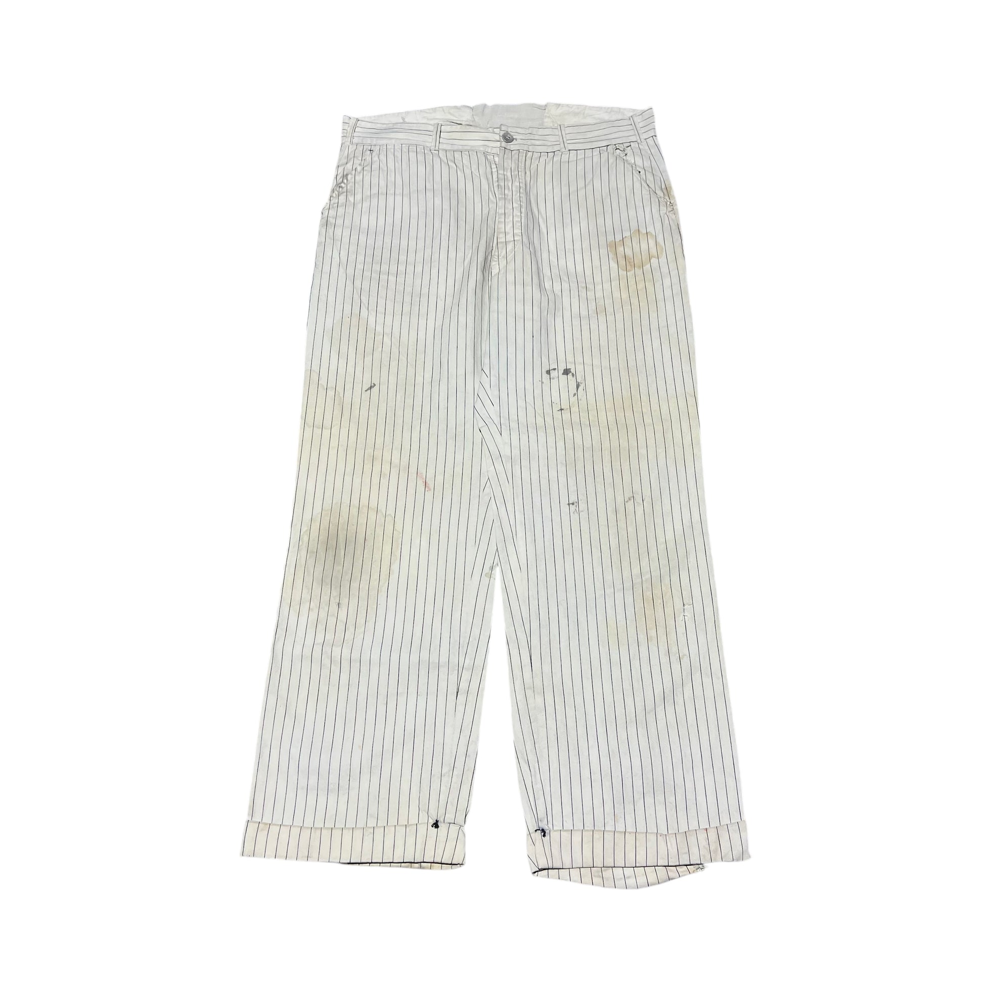 1930s Hapgrade metal button fly white striped work pants (36w)