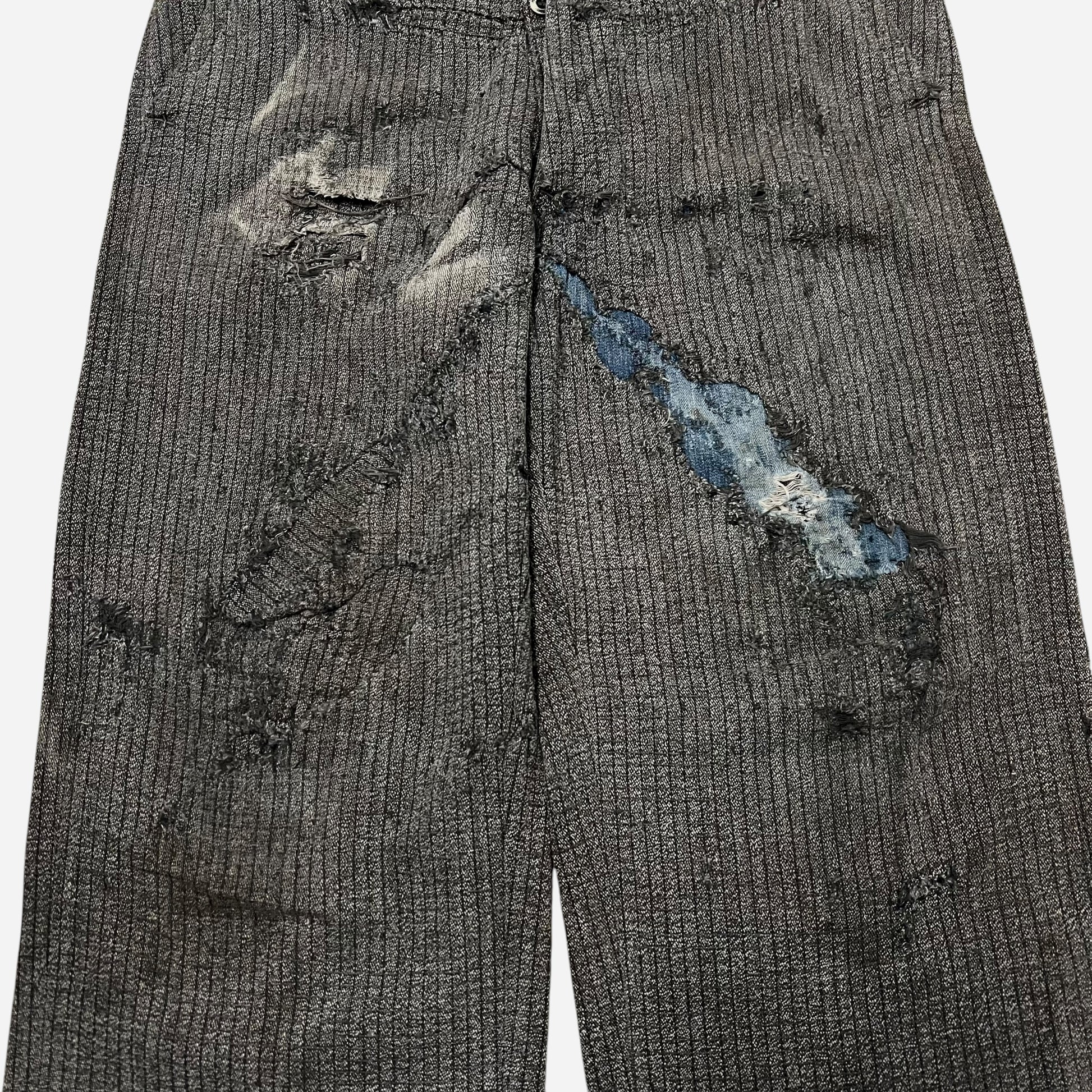1930s Heavy weave cotton grid pattern repaired pants (31w)