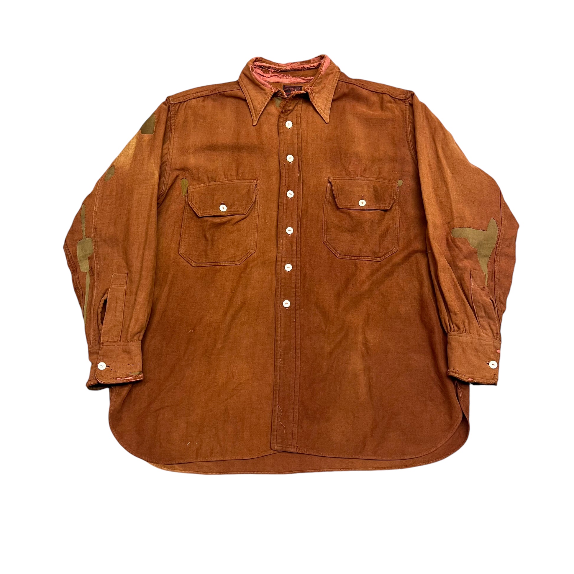 1930s J.C. Penney orange suede moleskin work shirt flannel (XL)