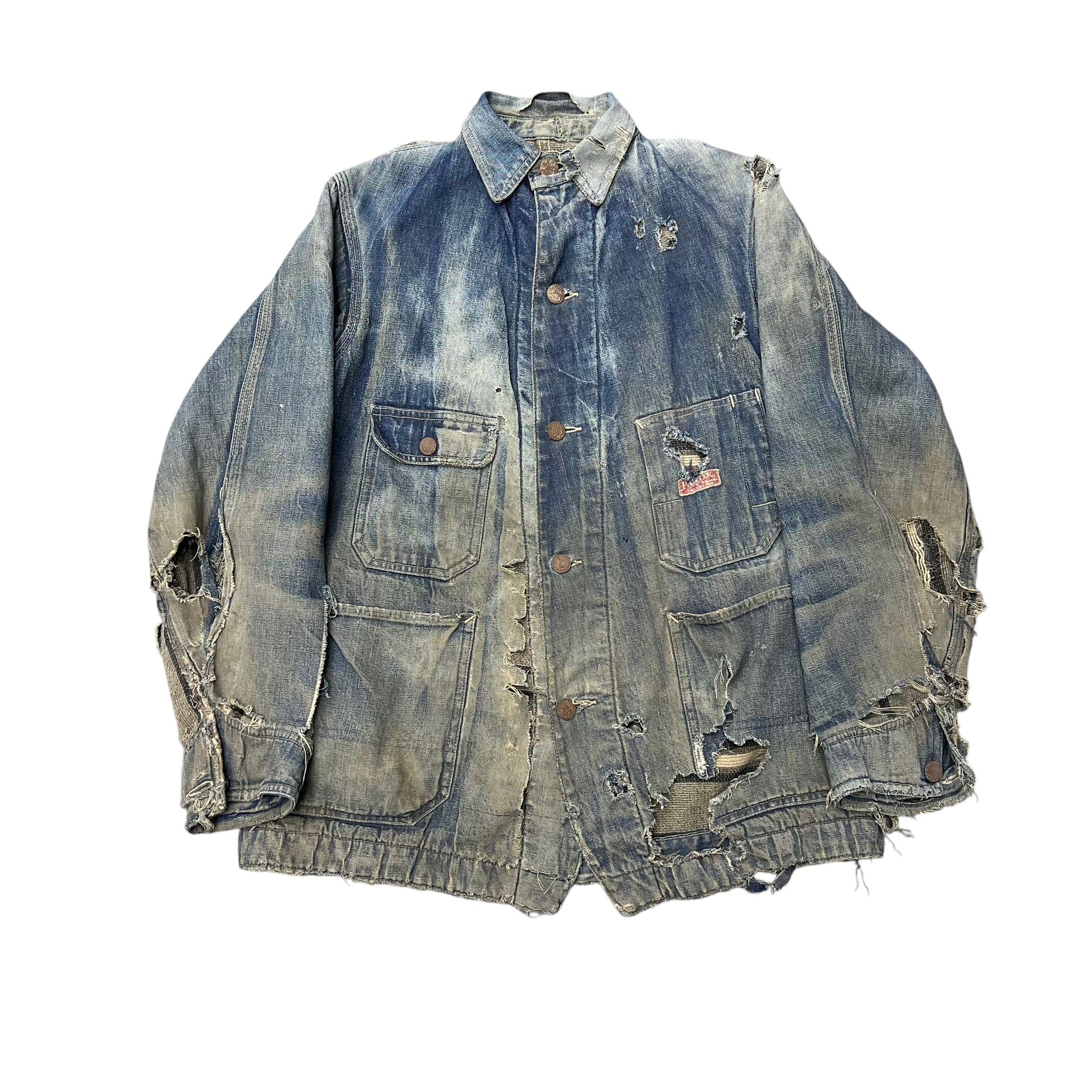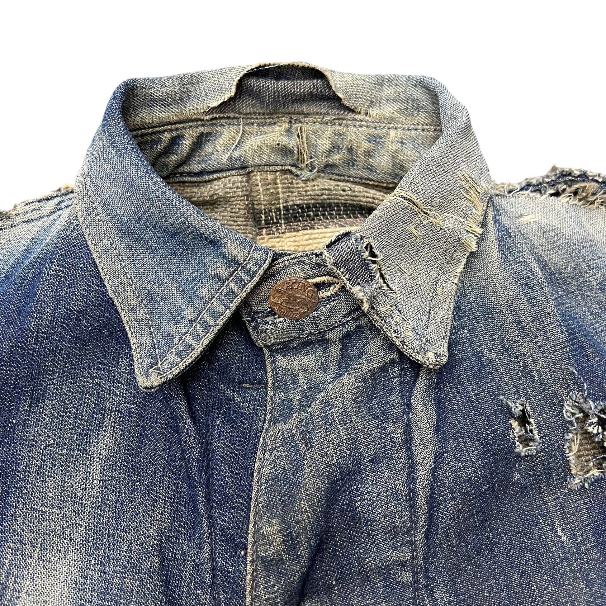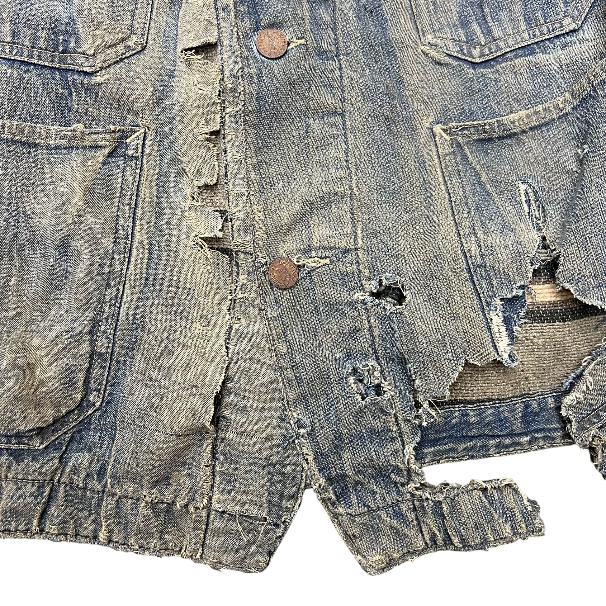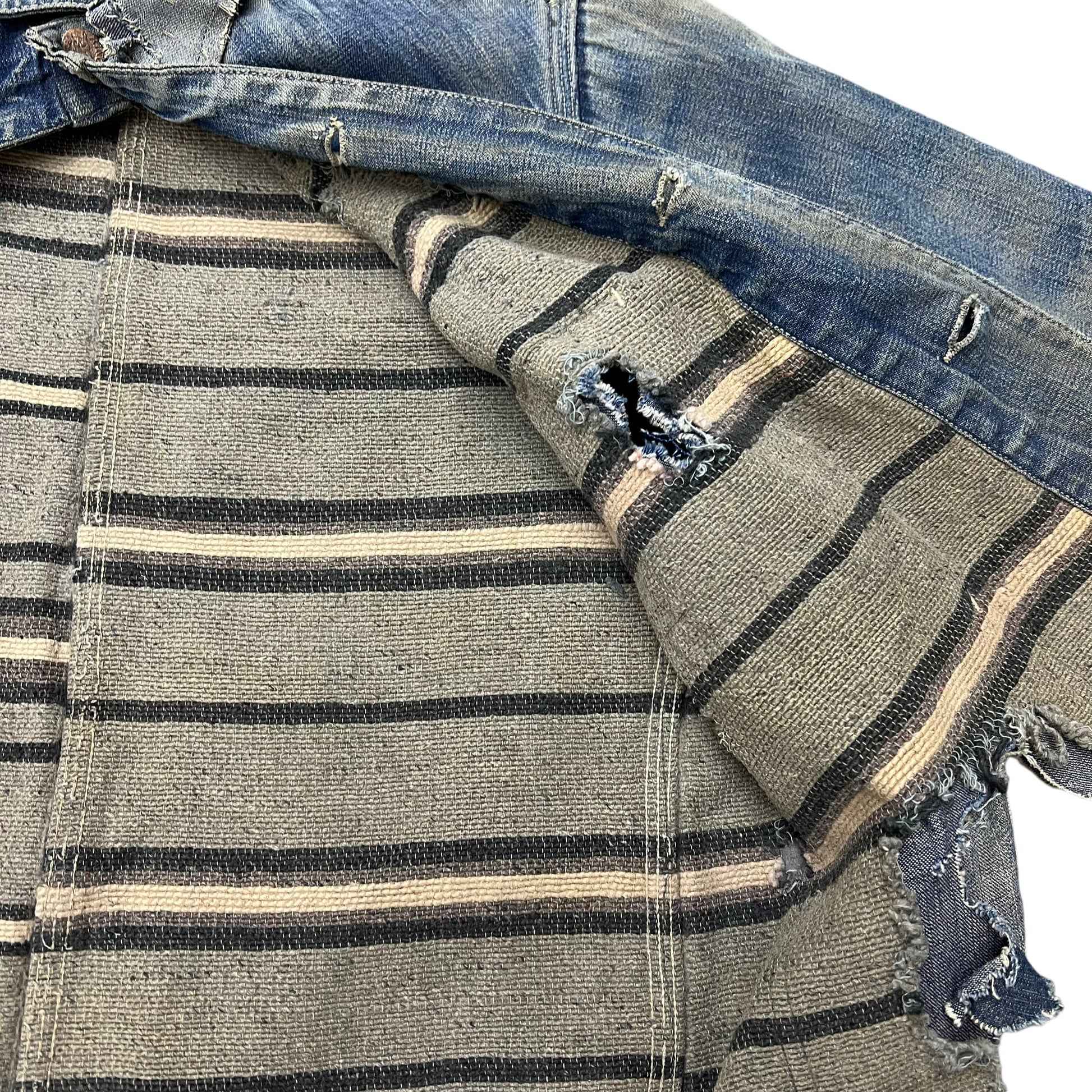 1930s King Pointer distressed blanket lined denim chore coat (S)