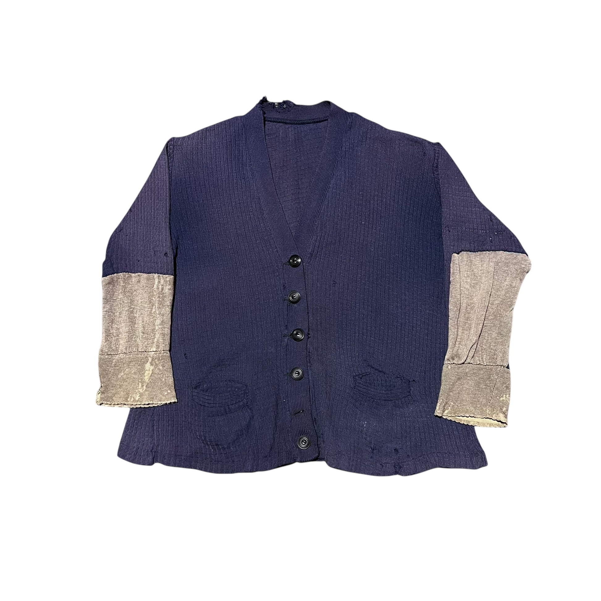 1930s Purple/blue cotton repaired knit sweater cardigan (XS)