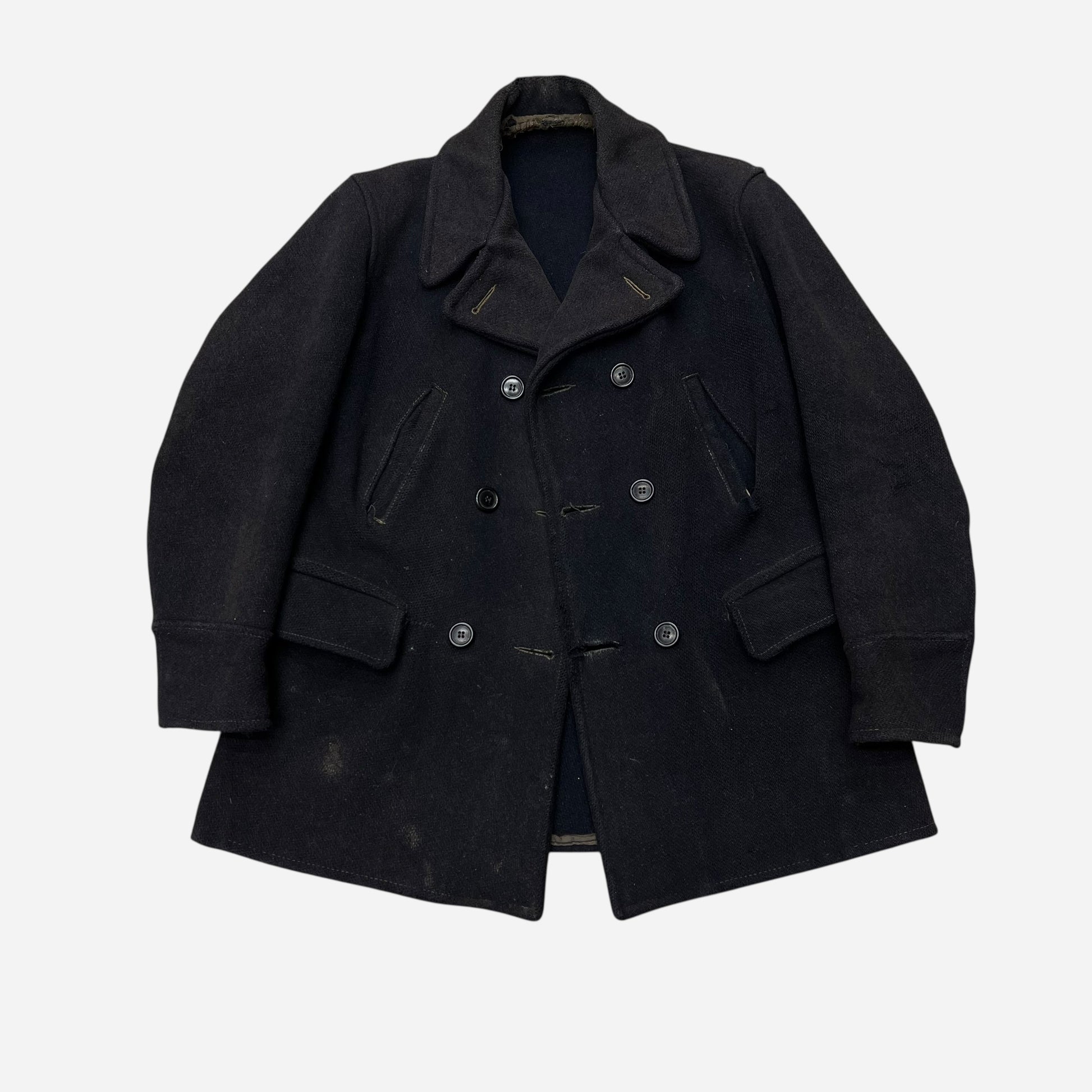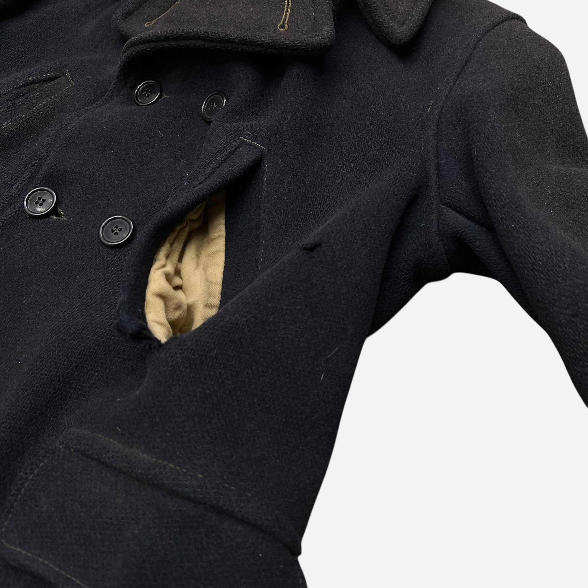 1930s Sun faded navy/black double breasted wool peacoat (M)