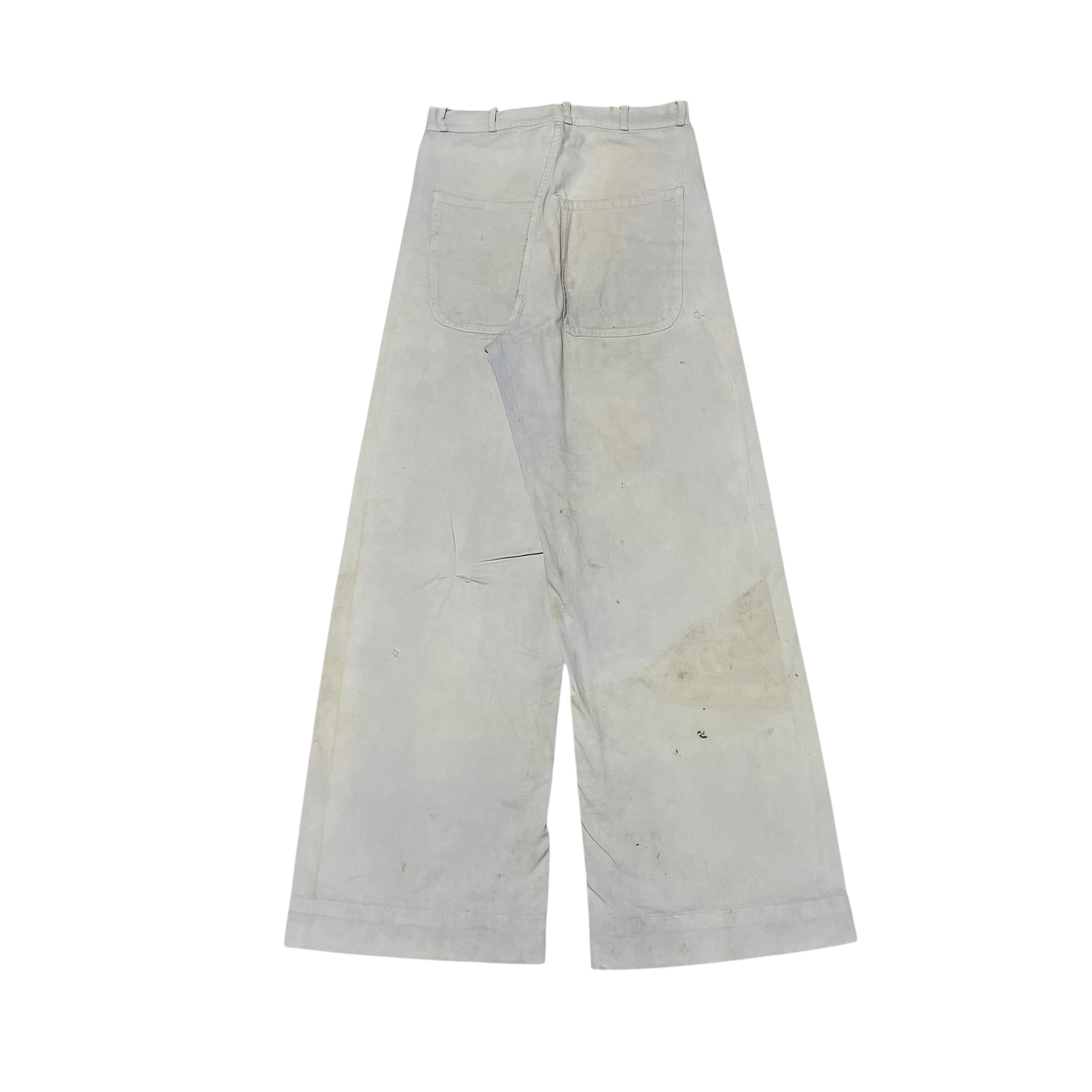1930s USN Pre War slant pocket flared sailor pants light blue sunfaded white (27w)
