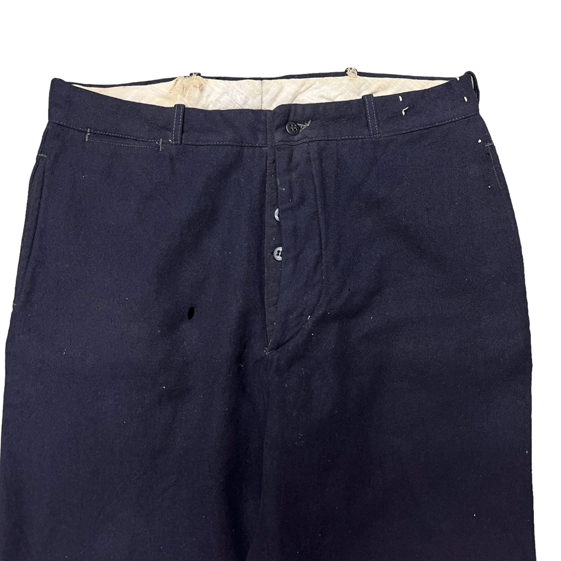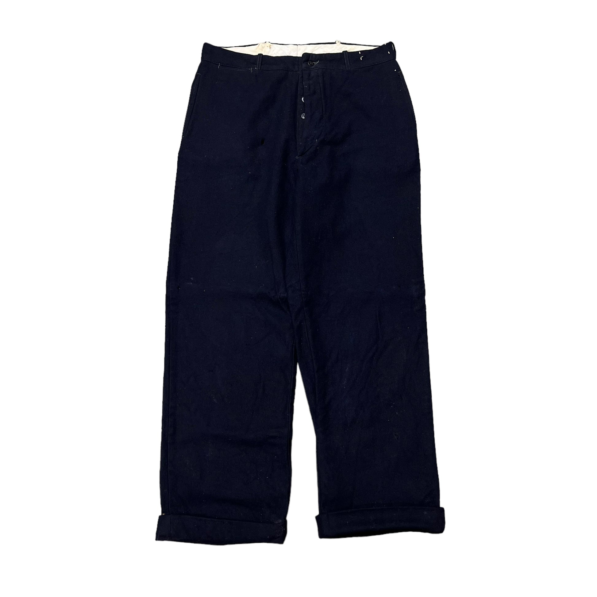 1930s Wool dark navy work trousers (32w)