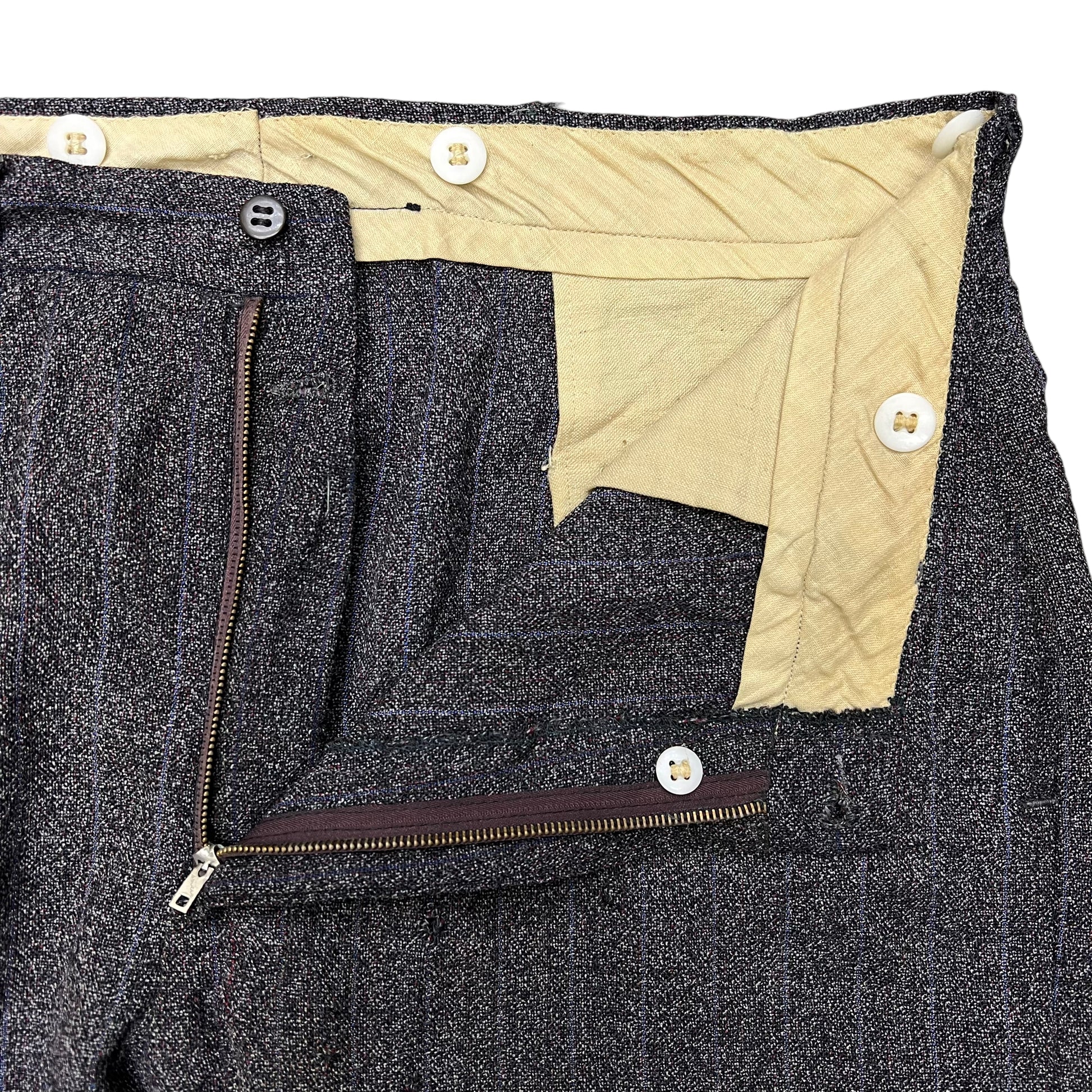 1940s Wool black rainbow plaid fleck trousers (36w)