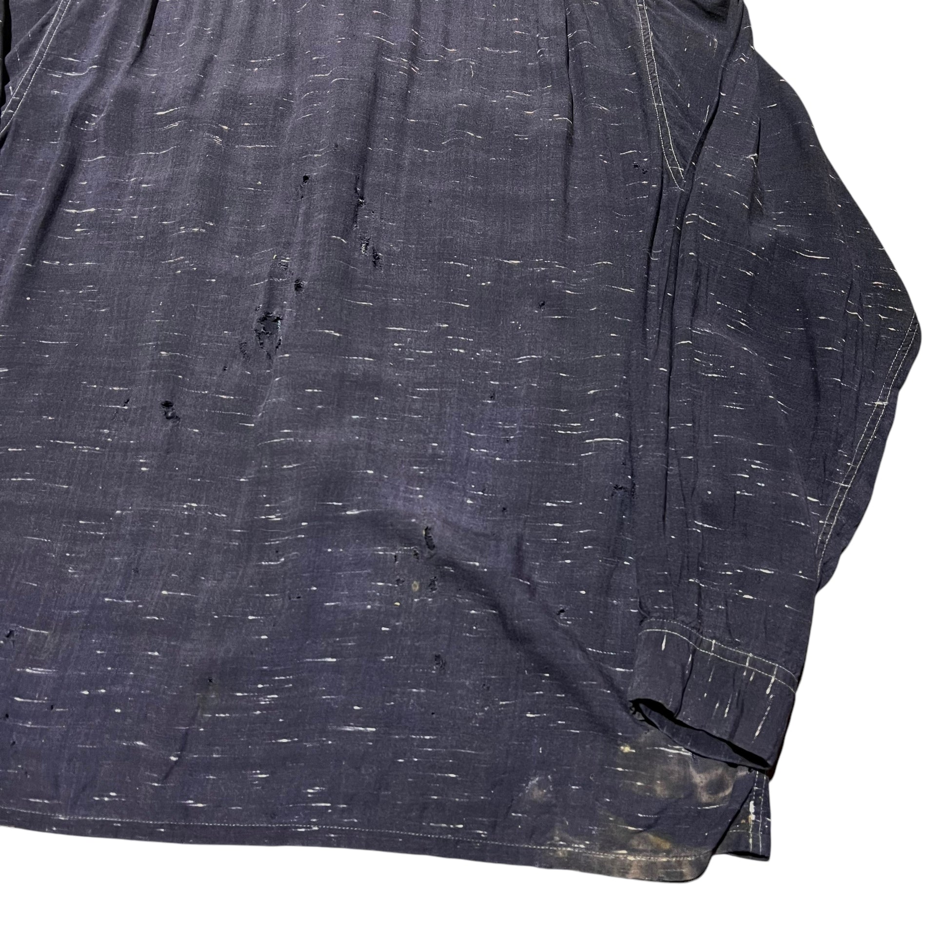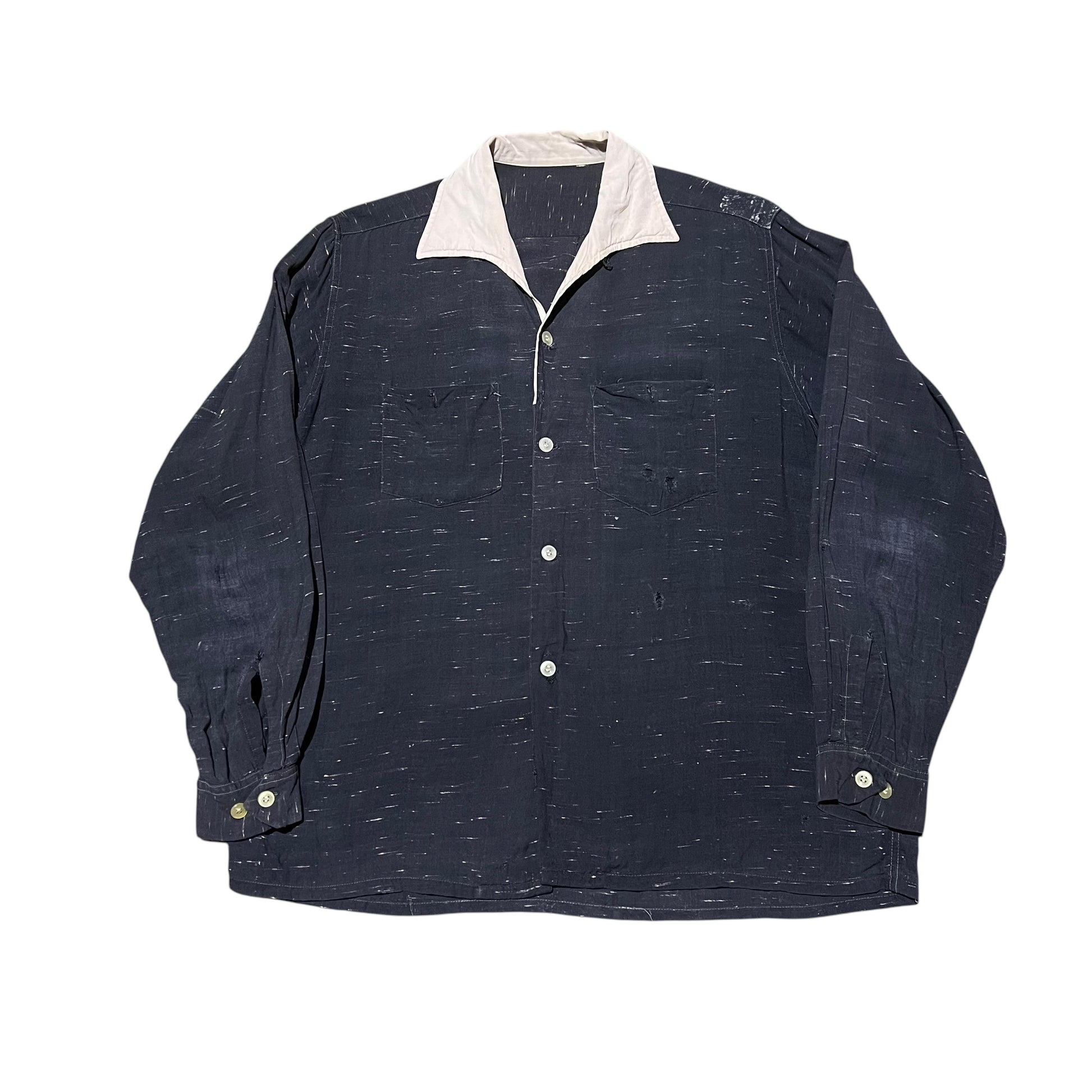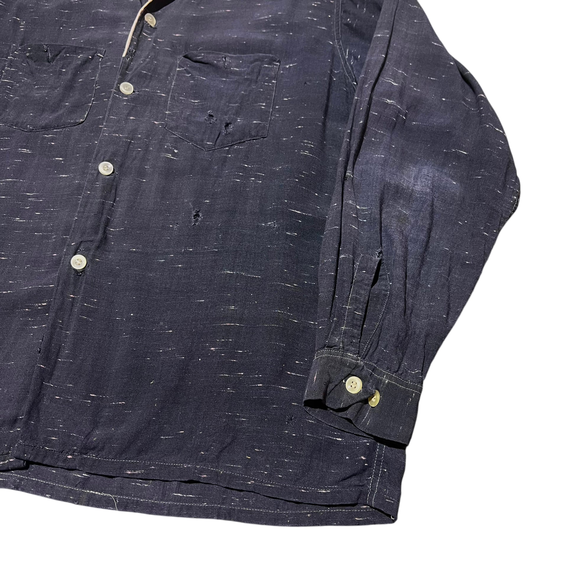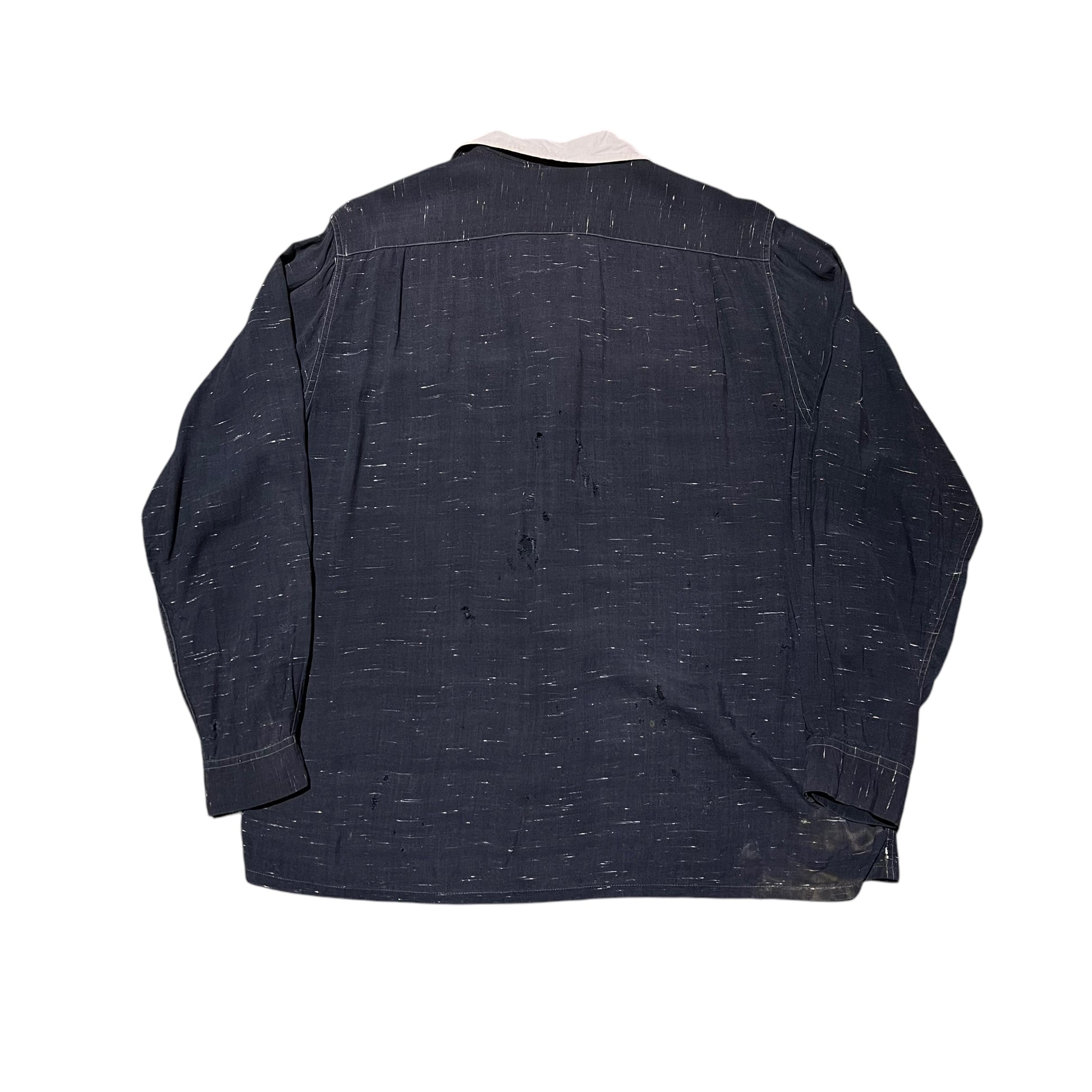 1940s 1950s Black fleck rayon/cotton continental loop collar shirt (M/L)