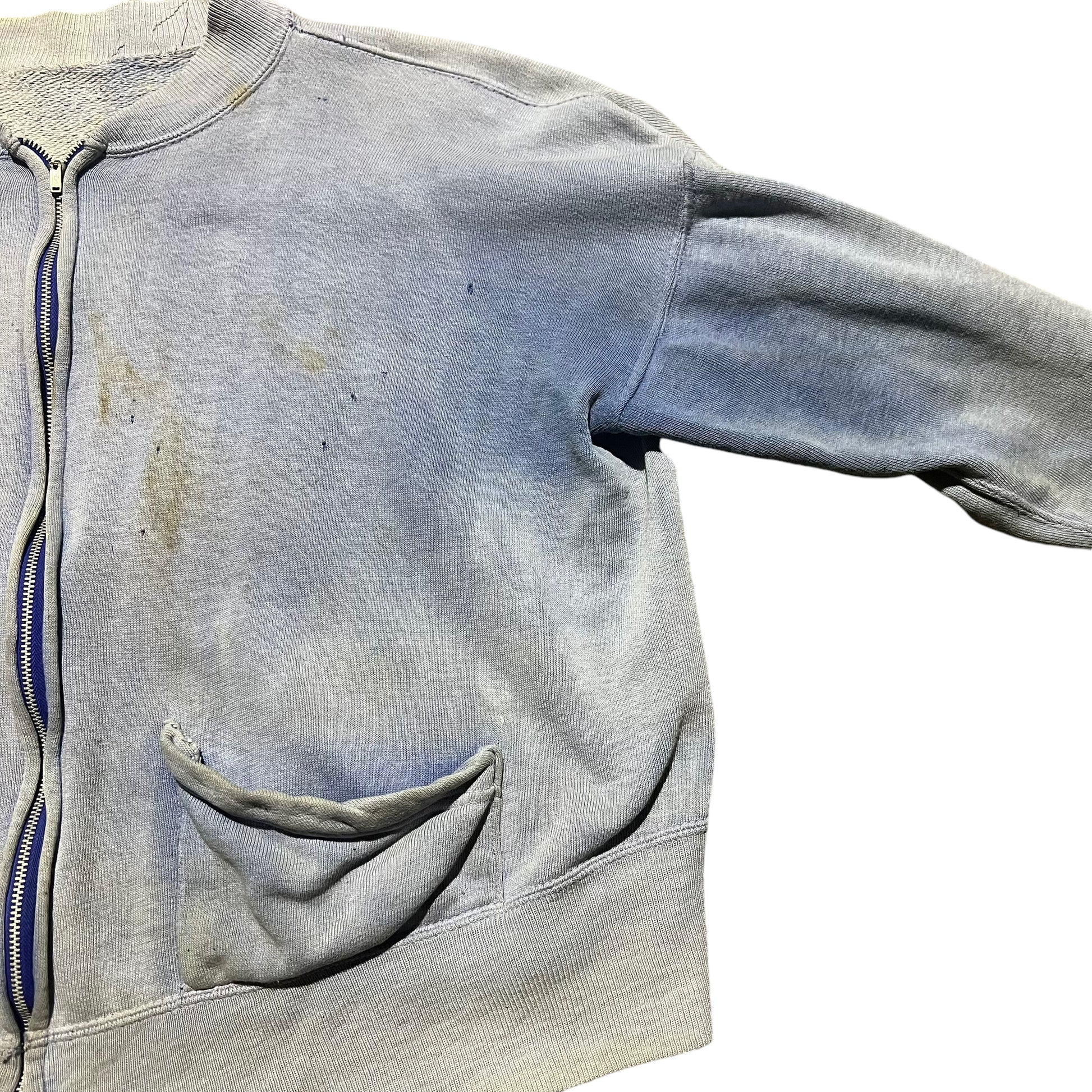 1940s 1950s Blue sun faded zip up sweatshirt (M)