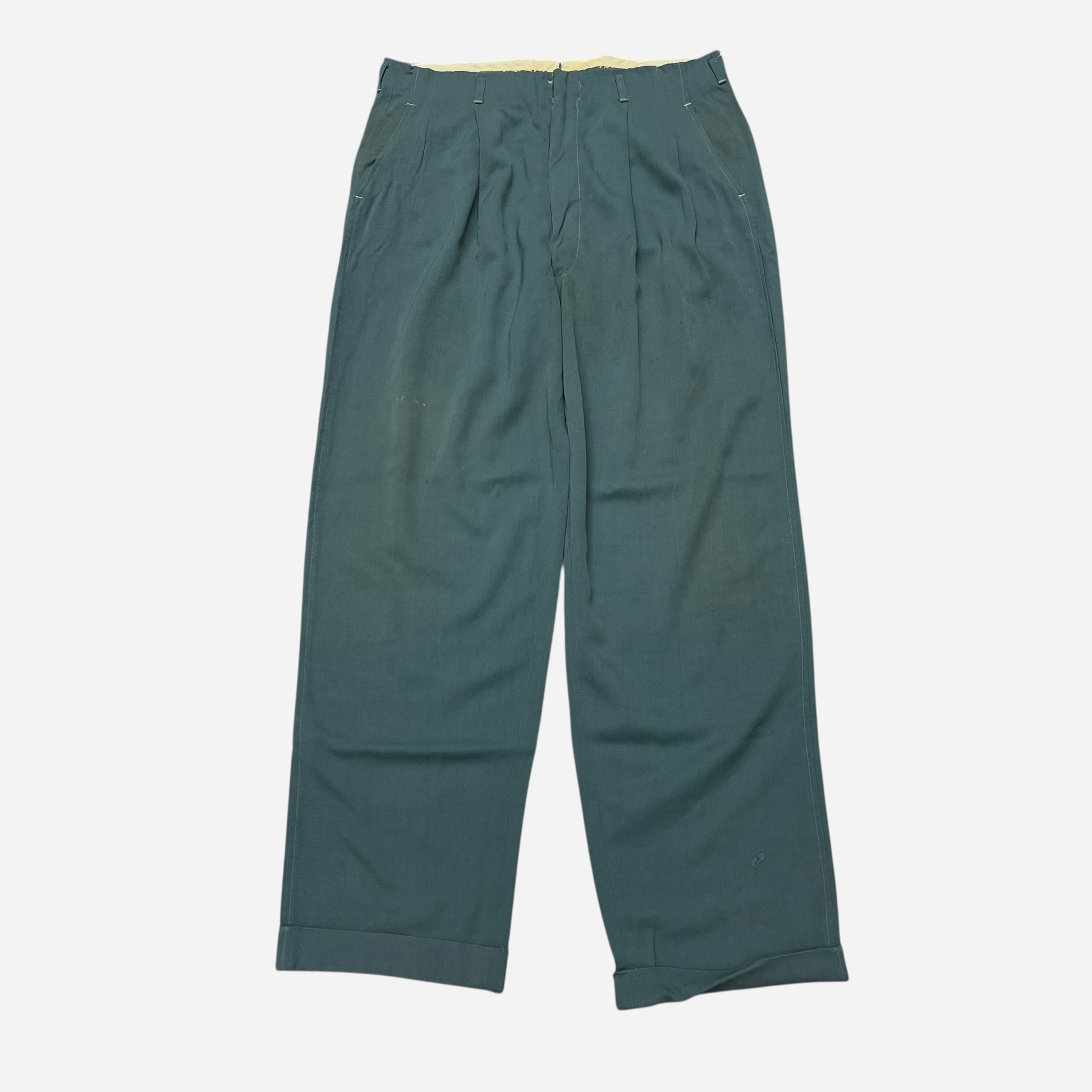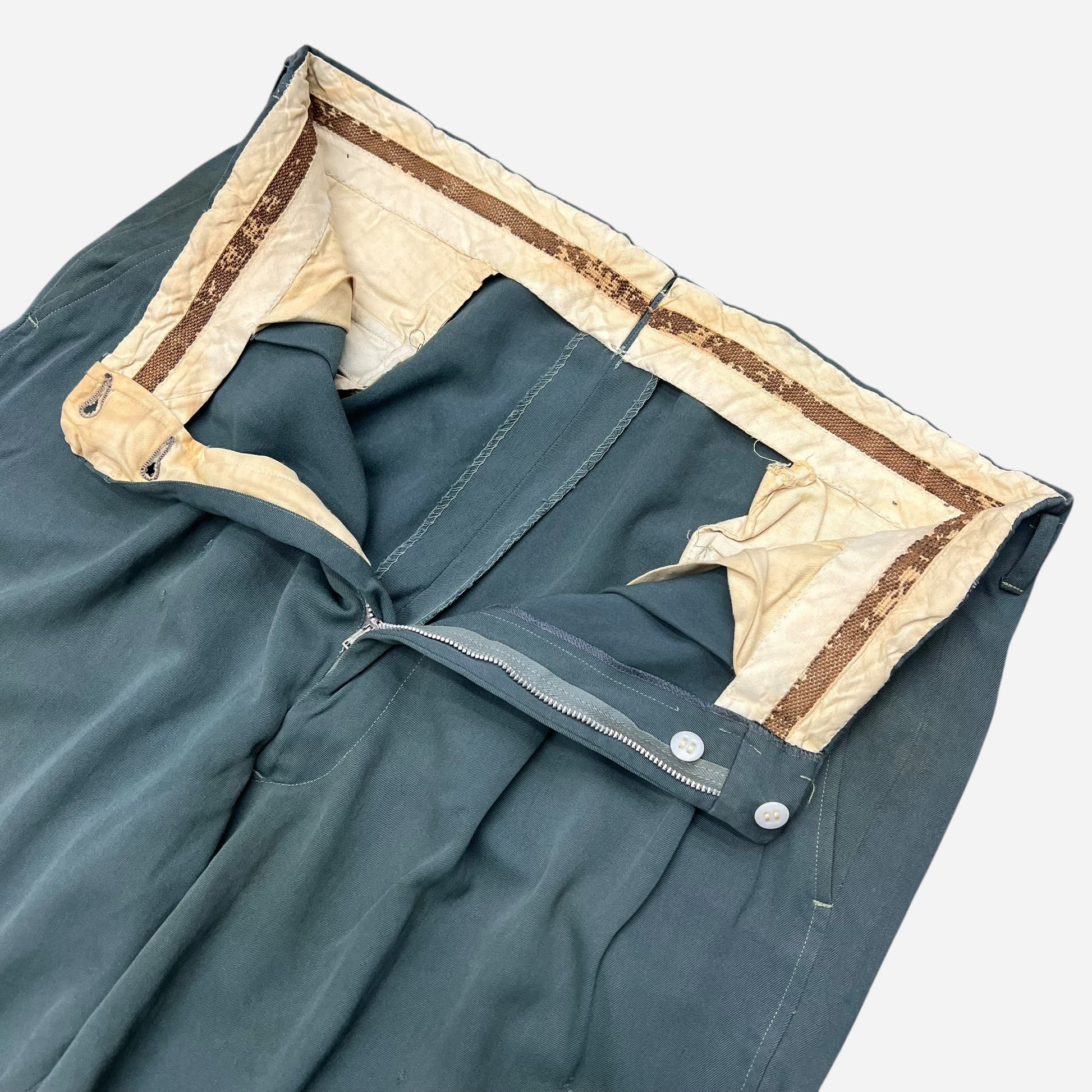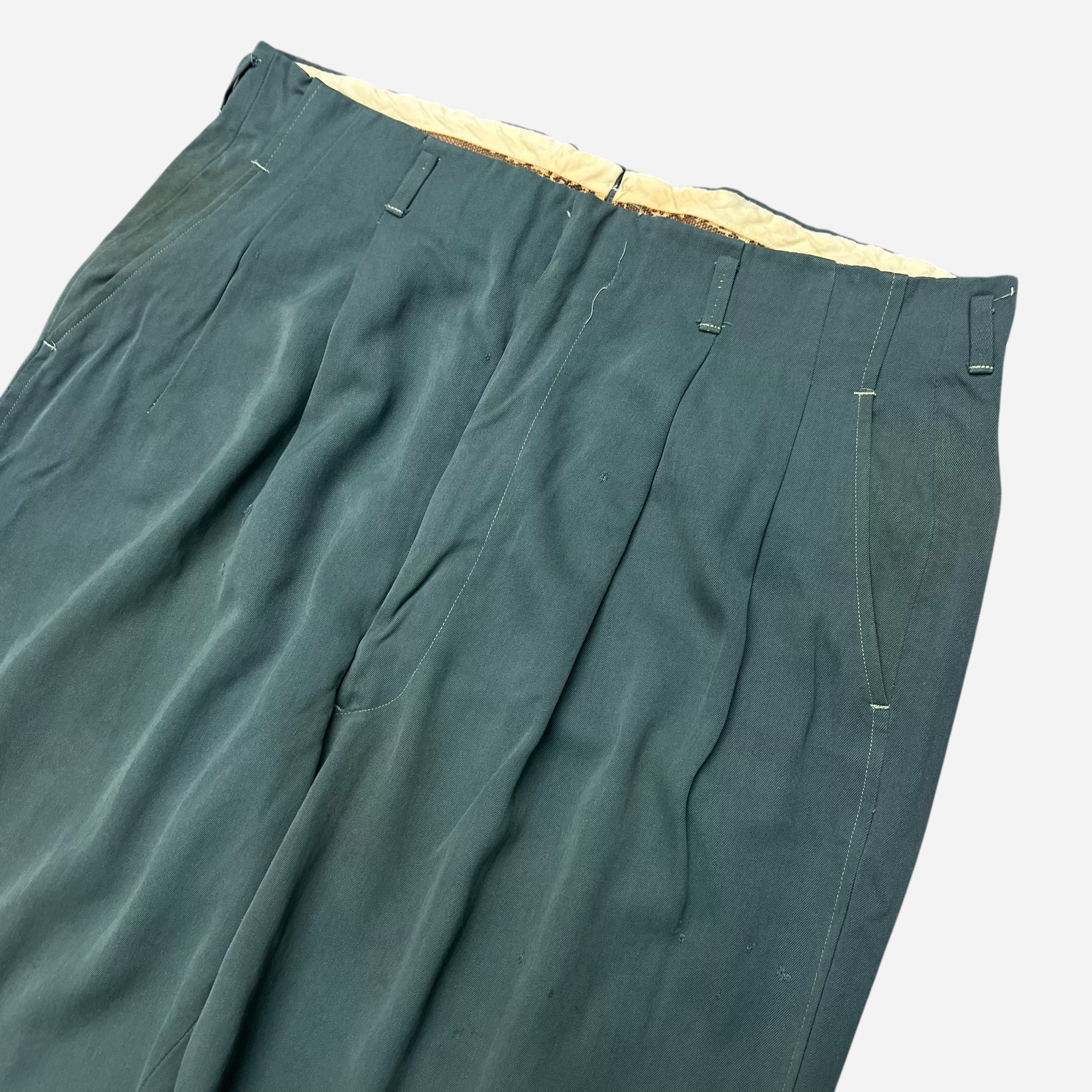 1940s 1950s Green gabardine pleated drop loop pants (34w)