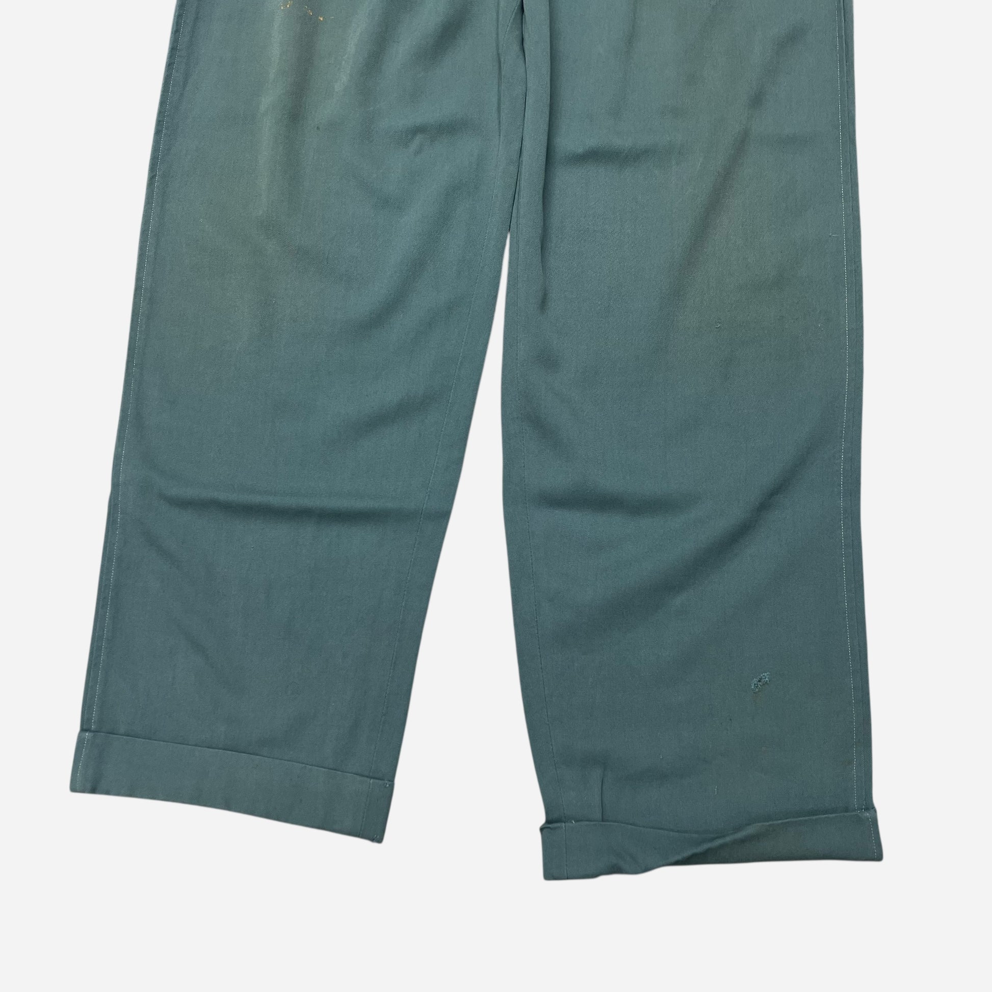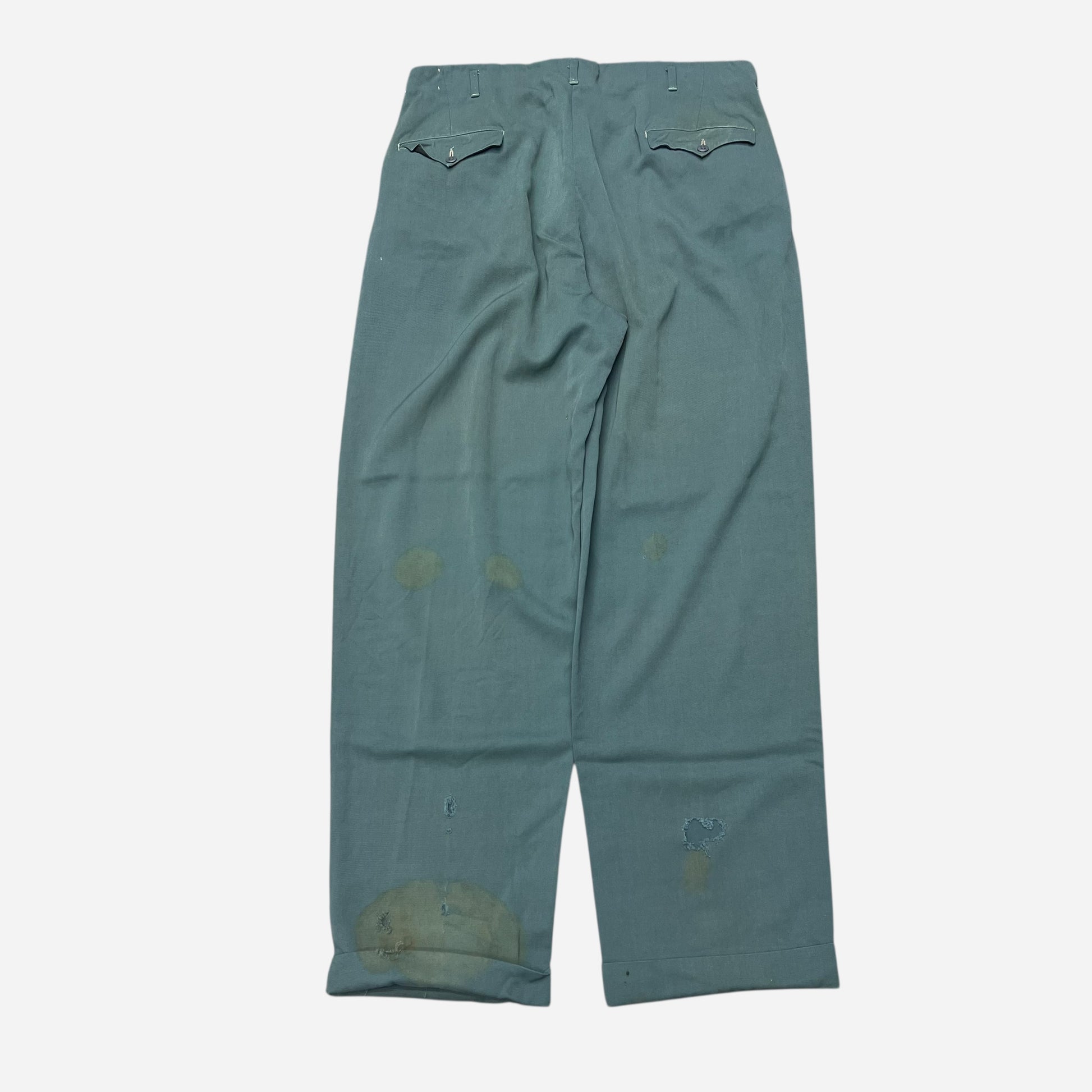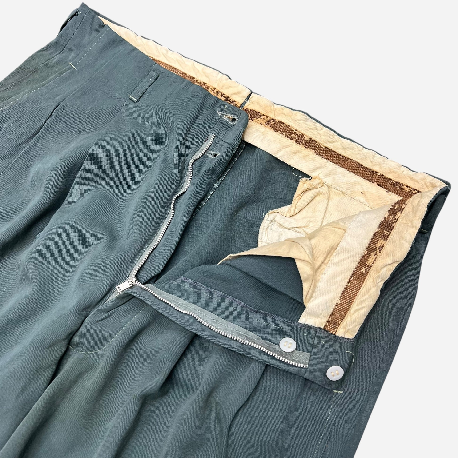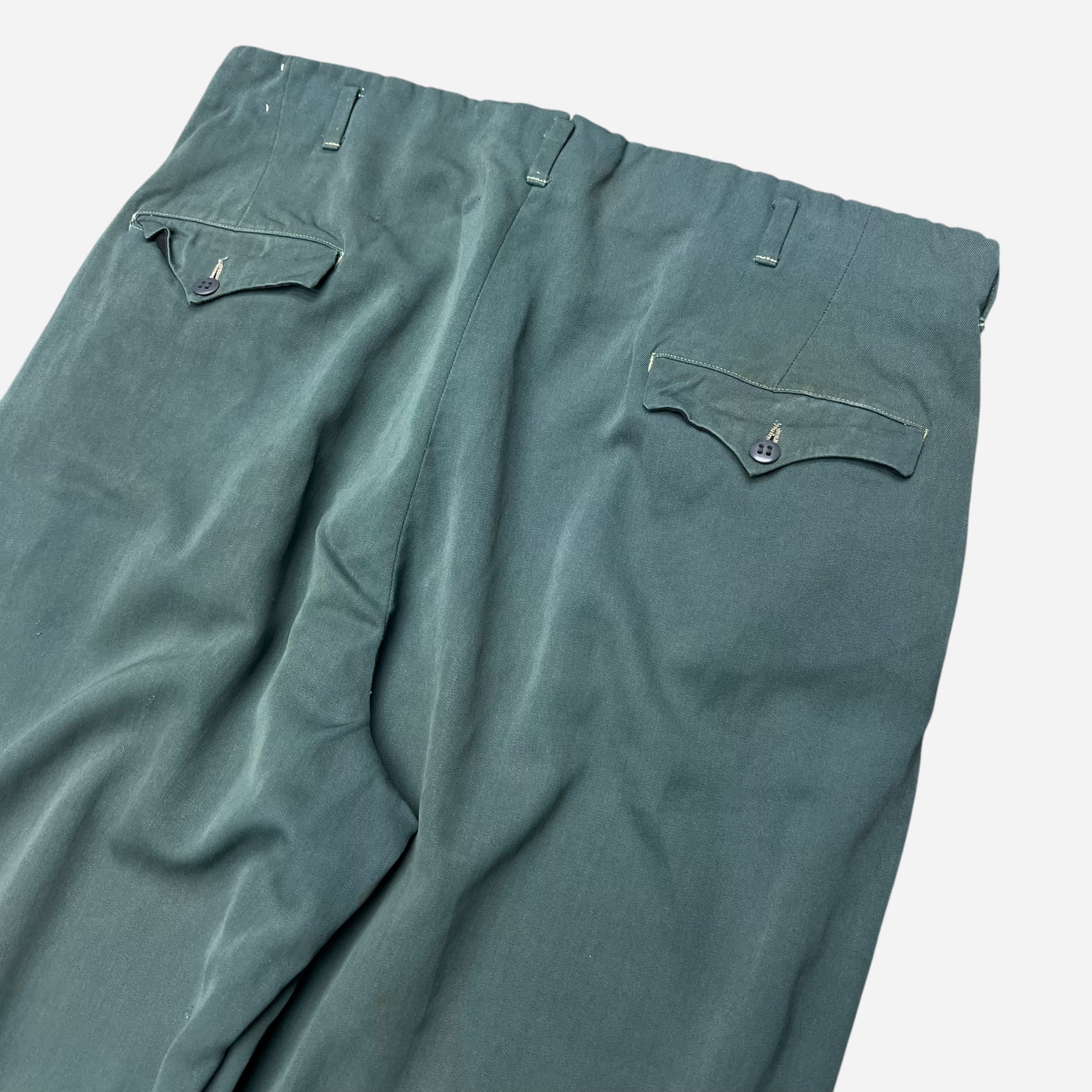 1940s 1950s Green gabardine pleated drop loop pants (34w)