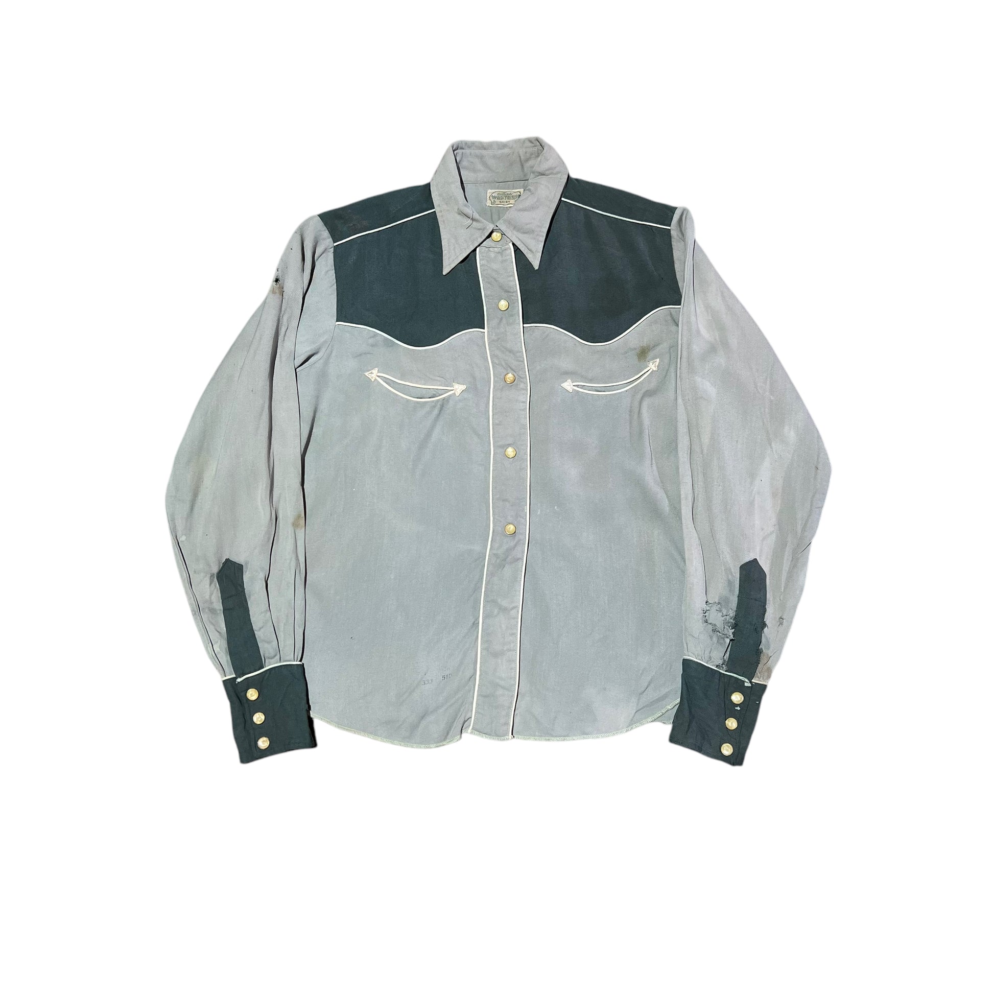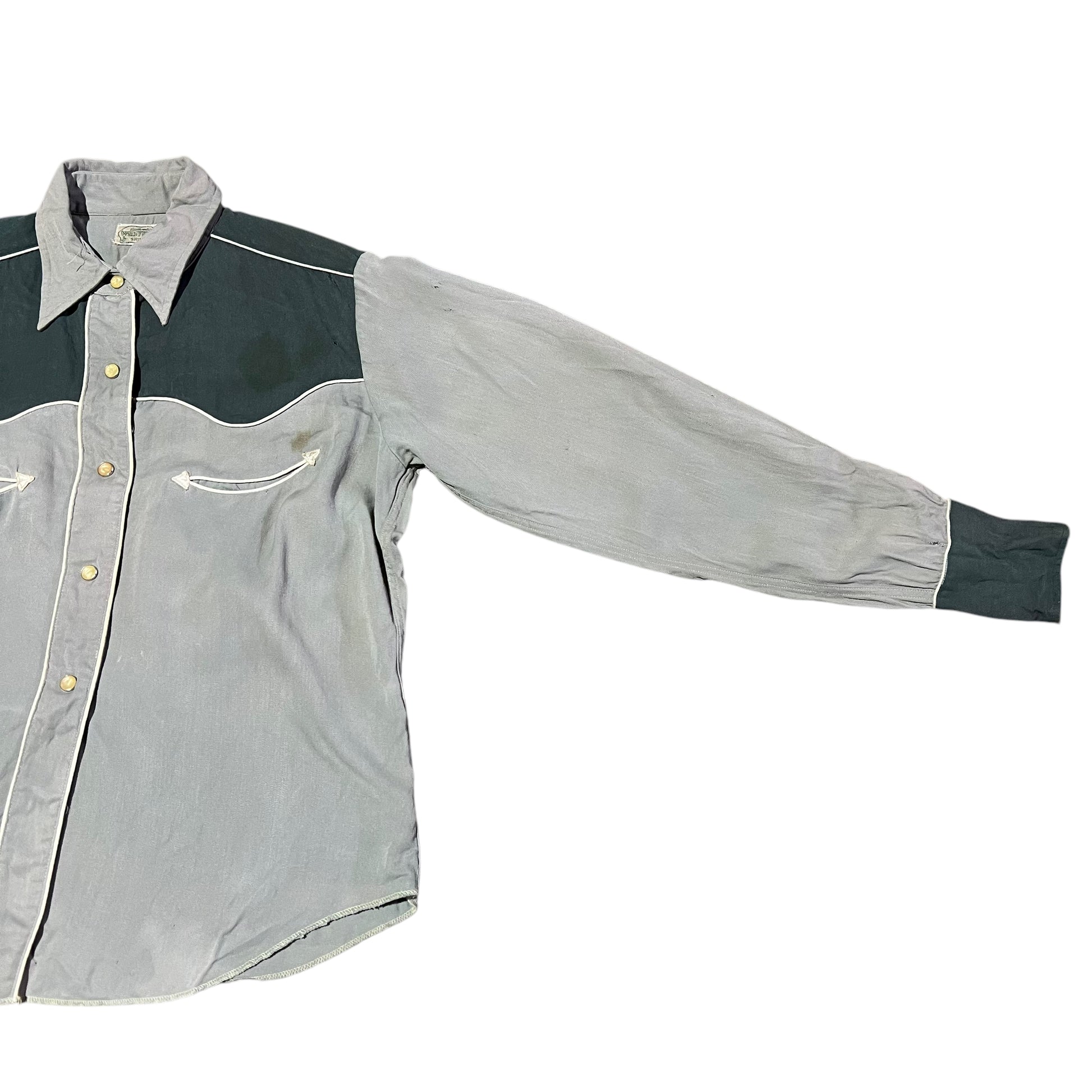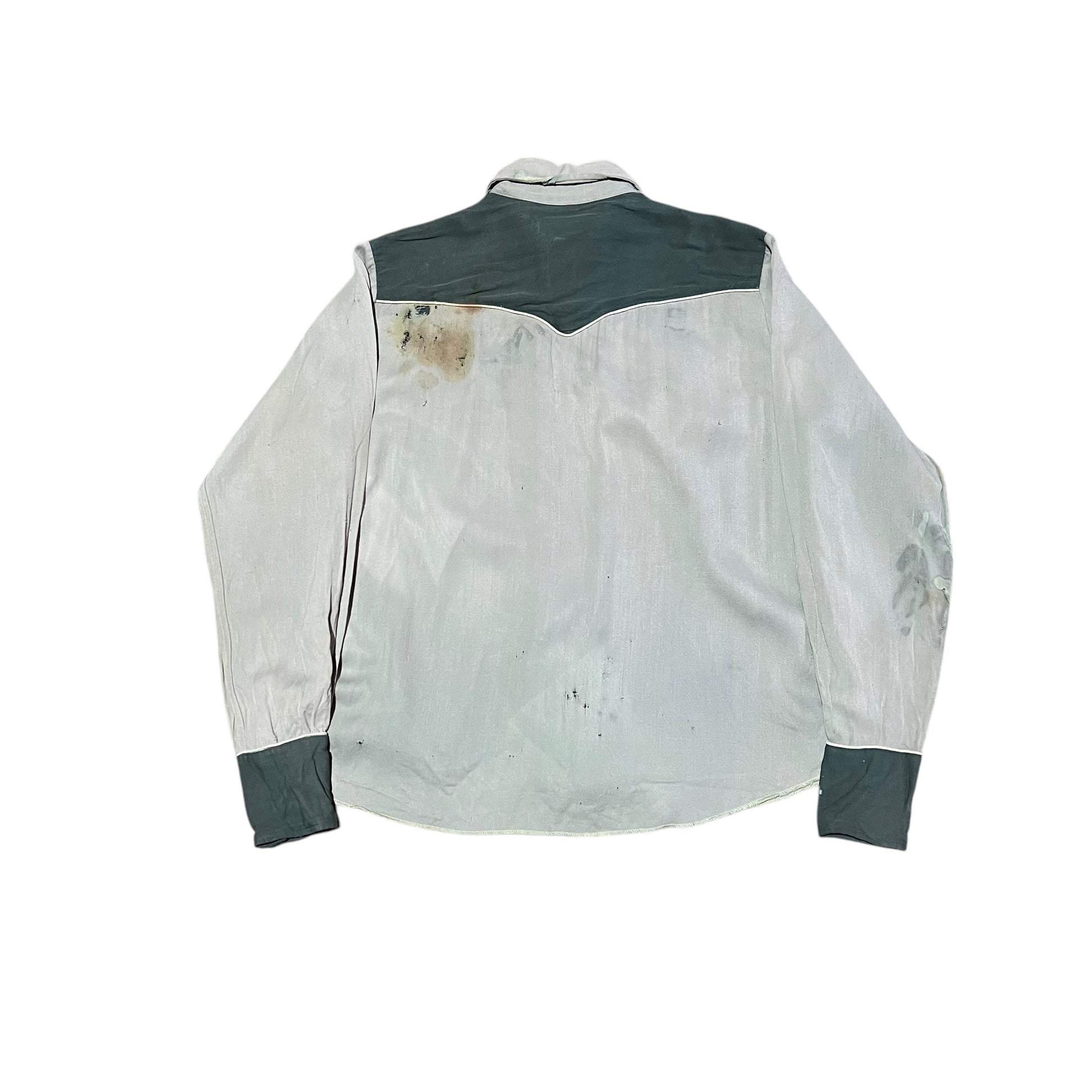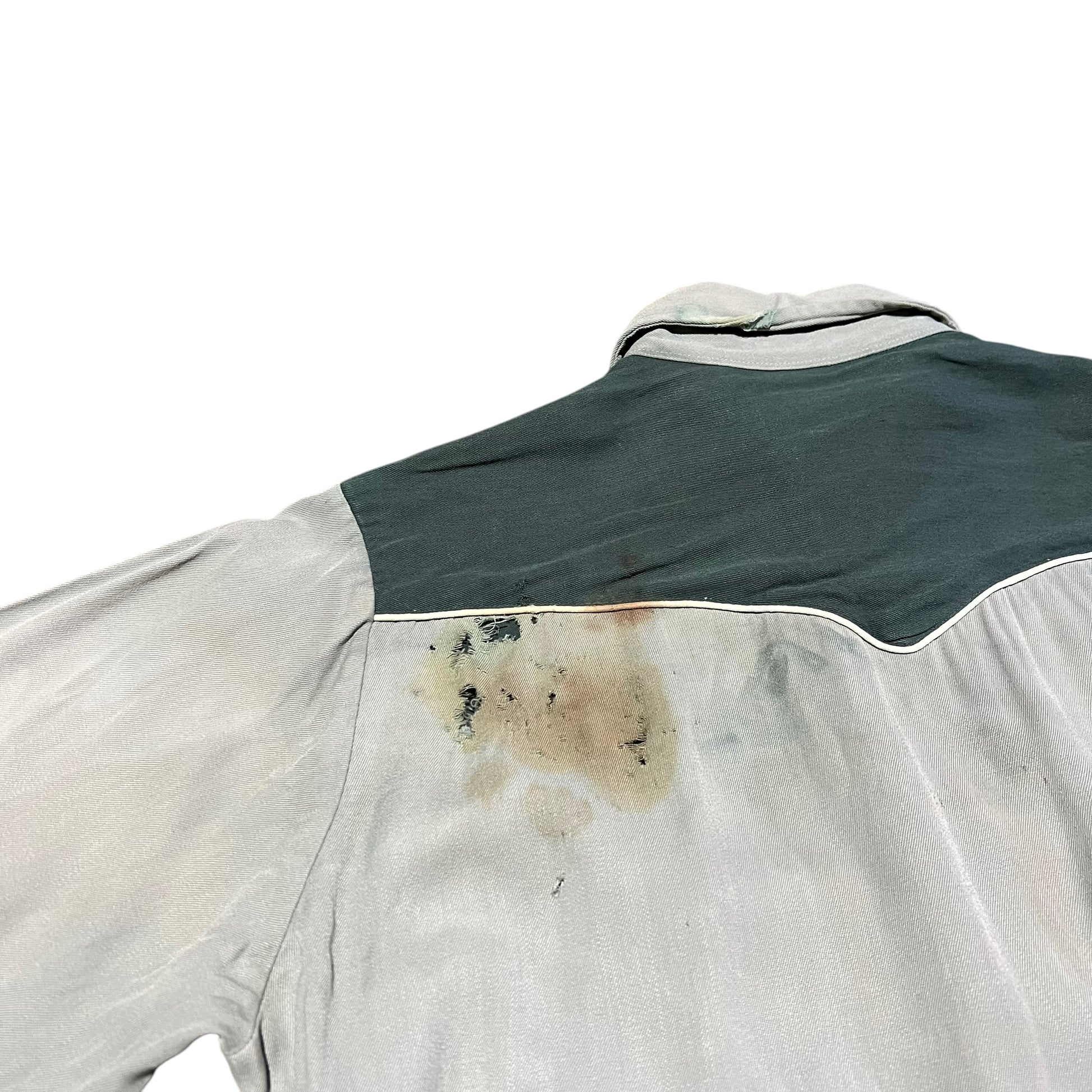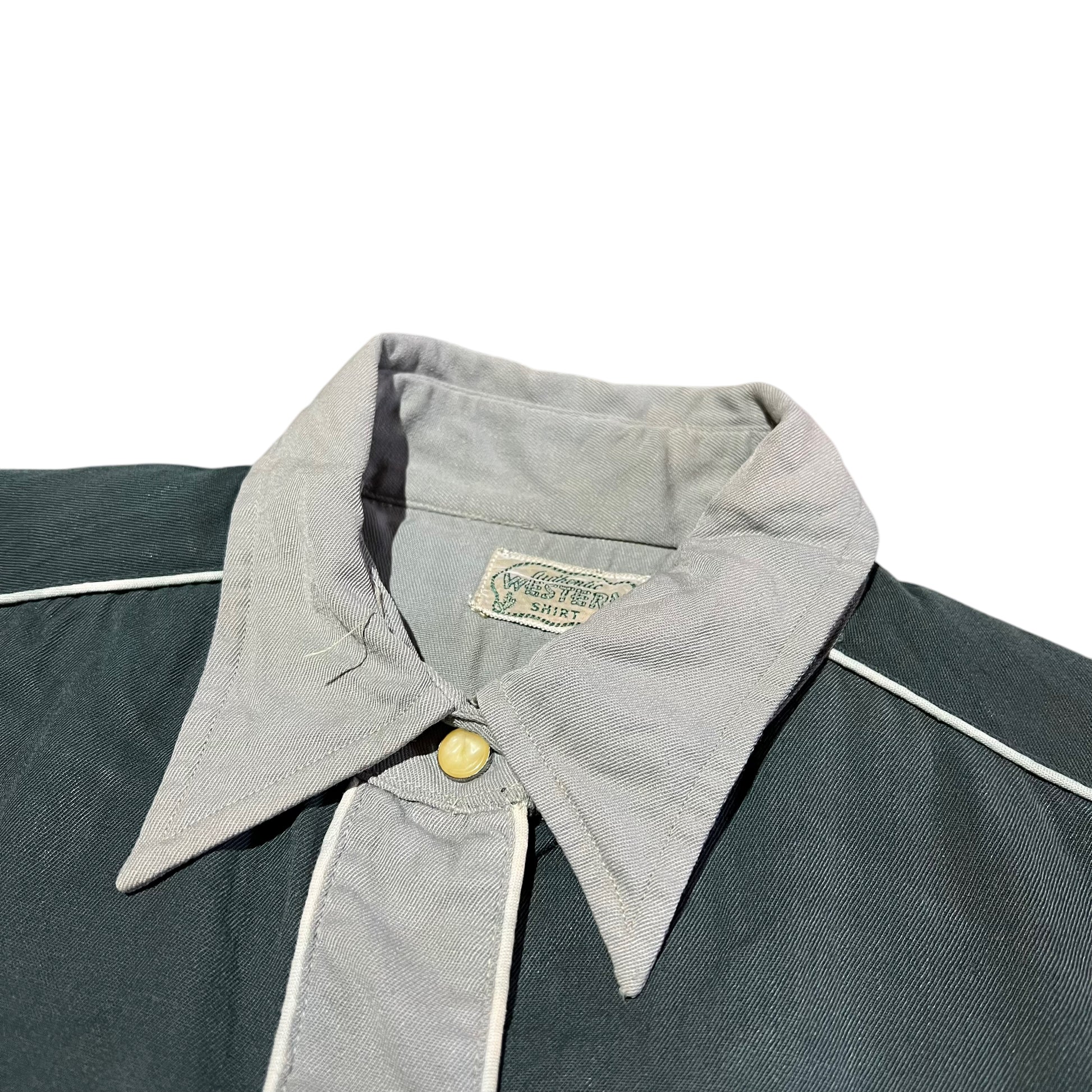 1940s 1950s Green rayon western pearl snap shirt (S)