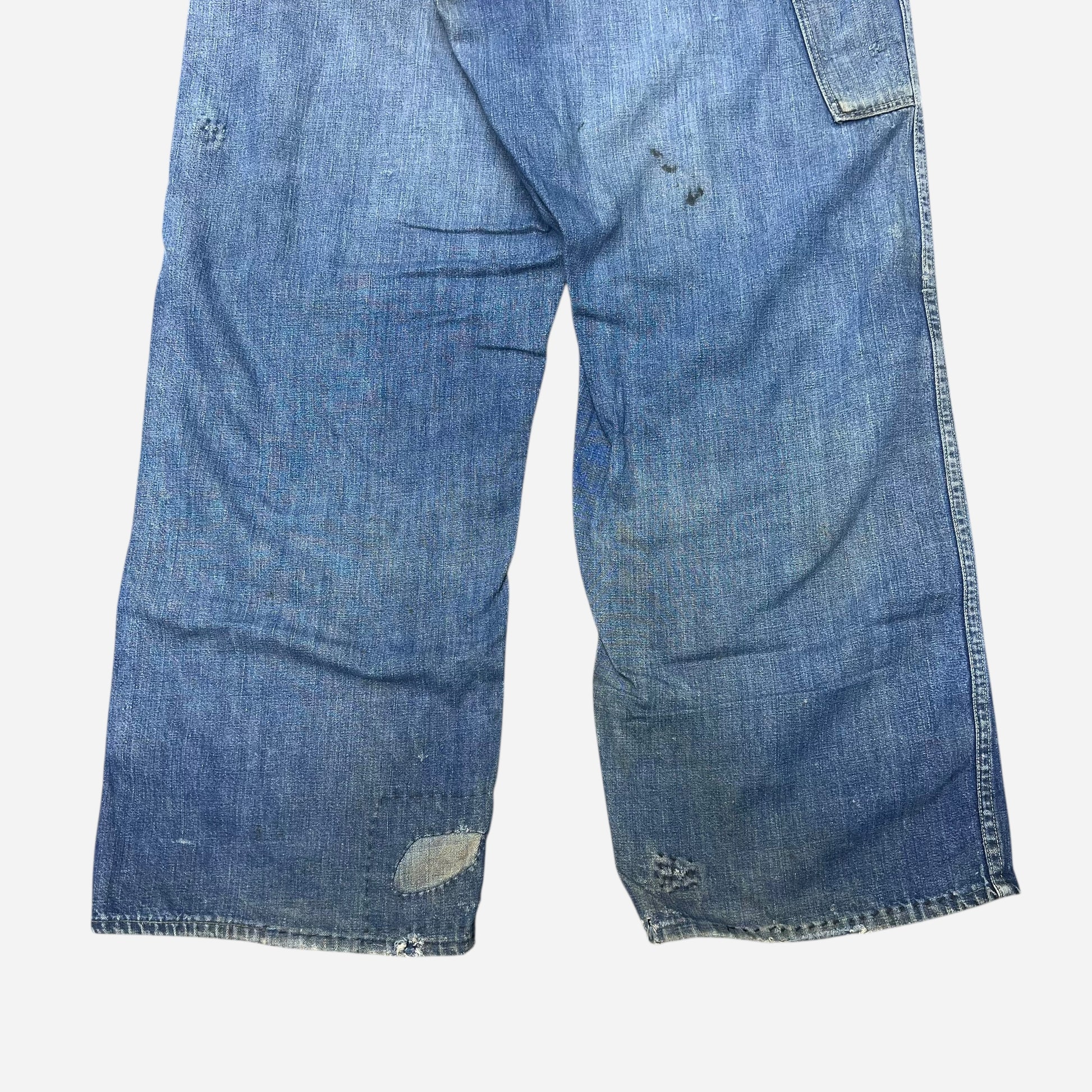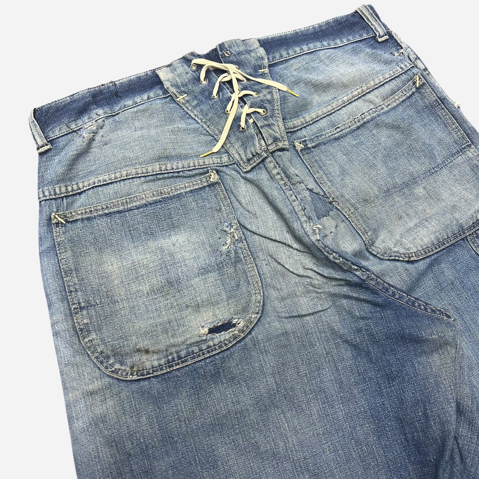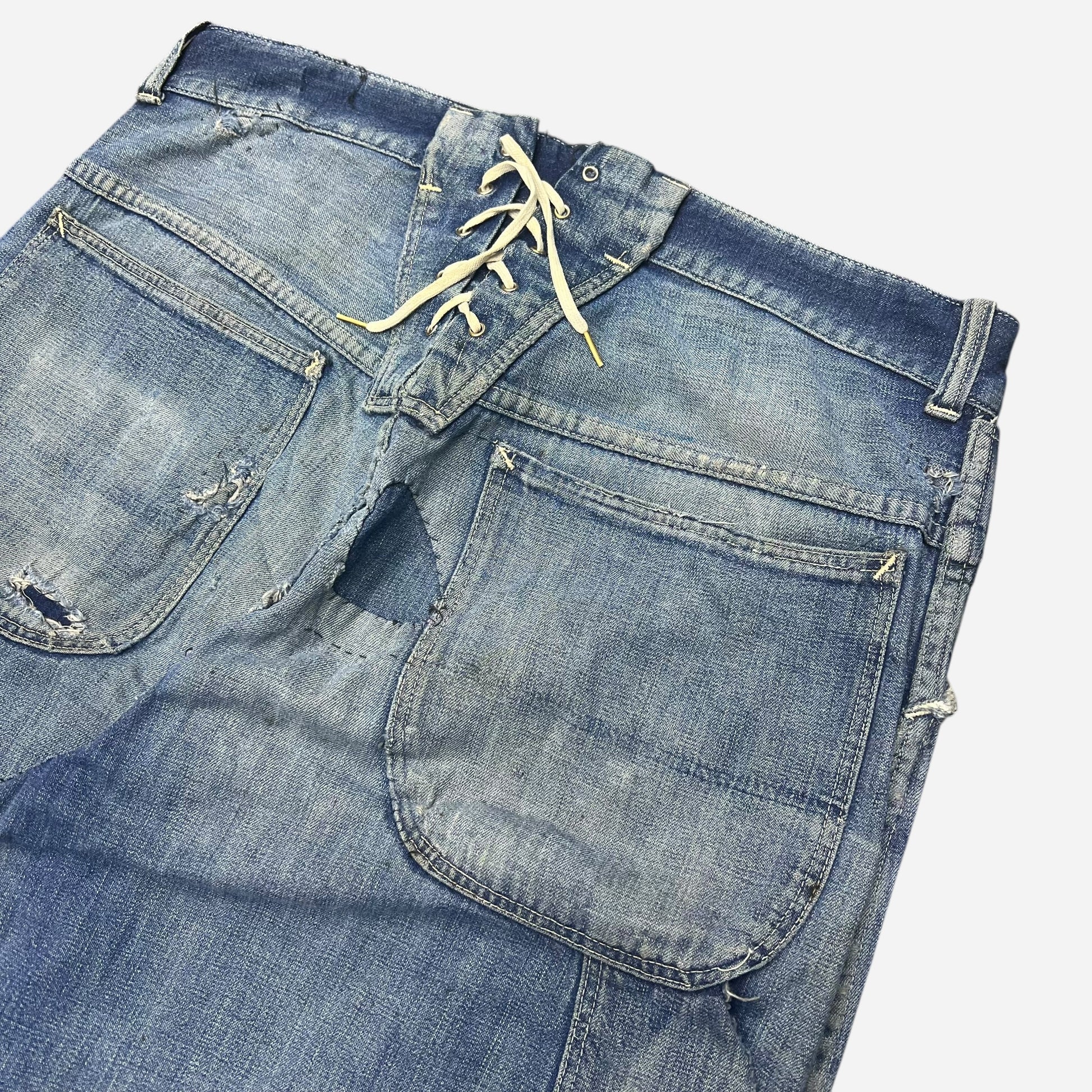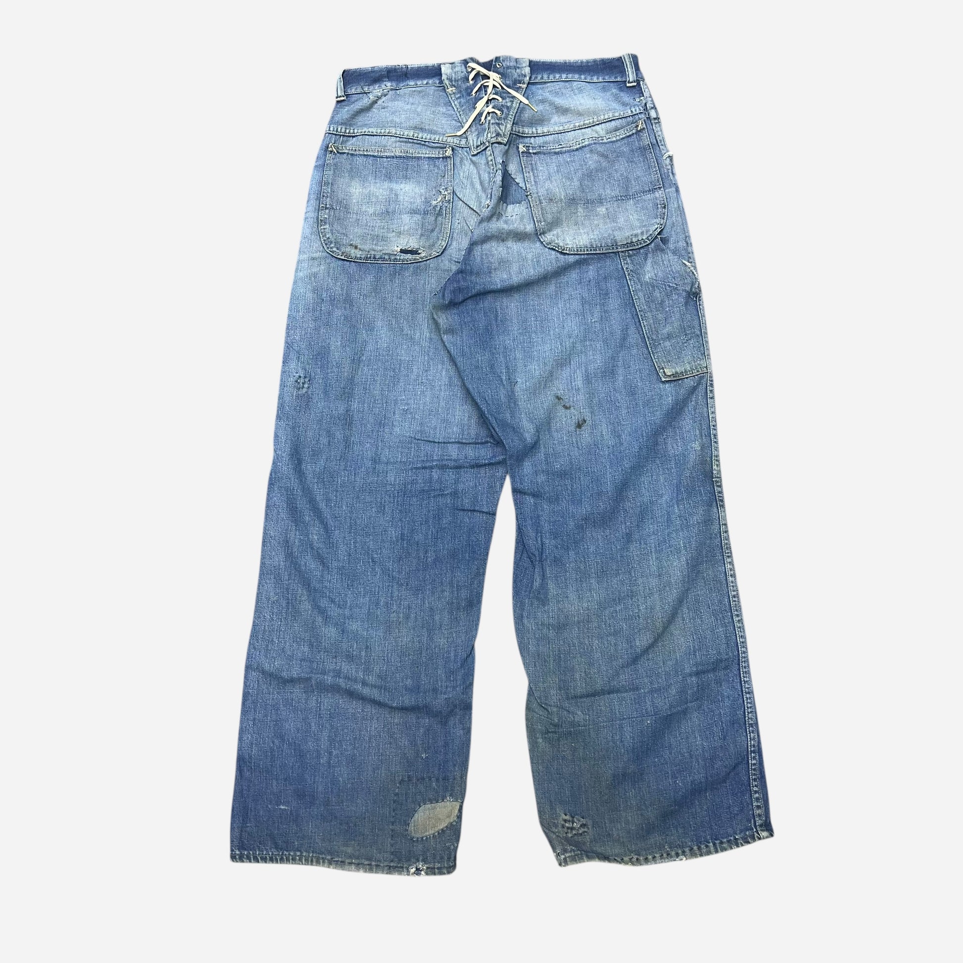 1940s 1950s Lace back repaired denim wide leg jeans (33w)