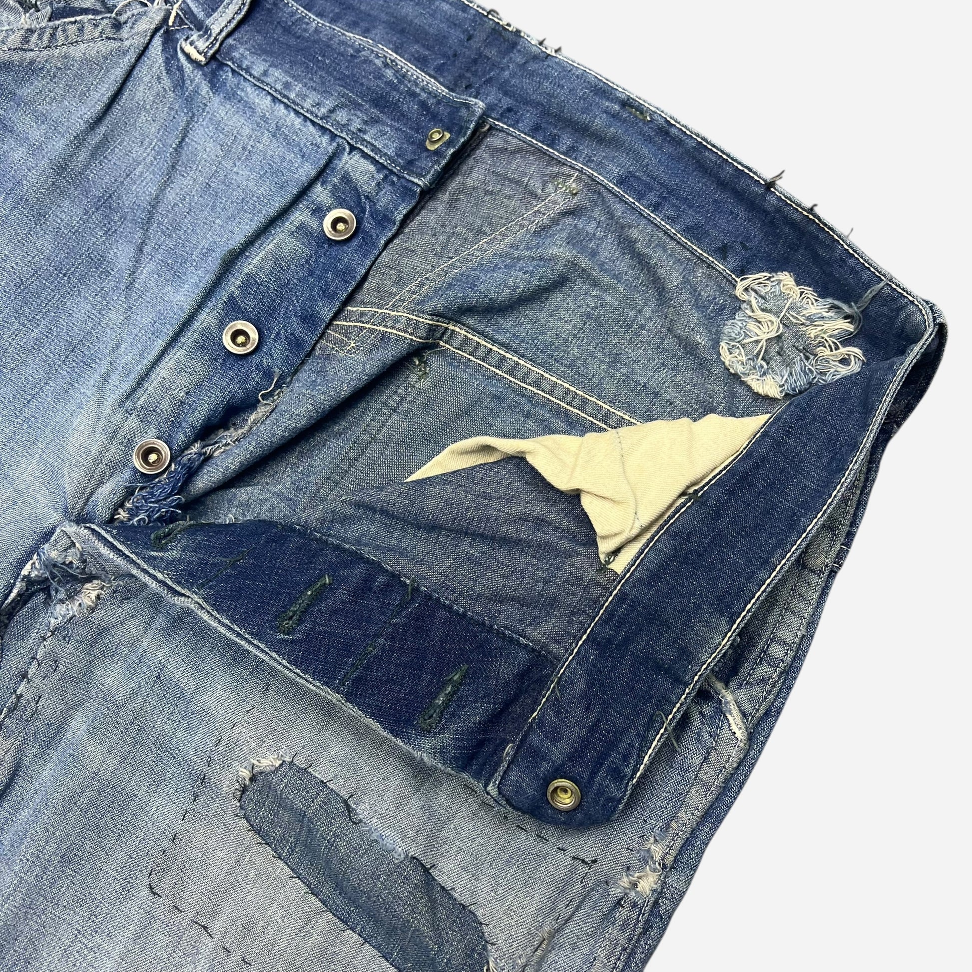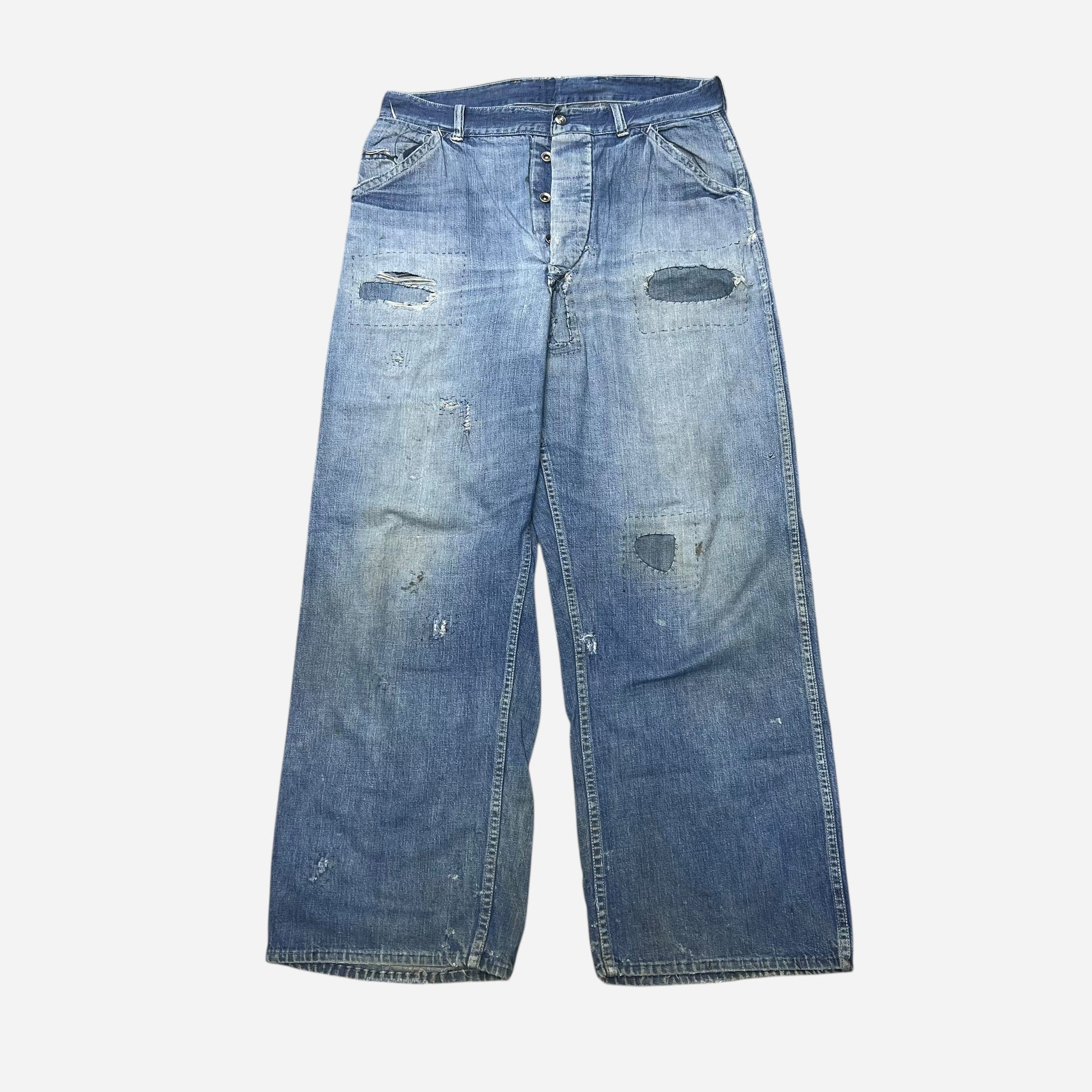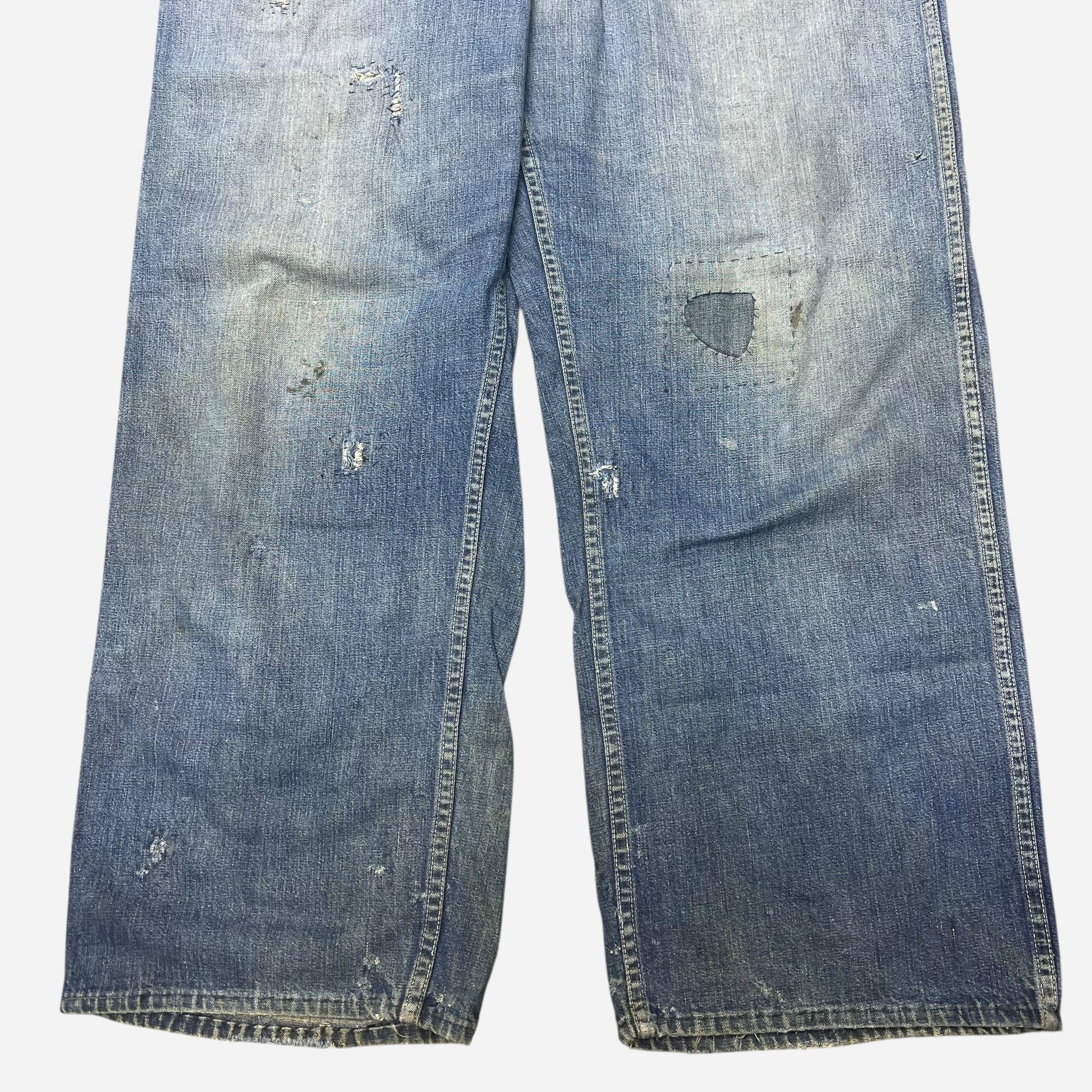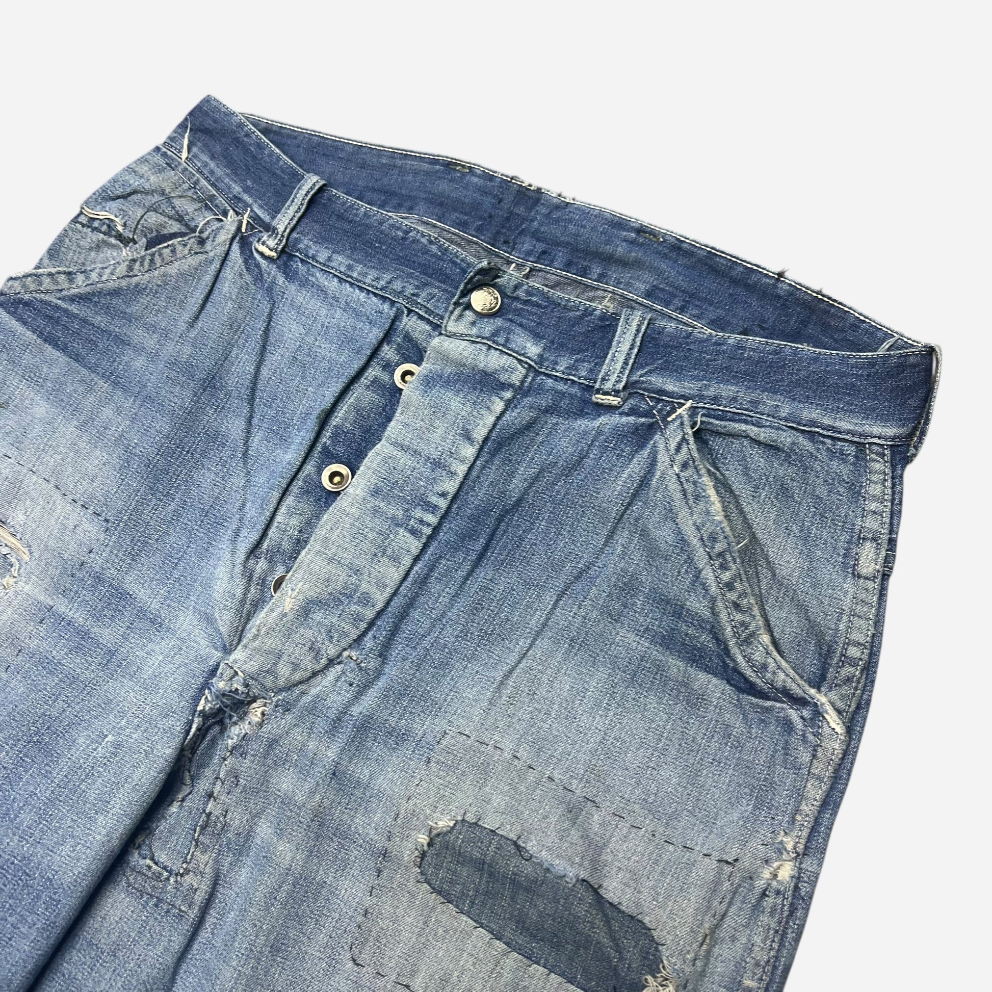 1940s 1950s Lace back repaired denim wide leg jeans (33w)