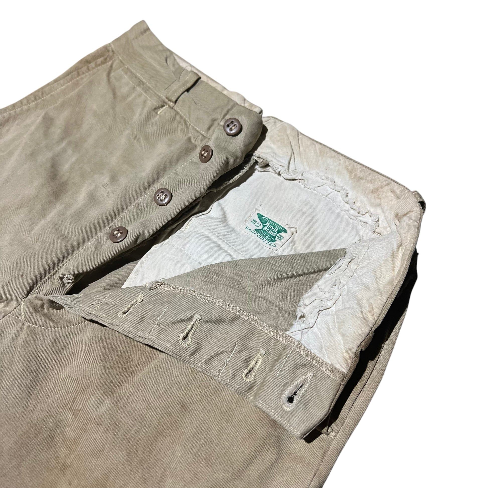 1940s Anvil button fly khaki chino work pants (26w)
